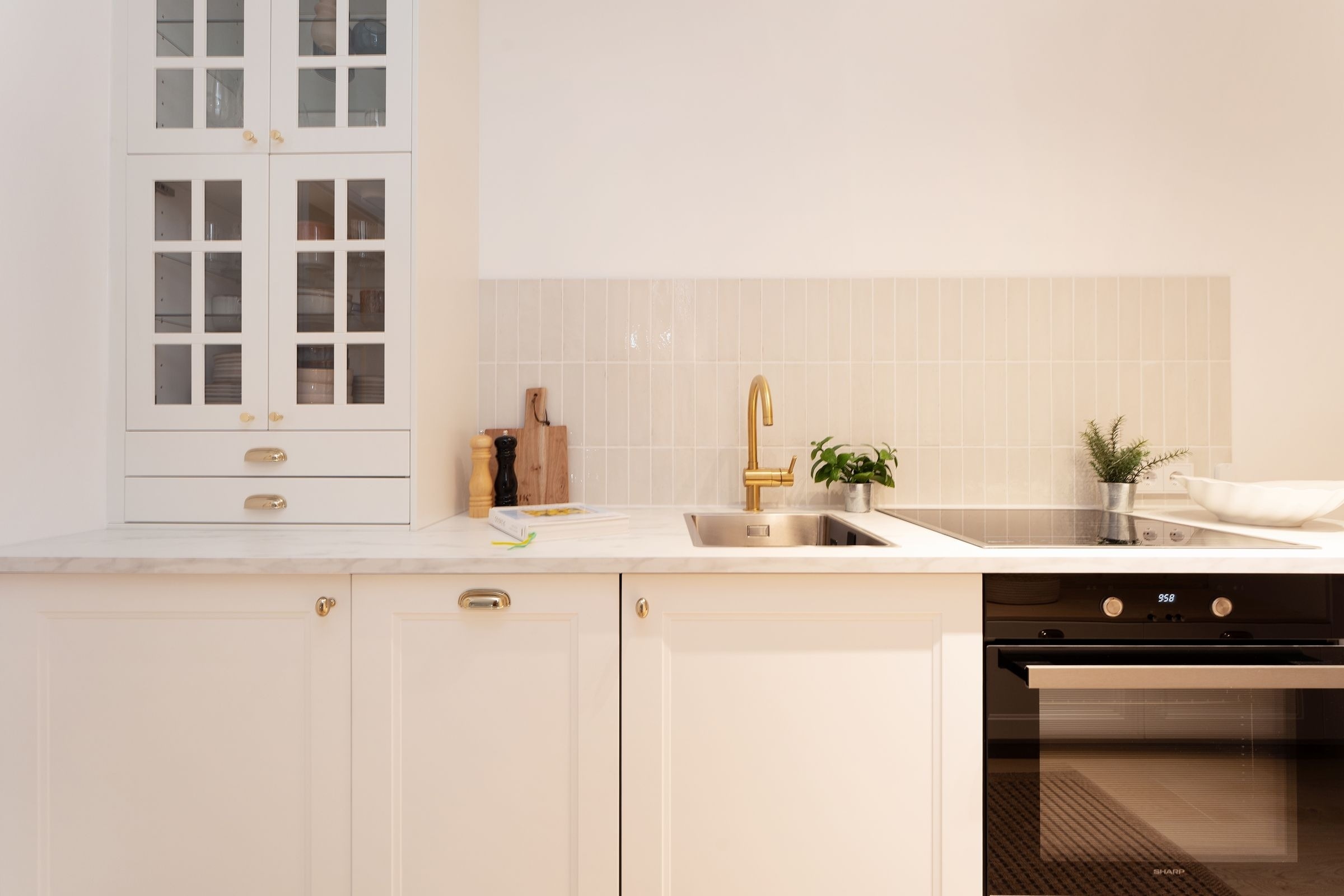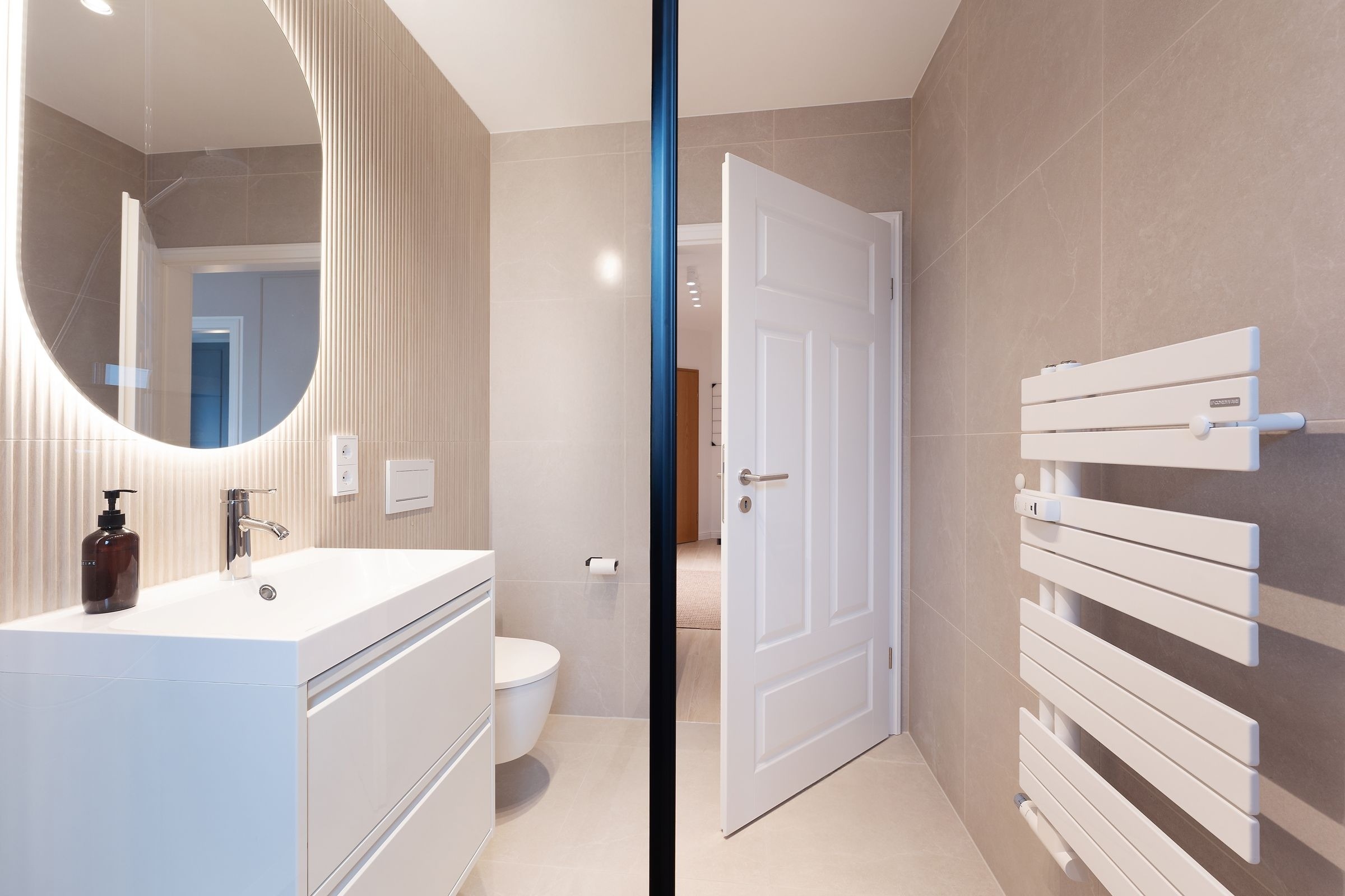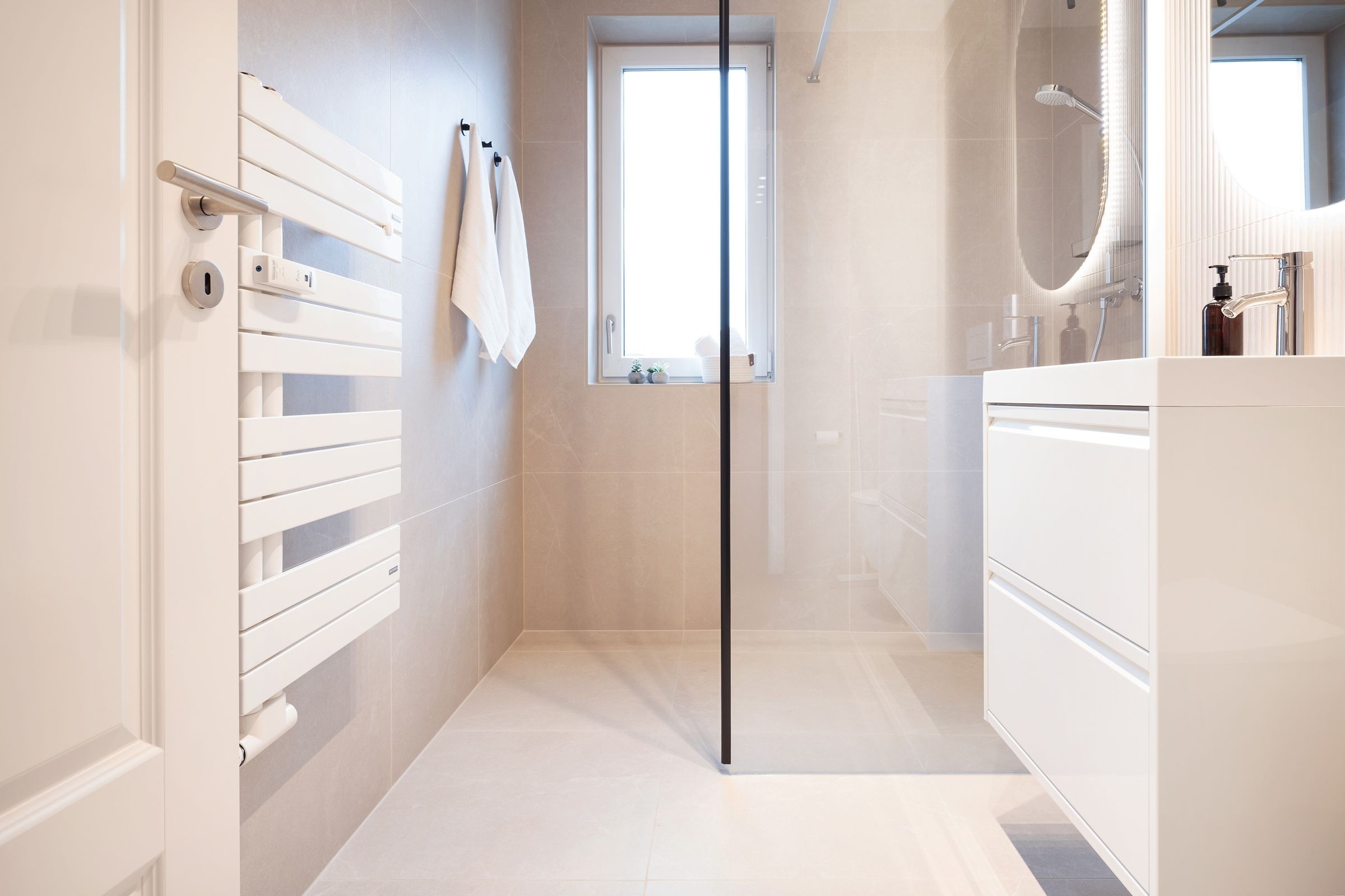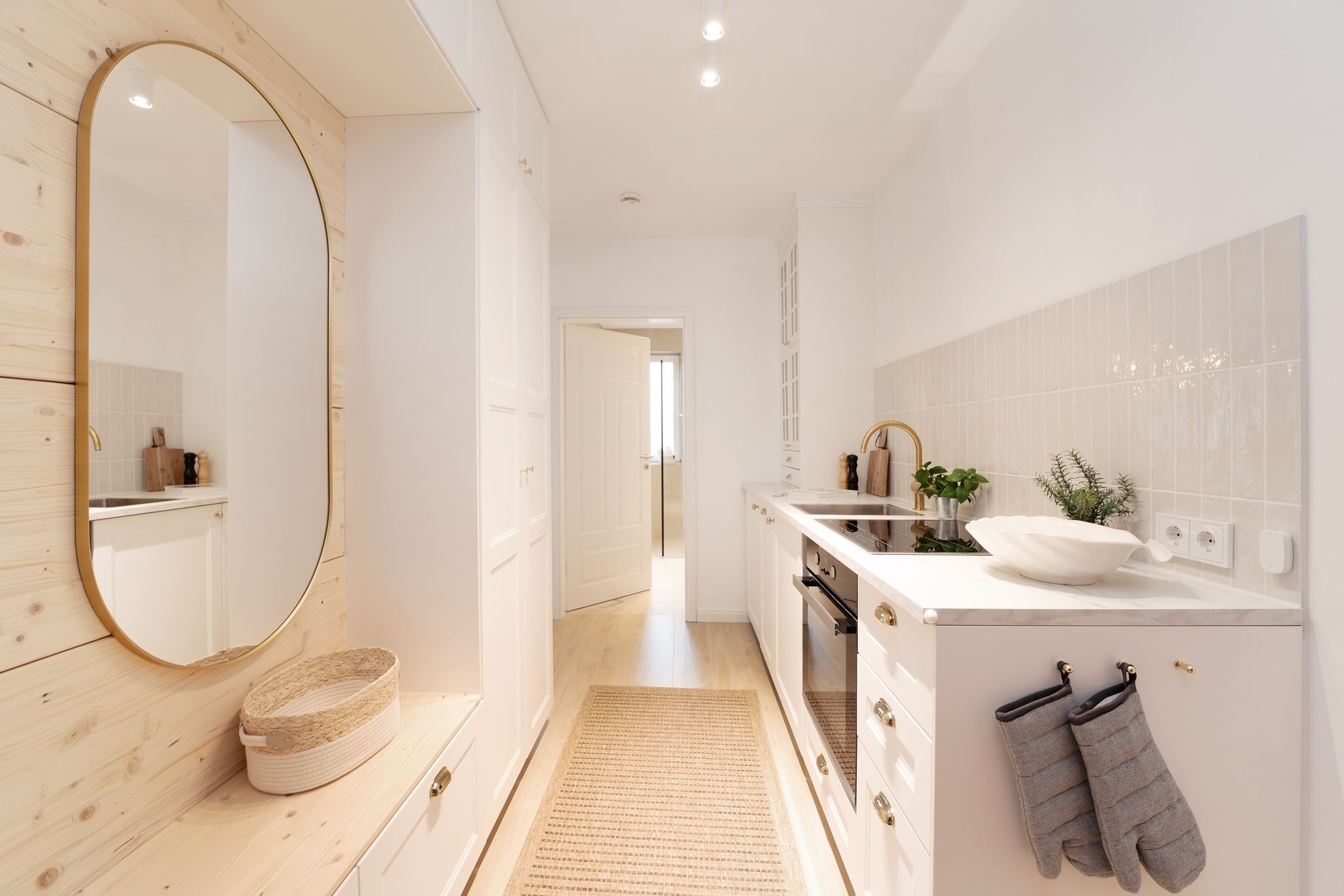 Diese elegant eingerichtete Ferienwohnung auf dem Priwall besticht durch ihre geschmackvolle Einrichtung und lichtdurchflutete Räume. Der stilvolle Wohnbereich lädt mit einer gemütlichen Sitzecke und einem hochwertigen Flachbild-TV zu entspannten Abenden ein. Die großzügige Terrasse, ausgestattet mit Gartenmöbeln, bietet die perfekte Kulisse für gemeinsame Stunden an der frischen Ostseeluft. Die offene Küche im Eingangsbereich verbindet modernes Design mit Funktionalität. Ausgestattet mit einem Induktionsherd, Backofen, einem Kühlschrank mit Gefrierfach, Nespresso-Maschine, Wasserkocher und weiteren Annehmlichkeiten, ist sie perfekt für Kochliebhaber. Der angrenzende Essbereich fügt sich harmonisch in das Ambiente ein. Das Schlafzimmer überzeugt durch sein komfortables Doppelbett (2x 90x200 cm) und stilvolles Interieur. Ein bequemes Schlafsofa bietet im Wohnbereich zwei zusätzliche Schlafmöglichkeiten (ca. 140x200 cm). Das tageslichthelle Badezimmer ist modern gestaltet und verfügt über eine bodengleiche Dusche sowie einen beheizbaren Handtuchhalter.