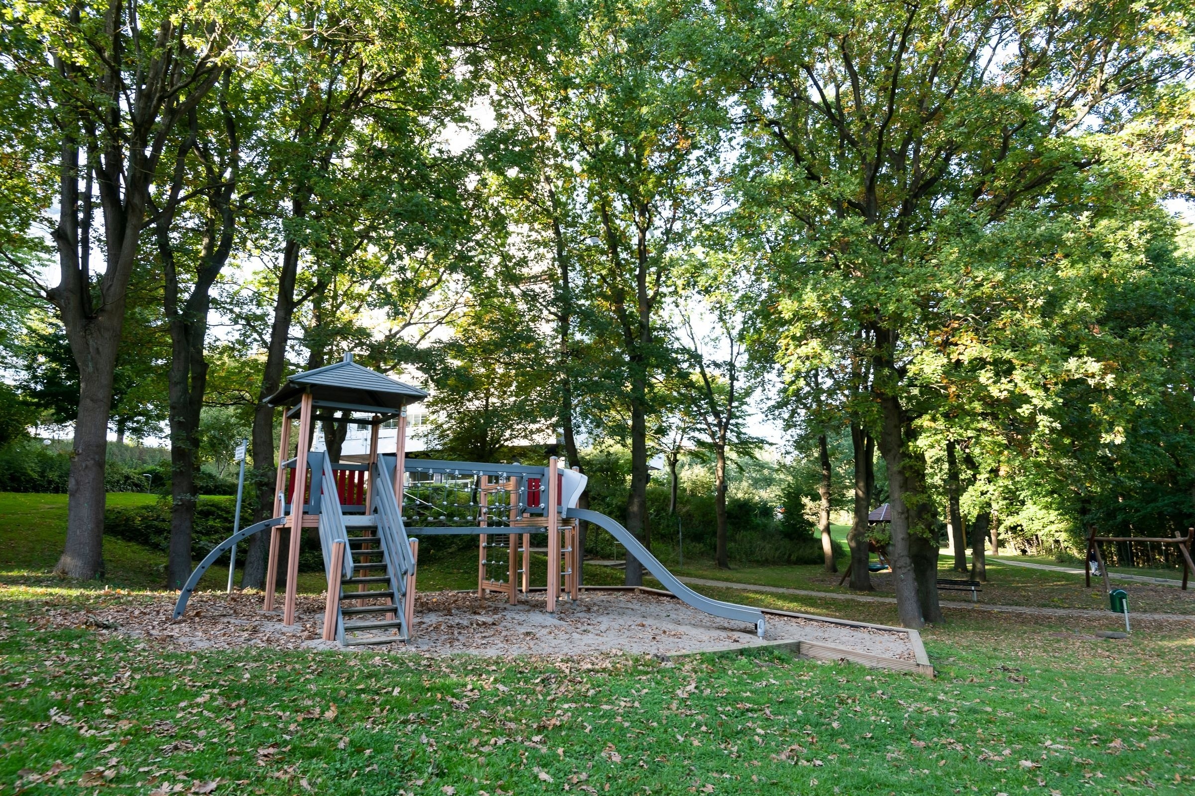 Auf dem Gelände befindet sich ein Kinderspielplatz sowie eine Grünanlage mit Tischtennisplatten, Basketball-, Tennis- (gegen Gebühr), Boccia- und Grill-Platz zur gemeinschaftlichen Nutzung. Das 25m Schwimmbad in der Anlage können Sie gegen Gebühr nutzen.