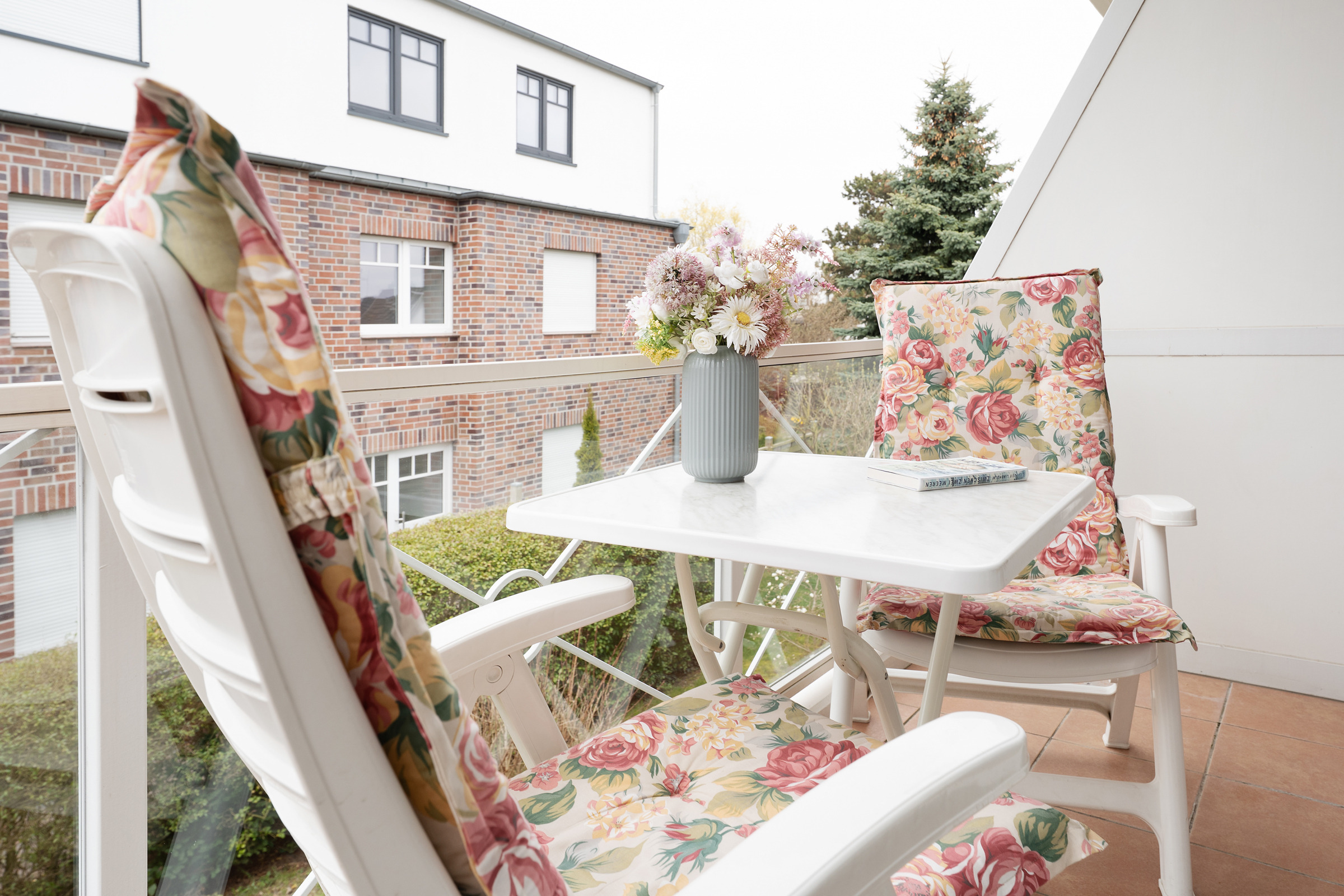 Der möblierte Balkon bietet Ihnen die perfekte Gelegenheit, bei einer Tasse Kaffee die frische Ostseeluft zu genießen. Im modernen Bad mit Dusche starten Sie entspannt in den Tag.