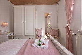 • Unsere liebevoll eingerichtete Ferienwohnung im Erdgeschoss ist ein echtes Schmuckstück. Hier finden bis zu 6 Personen (plus ein Kleinkind) in 3 Zimmern ihr Urlaubsglück. Die moderne Ausstattung und die gemütliche Atmosphäre sorgen dafür, dass Sie sich vom ersten Moment an willkommen und wohl fühlen.