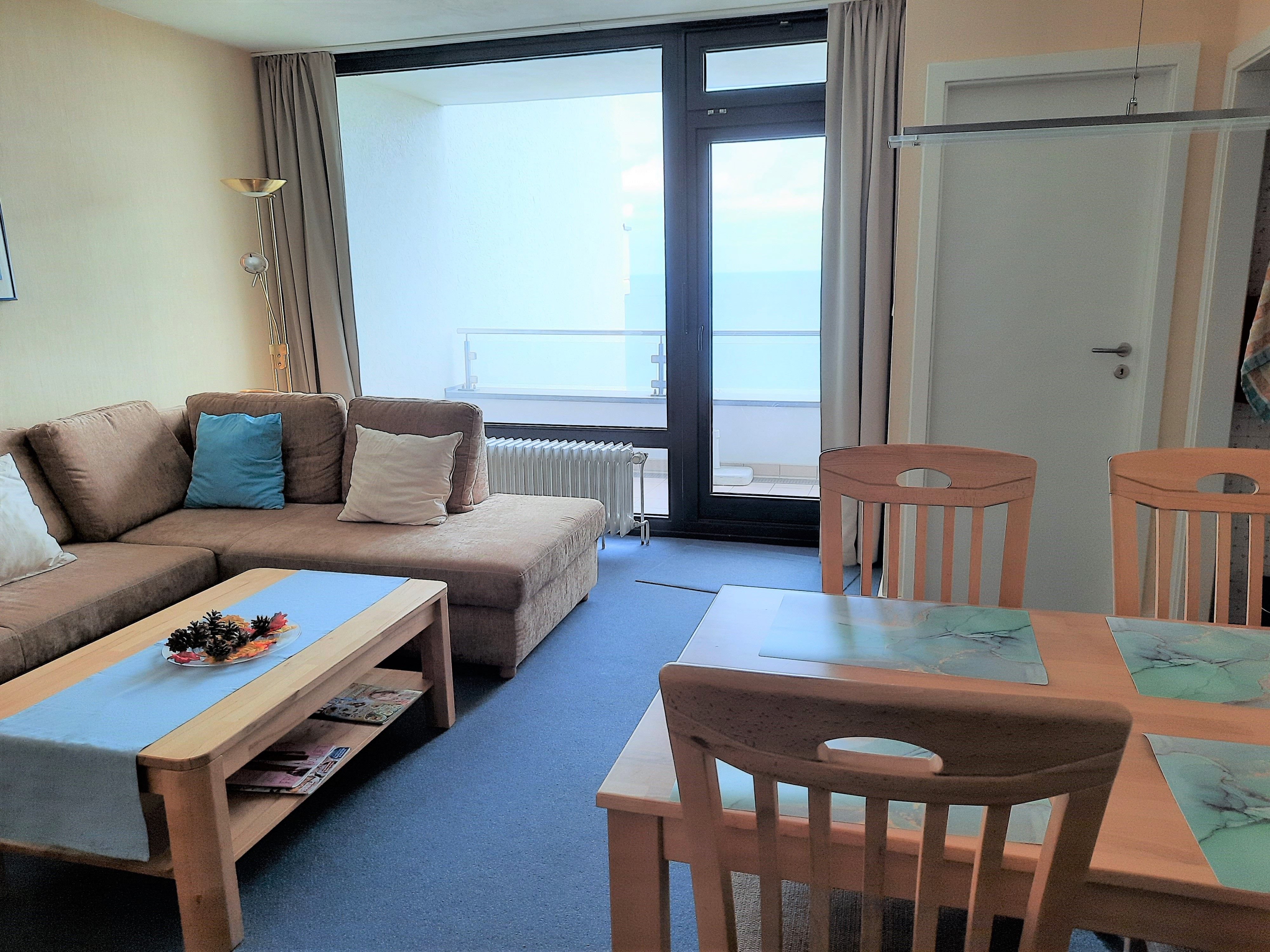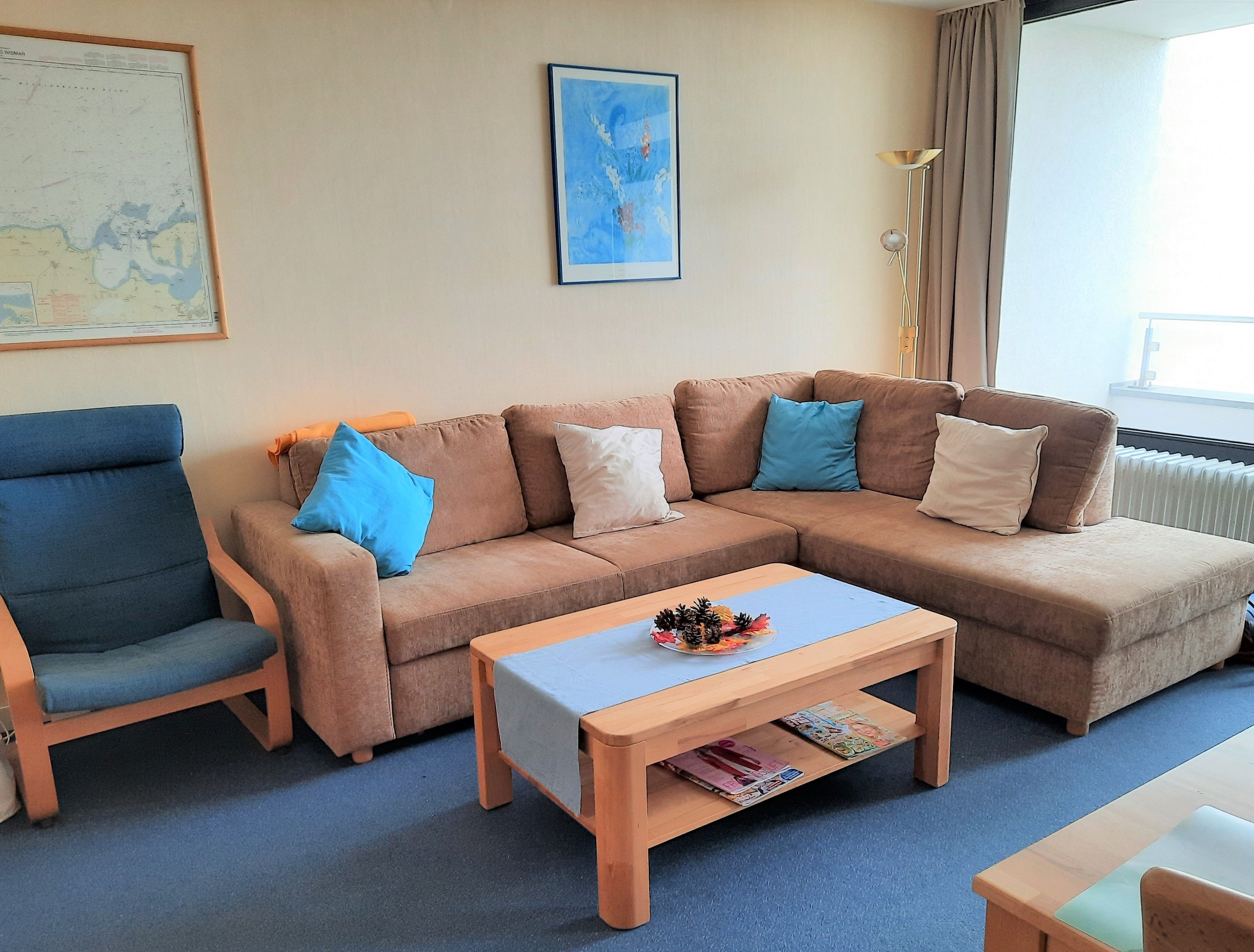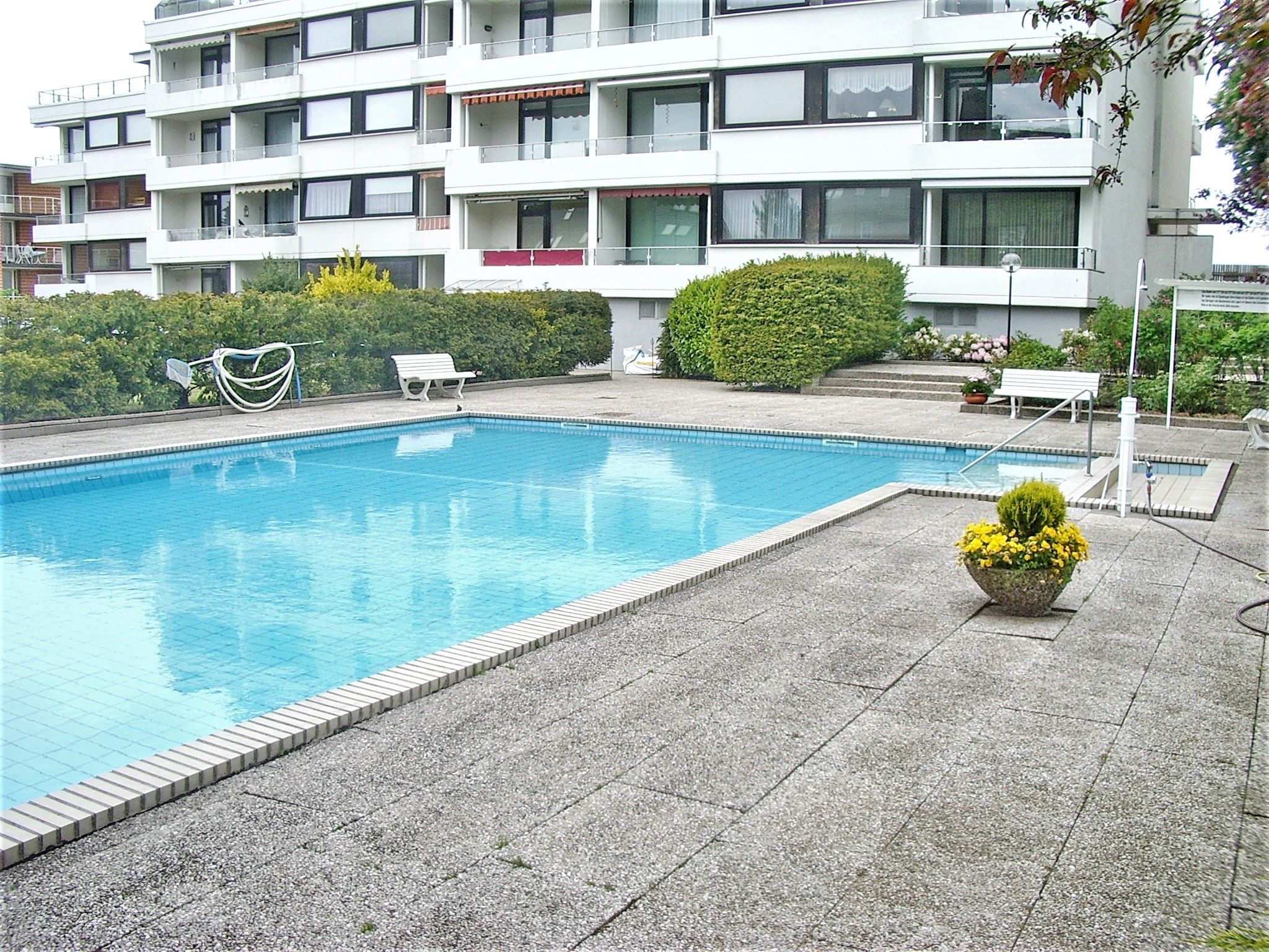 Die ca. 45 m² große Wohnung liegt direkt am Strand (Hang) im 1. Stock eines Apartmenthauses mit Blick auf die Ostsee. Der herrliche Blick auf den Strand und die Lübecker Bucht ist unverbaubar. Hinter dem Haus liegt der PKW-Stellplatz, sowie der in der Hochsaison beheizbare Swimmingpool .