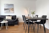 Die Seaside 53° FeWo 1 bietet eine durchdachte Aufteilung auf drei Zimmer – zwei gemütliche Schlafzimmer, ein modernes Badezimmer und einen einladenden Wohnbereich. Im ersten Stock gelegen, ist die Wohnung über einen Aufzug barrierefrei zugänglich, was sie besonders für alle Altersgruppen geeignet macht. Die beiden Schlafzimmer bieten ausreichend Platz für Erholung und Ruhe.