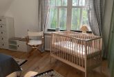 Von der separaten Kueche haben Sie Zugang zur Terrasse und zum großen Garten. Die Schlafzimmer mit Wannenbad liegen im Obergeschoss. Alle Schlafzimmer sind mit Dielenparkett ausgestattet.
