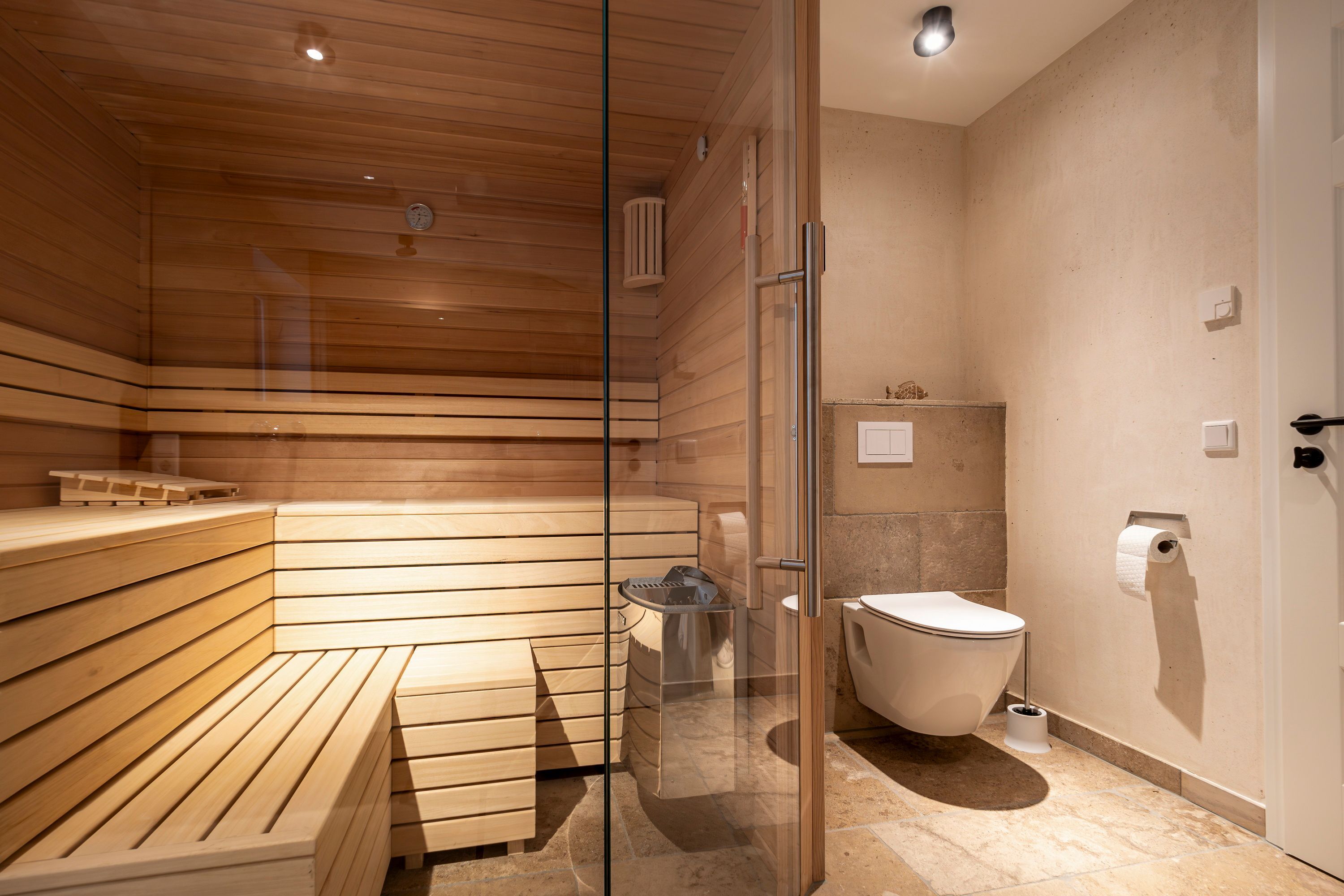 Im Untergeschoss befindet sich das 3. Schlafzimmer sowie die Wellnessoase, die vom Eingangsbereich aus bequem über eine Treppe zu erreichen ist.