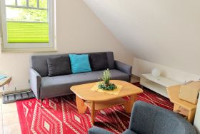 Die 2-Raum-Ferienwohnung Breitsprecher im Dachgeschoss bietet auf 30 m² eine gemütliche und funktionale Ausstattung für Ihren Aufenthalt. Die offene Wohnküche ist ideal für Selbstversorger und verfügt über einen Kühlschrank, eine Mikrowelle und eine Kaffeemaschine, sodass Sie sich jederzeit eine köstliche Mahlzeit oder einen frisch gebrühten Kaffee zubereiten können.