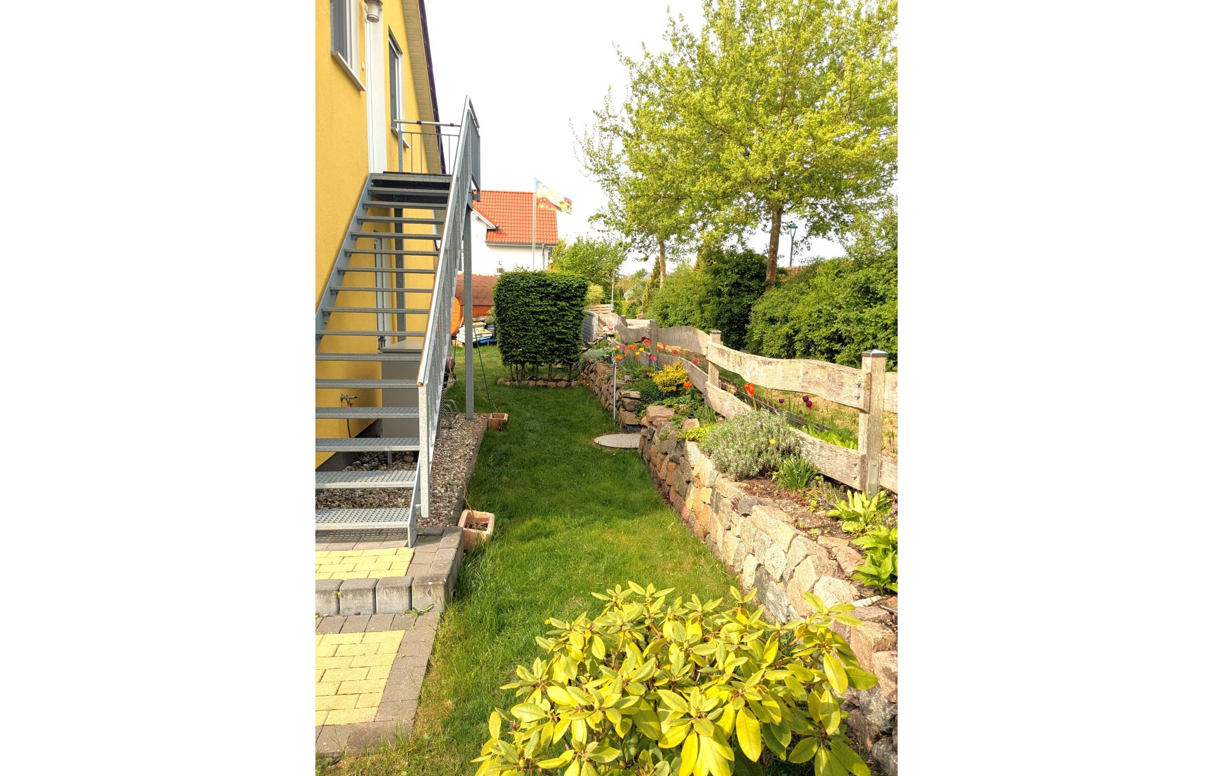 Die Ferienwohnung verfügt über ein einladendes Schlafzimmer, eine moderne Wohnküche, die zum Kochen und Verweilen einlädt, sowie ein Badezimmer mit Dusche. Nach einem erlebnisreichen Tag können Sie in der Sitzecke im Garten entspannen und die Ruhe der Umgebung genießen.