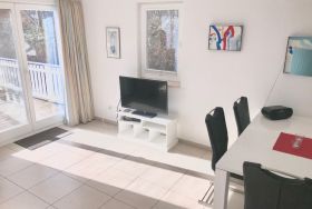 Die Terrasse bietet sich an, um die ruhige Umgebung und die frische Ostseeluft zu genießen. Trotz der ruhigen Lage ist die nächstgelegene Ortsmitte nur 500 Meter entfernt, und für Selbstversorger ist der nächste Lebensmittelhandel nach einer kurzen Fahrt von 4 Kilometern erreichbar.