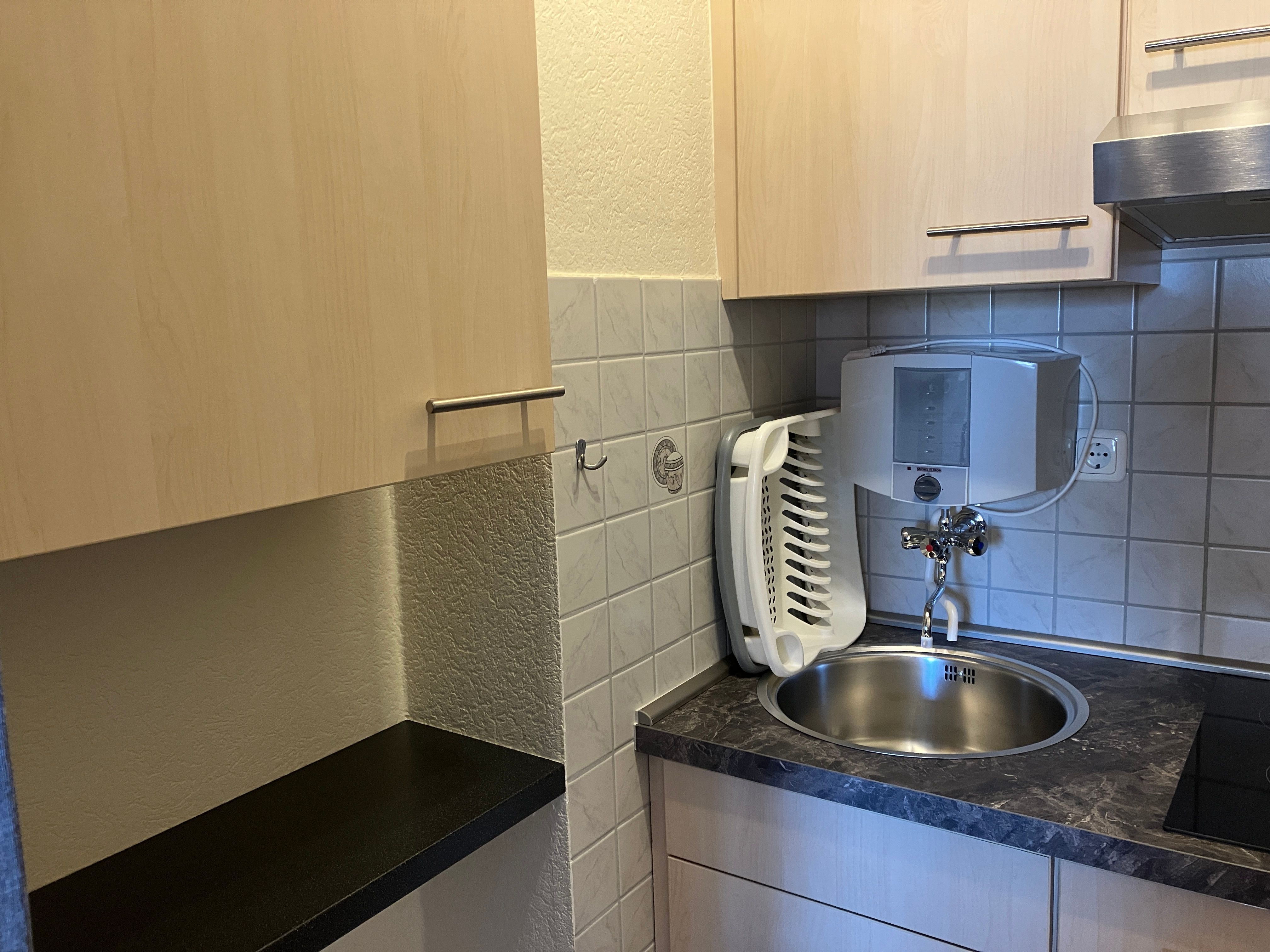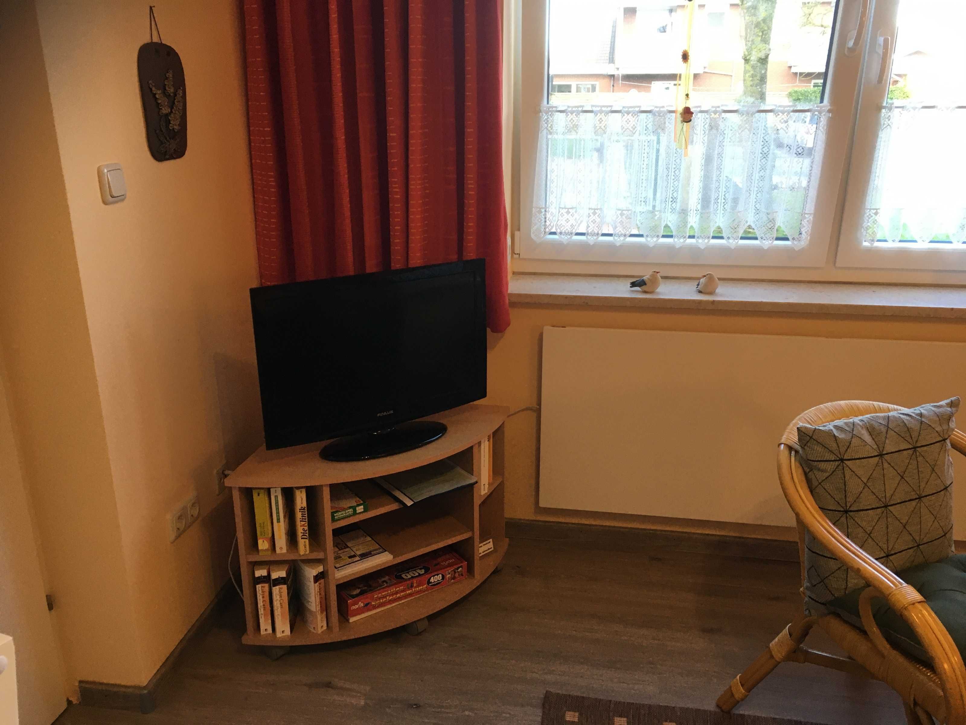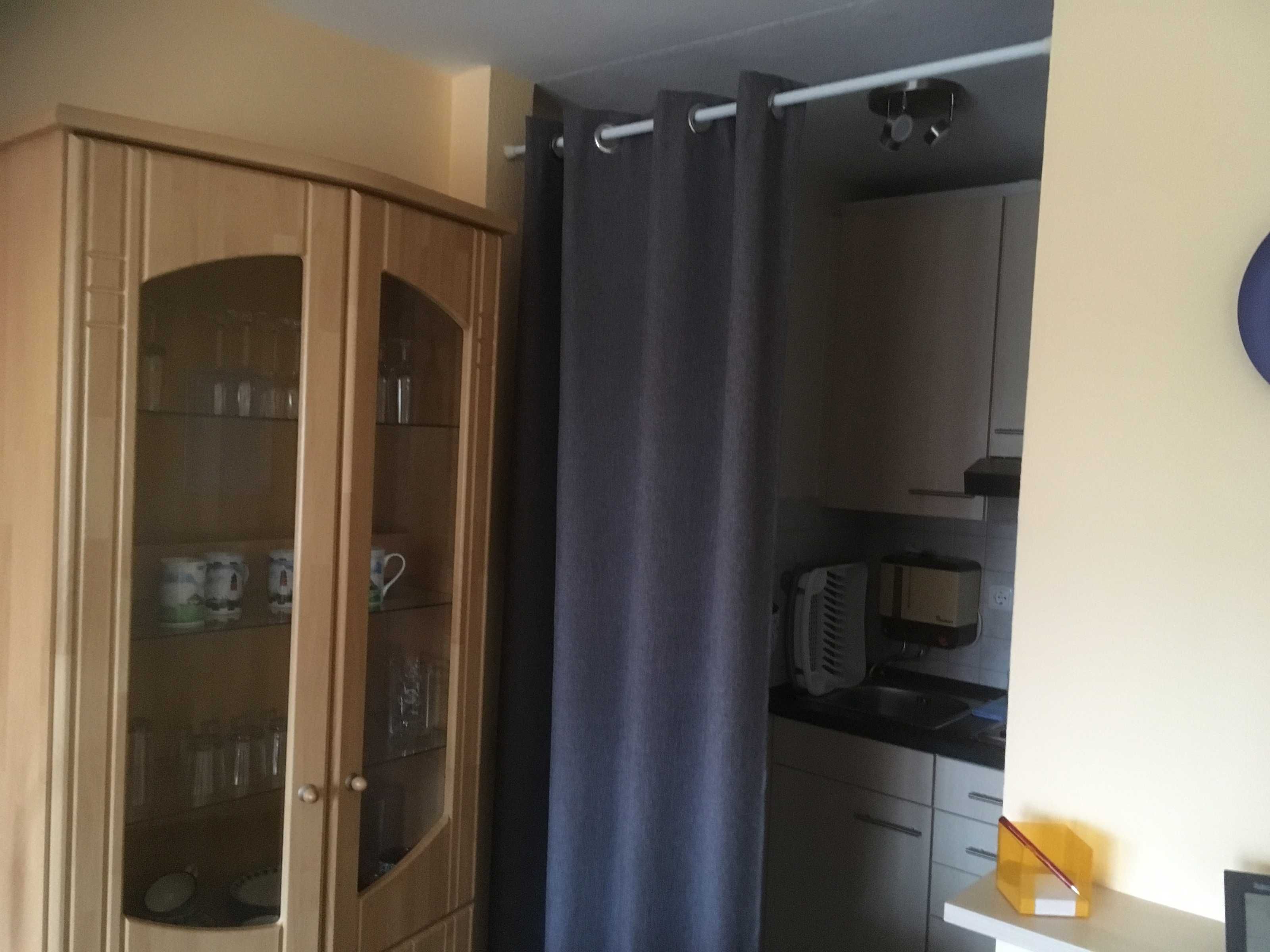 Nach dem Eingangsbereich erreichen sie das Bad mit WC/Dusche, dann finden sie die kleine Küchenecke mit Kaffeemaschine, Toaster, Wasserkocher, Tischbackofen, Eierkocher, Töpfe und Geschirr sind auch ausreichend da. Im anschließenden Wohnraum mit Essecke, gibt es einen Fernseher und CD- Player. Für wohlige Wärme in der kälteren Jahreszeit sorgt eine Infrarotheizung mit Temperaturregler. Im Schlafraum befinden sich zwei Einzelbetten (90x200cm) und ein Kleiderschrank. (Renovierung 2019, Wände, Fussboden, Zimmertüren, Möbel) Neue Matratzen 2022.