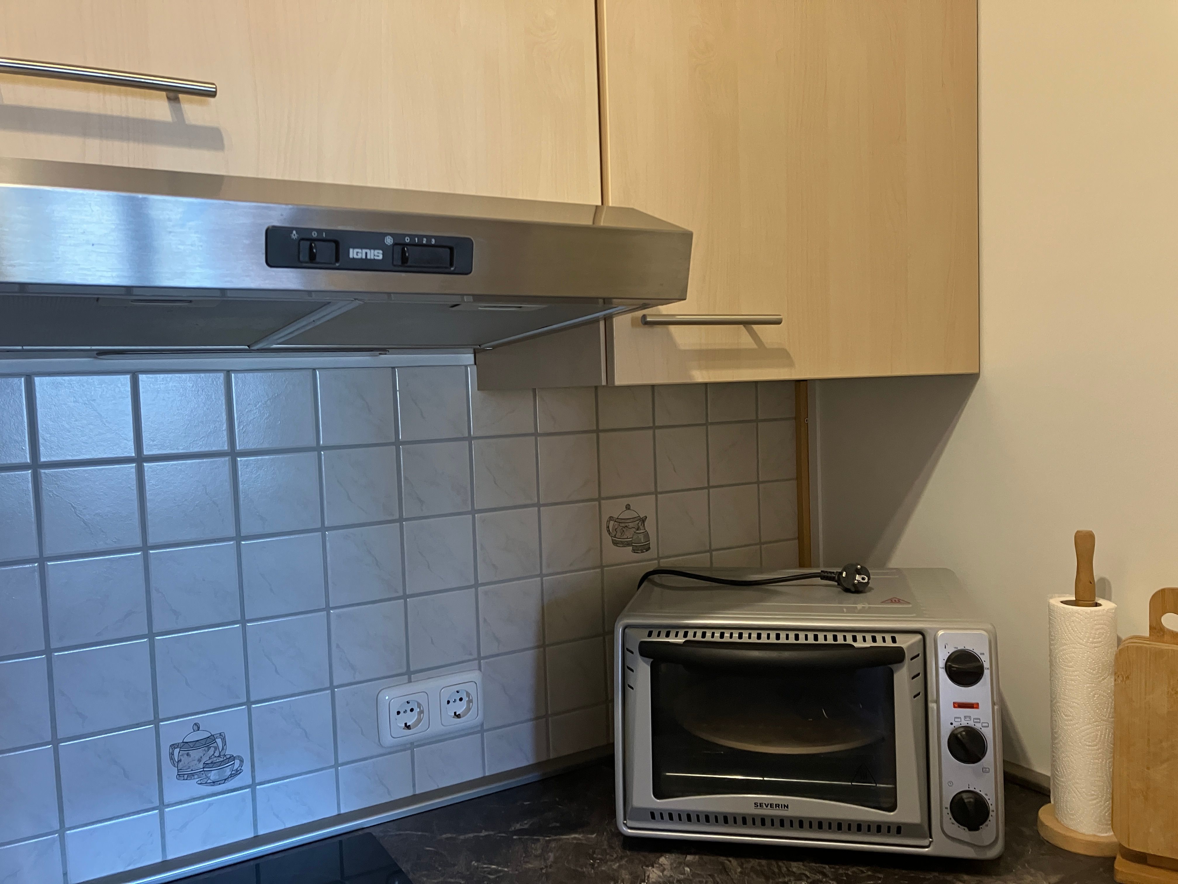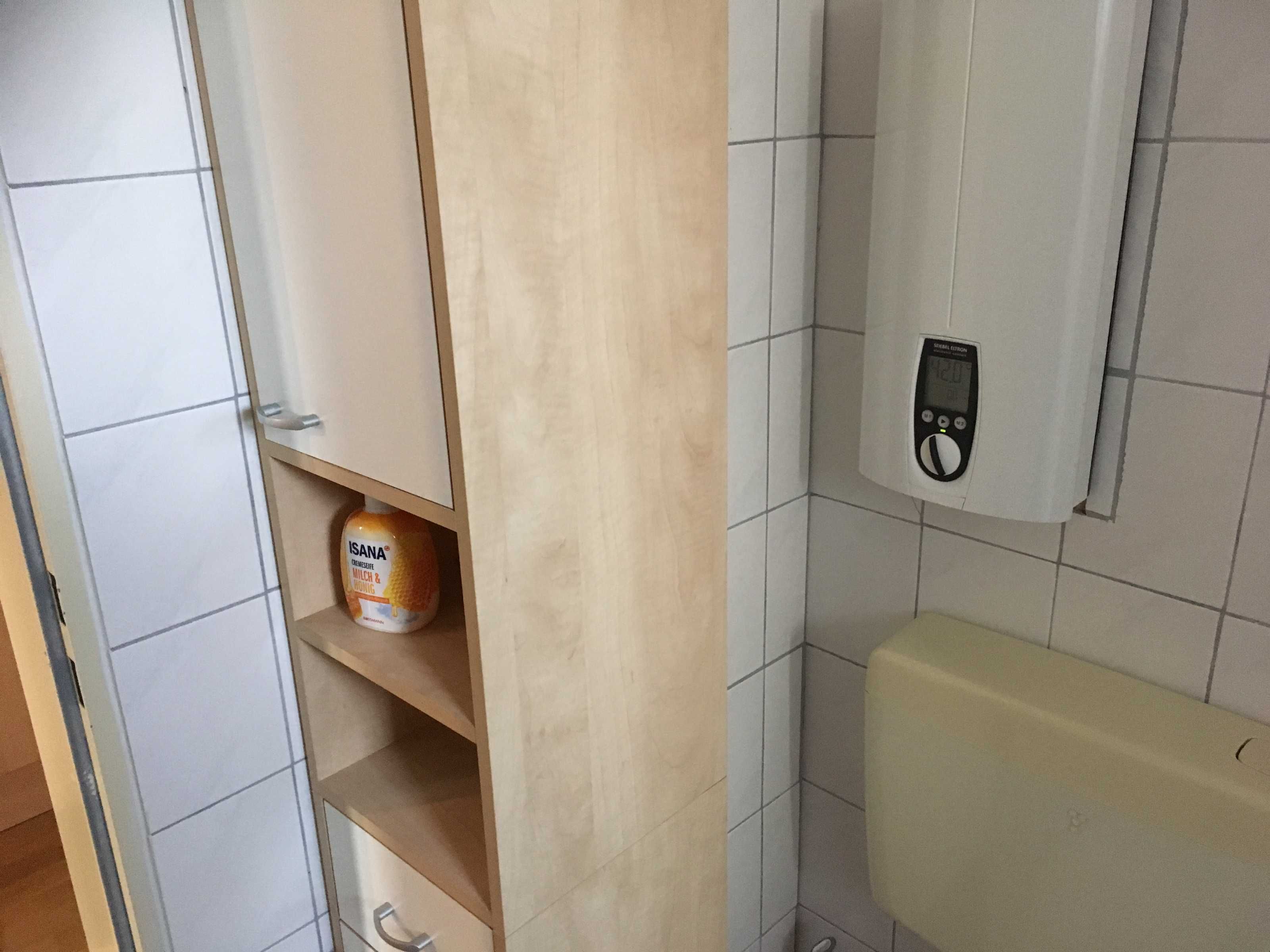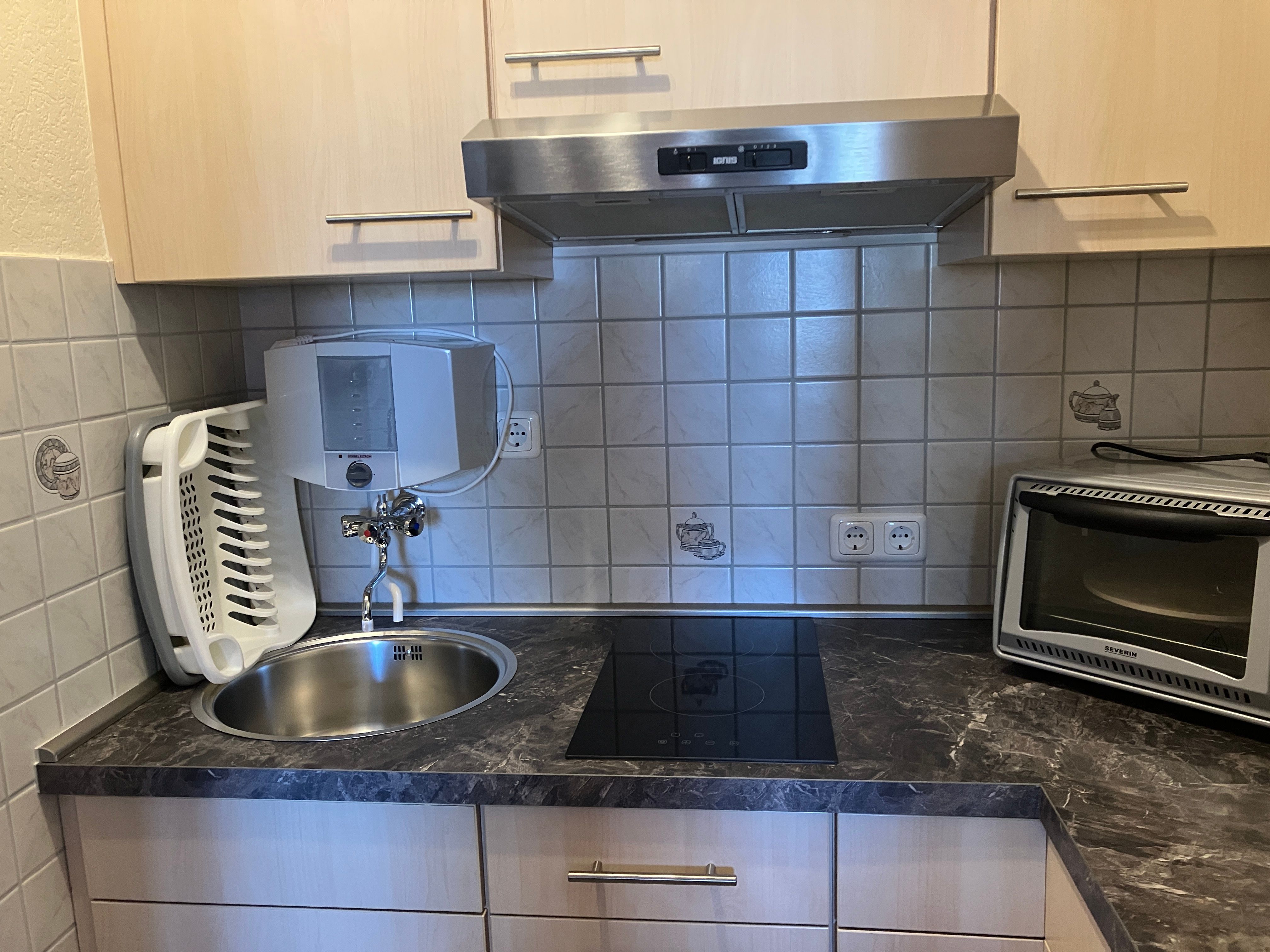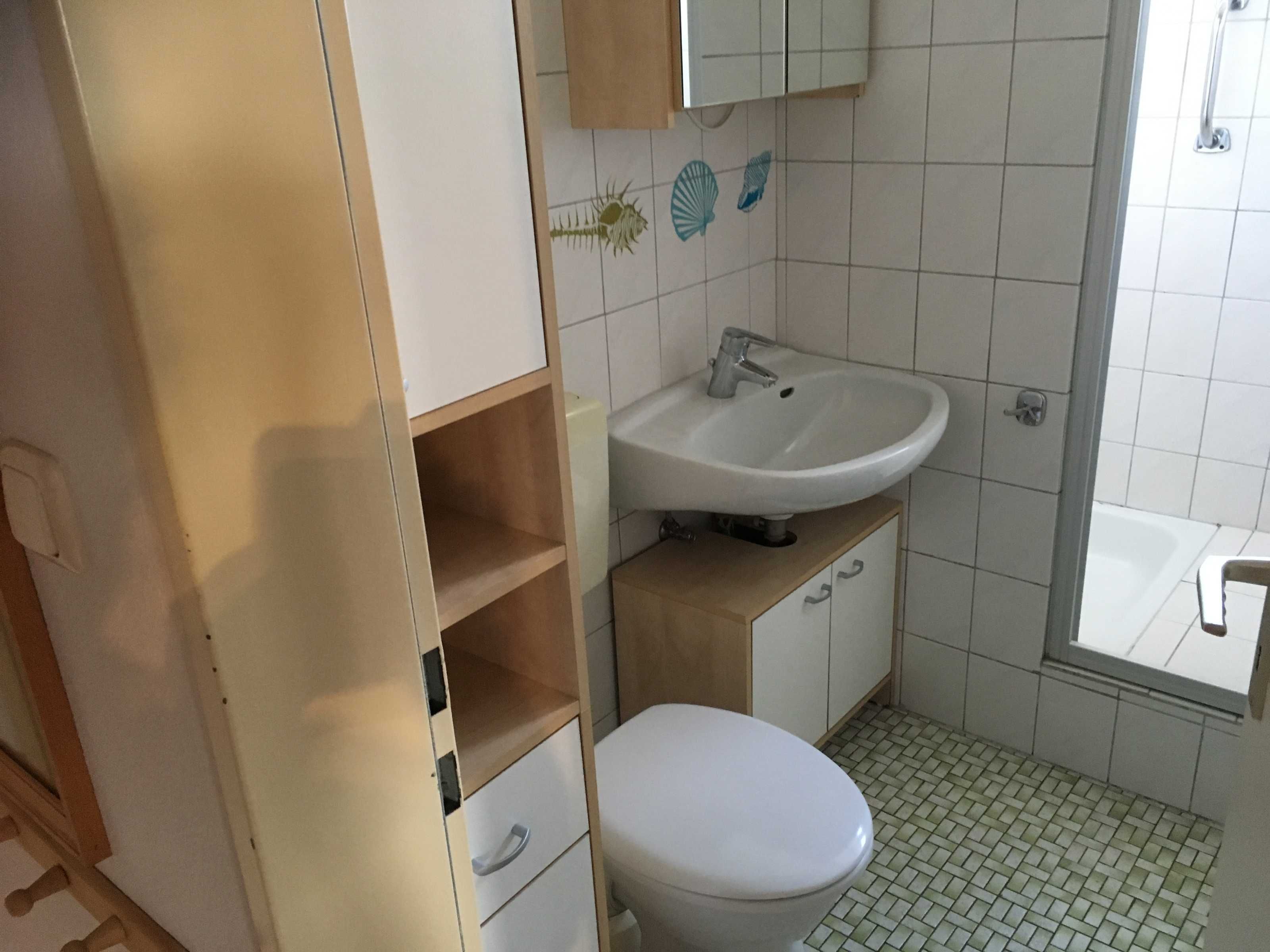 Nach dem Eingangsbereich erreichen sie das Bad mit WC/Dusche, dann finden sie die kleine Küchenecke mit Kaffeemaschine, Toaster, Wasserkocher, Tischbackofen, Eierkocher, Töpfe und Geschirr sind auch ausreichend da. Im anschließenden Wohnraum mit Essecke, gibt es einen Fernseher und CD- Player. Für wohlige Wärme in der kälteren Jahreszeit sorgt eine Infrarotheizung mit Temperaturregler. Im Schlafraum befinden sich zwei Einzelbetten (90x200cm) und ein Kleiderschrank. (Renovierung 2019, Wände, Fussboden, Zimmertüren, Möbel) Neue Matratzen 2022.