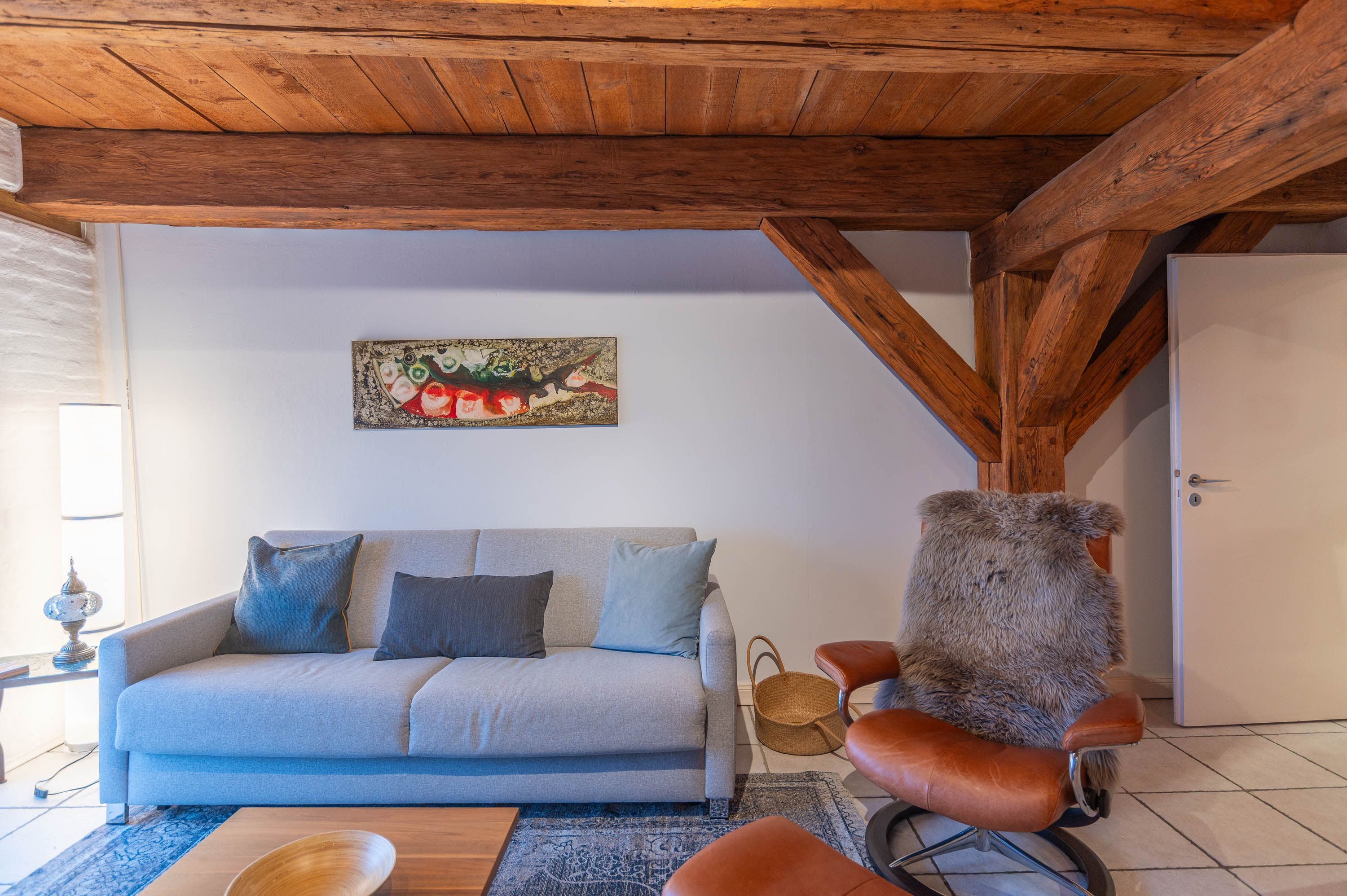 Wohnen mit direktem Blick auf die Kieler Innenförde. Verbringen Sie einzigartige Tage im denkmalgeschützten Kanalpackhaus in Holtenau. Die 2-Zimmerwohnung befindet sich im ehemaligen Lagerhaus am Tiessenkai Holtenau. Das Apartment besticht mit seinem einzigartigen Flair. So finden sich überall in der Wohnung Holzkonstruktionen und Holzbalken, die den Charakter des 270 Jahren alten Hauses widerspiegeln.