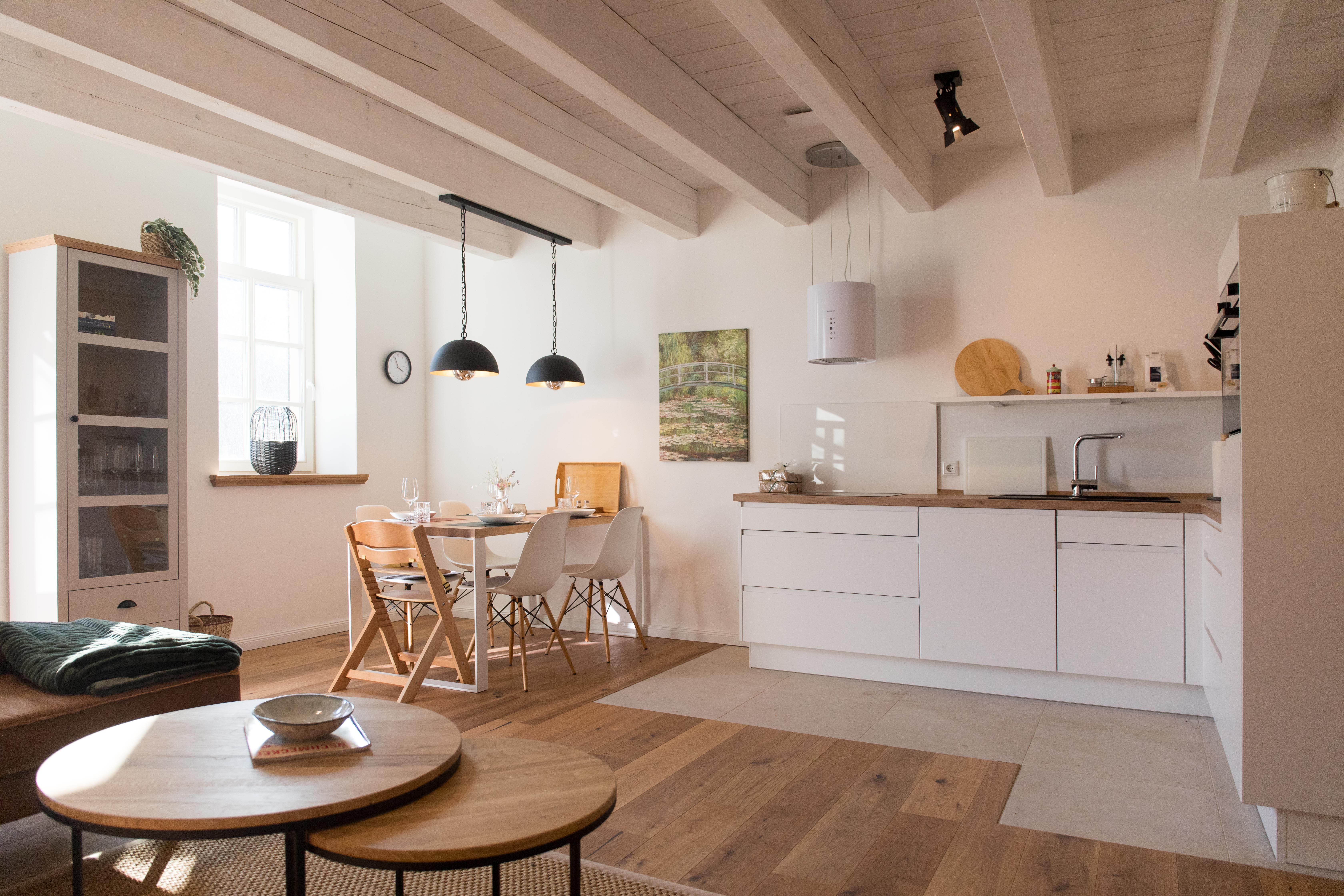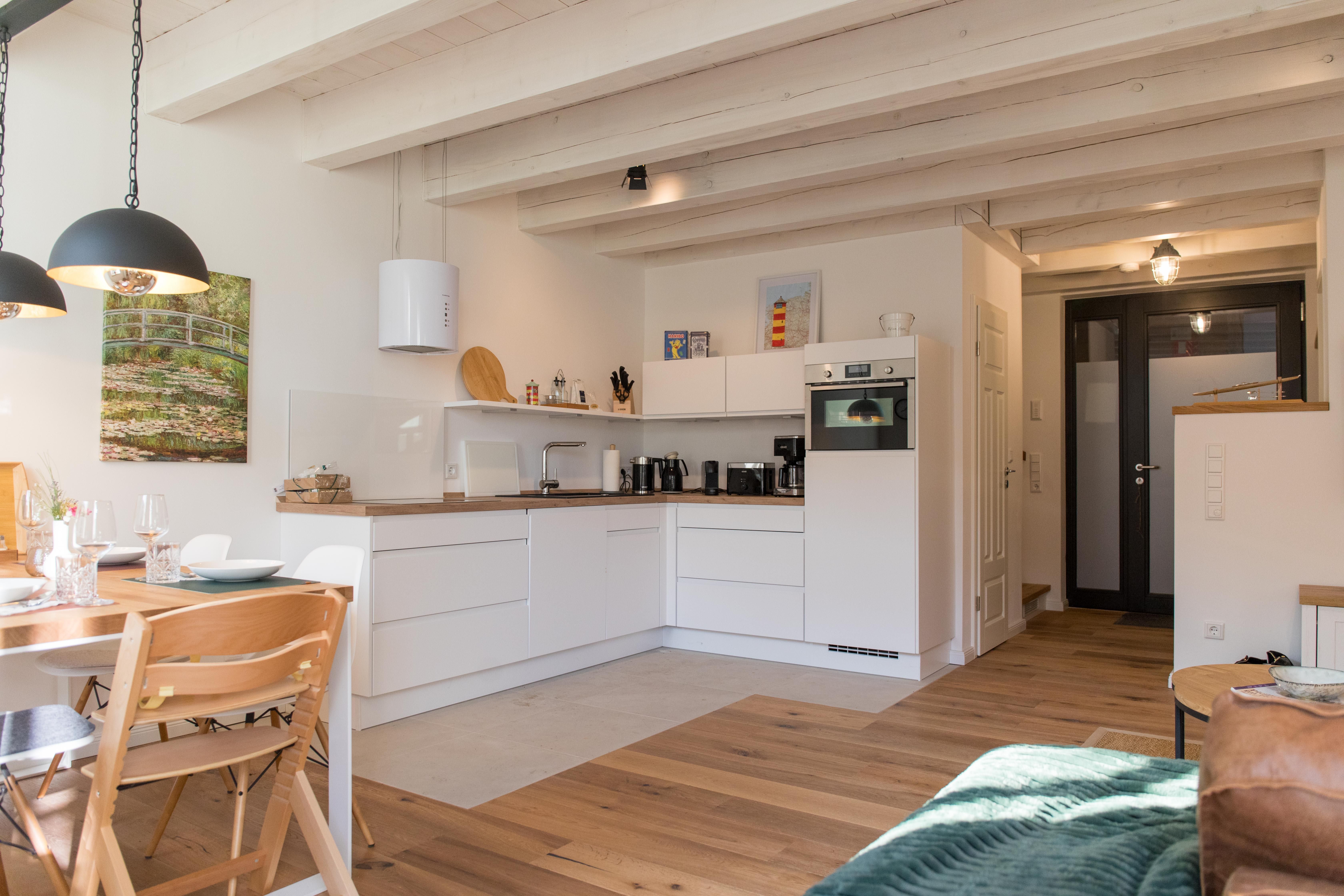 Im Erdgeschoss befinden sich Wohnbereich, offene Küche und Gäste-WC: