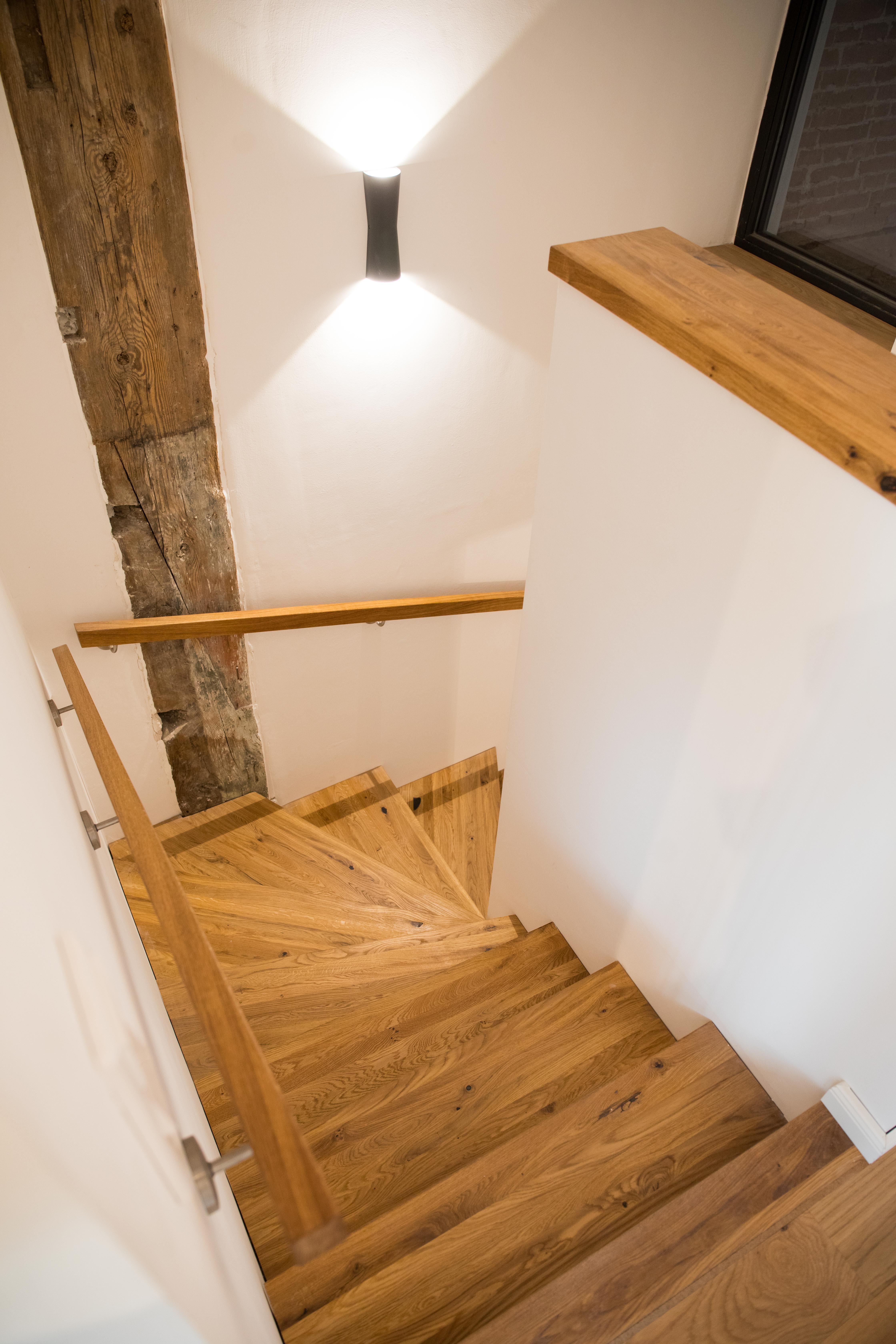 Alle Wohnungen sind Maisonette und zeichnen sich durch moderne, Grundrisse aus. Durch die Einbeziehung des historischen Ständerfachwerks in die Wohnraumgestaltung erhalten die Einheiten zudem eine besondere, unverwechselbare Note. Fußbodenheizung, Echtholz-Parkettböden sowie Armaturen und Keramik namhafter Hersteller versprechen einen hohen Wohnkomfort. Zu jeder Wohnung gehört eine großzügige Terrasse sowie ein PKW-Stellplatz mit Abstellschuppen. Die Außenanlagen des rund 4000 qm großen Grundstücks zeichnen sich besonders an der Südseite und Ostseite durch großzügige Grünflächen aus, die mit Sträuchern und Hecken geschmackvoll angelegt wurden. Ein alter Baumbestand rundet das Gesamtbild ab.