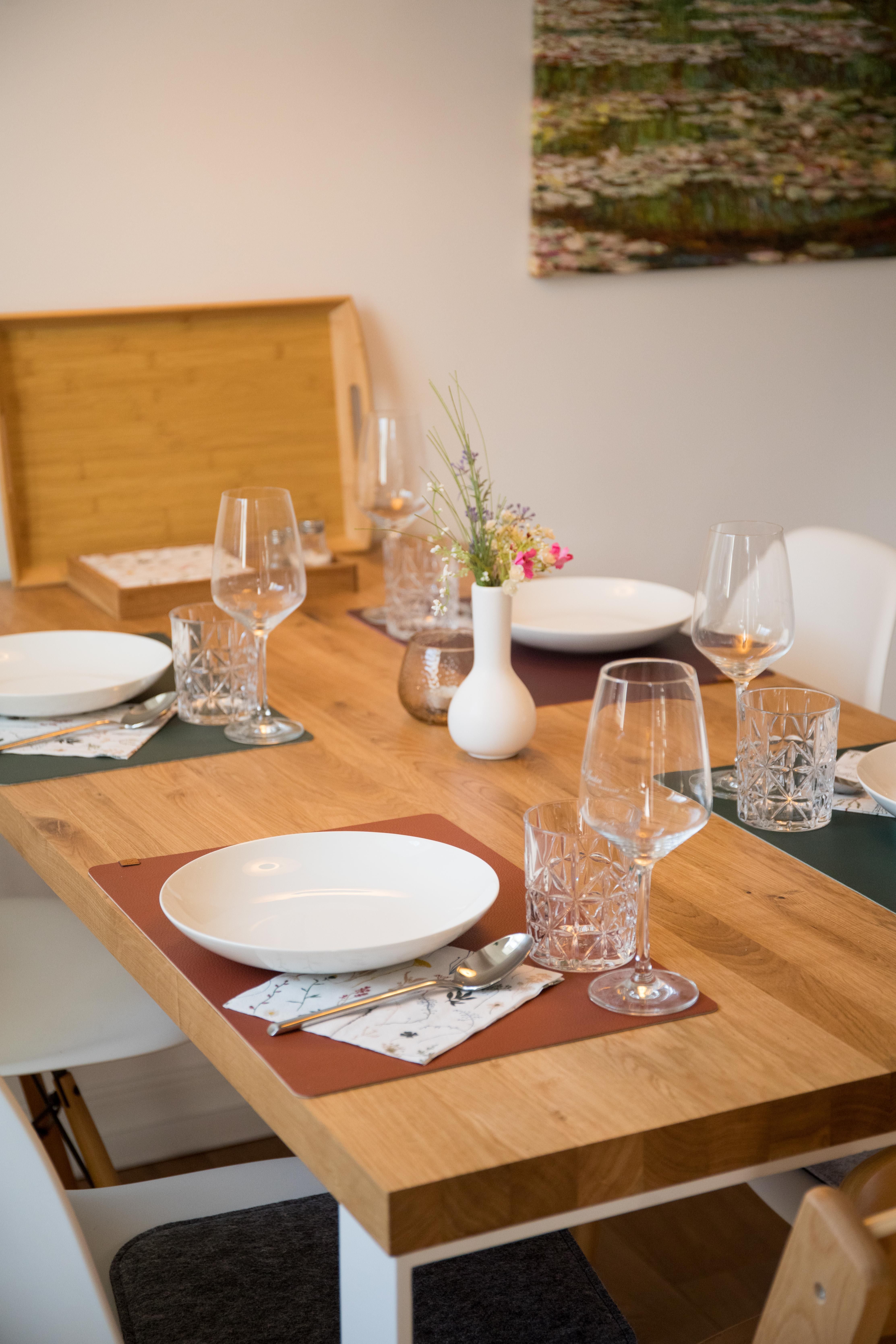 Der Wohnbereich ist bestimmt durch eine Sitzlandschaft, 1 großen TV und einer Kinderspielecke. Die Küche ist – neben Esstisch mit 4 Stühlen und 1 Kinderhochsitz - voll ausgestattet mit Induktionsherd, Dunstabzugshaube, Backofen, Mikrowelle, Kühlschrank, Geschirrspüler sowie Küchengeräten wie Nespresso-Maschine, Wasserkocher, Toaster. Vom Wohnbereich geht es auf Ihre Terrasse mit Blick auf eine große Wiese, die z.B. von Kindern zum Spielen genutzt werden kann. Mit verstellbaren Gartenstühlen, Tisch und Weber Holzkohlegrill können Sie den Tag ausklingen lassen oder den Sonnenaufgang beobachten.