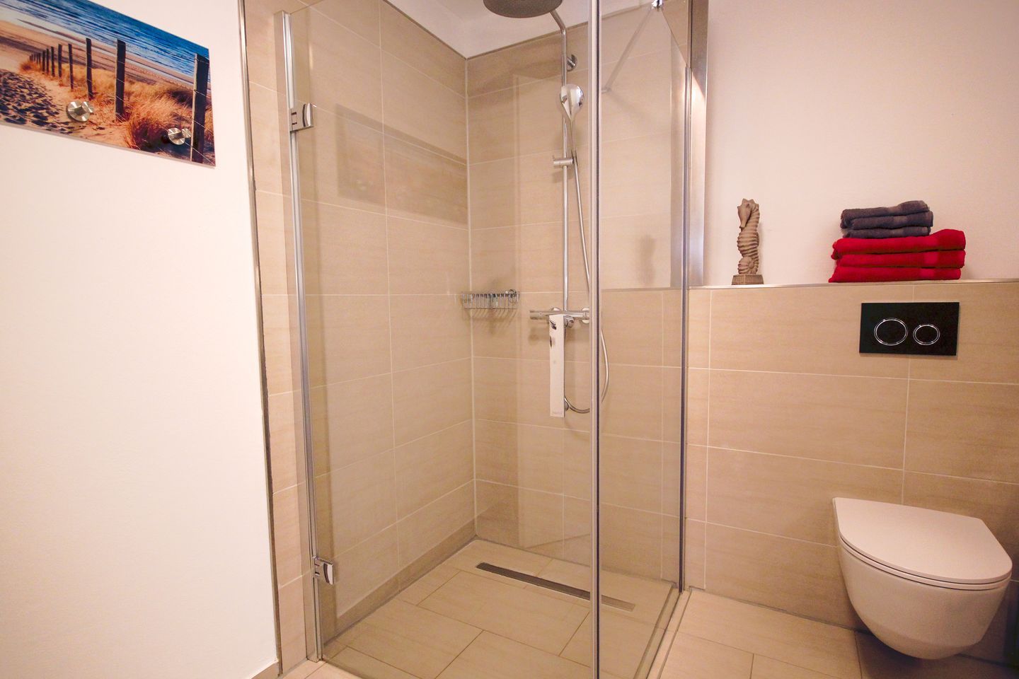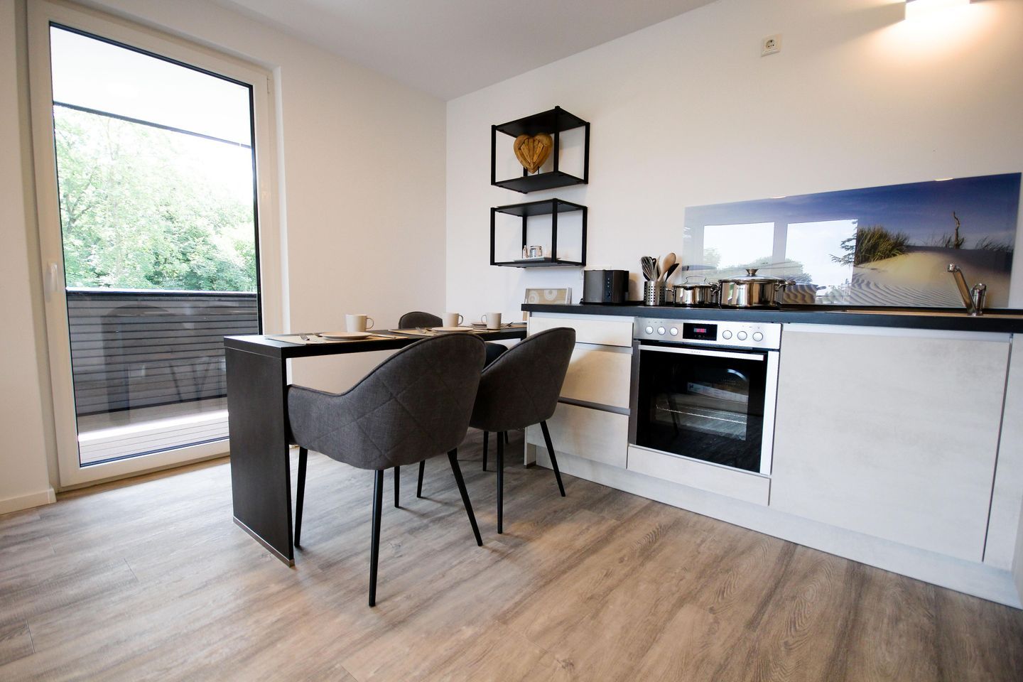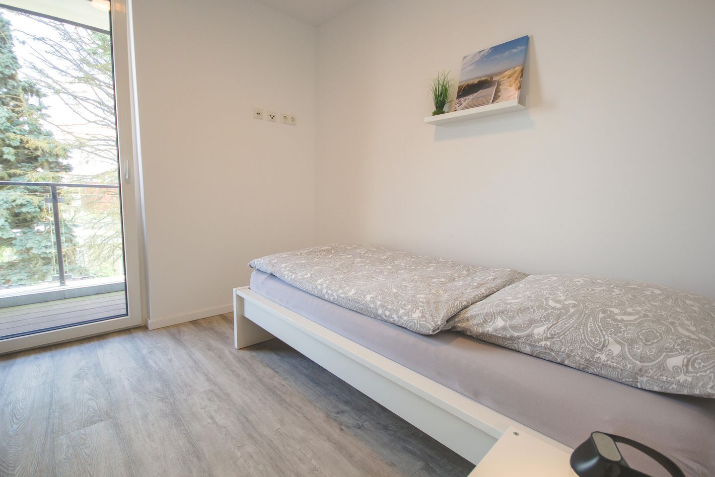 Diese stilvolle 65 m² große Ferienwohnung für bis zu 3 Personen überzeugt durch eine durchdachte Raumaufteilung, moderne Ausstattung und ein besonderes Highlight: Von jedem Zimmer aus haben Sie direkten Zugang zum möblierten Balkon – ideal, um jederzeit frische Luft und Sonne zu genießen.