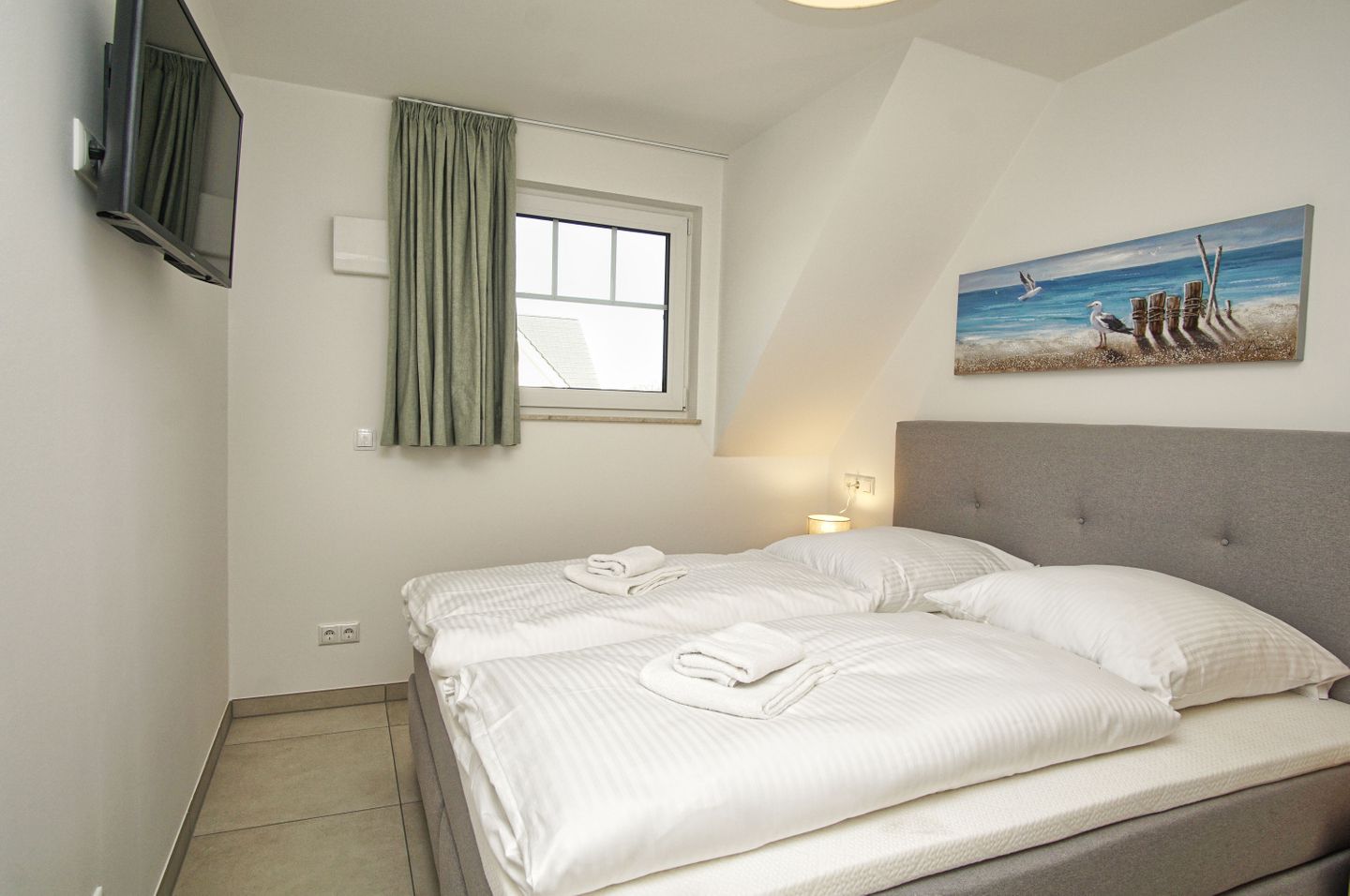 SCHLAFEN // ein Schlafzimmer jeweils mit bequemem Doppelbett und Flachbild-TV (Smart-TV), ein Schlafzimmer mit einem Einzelbett (französisches Bett) und Flachbild-TV (Smart-TV), ein Schlafzimmer mit zwei Einzelbetten und Flachbild-TV (Smart-TV) ++