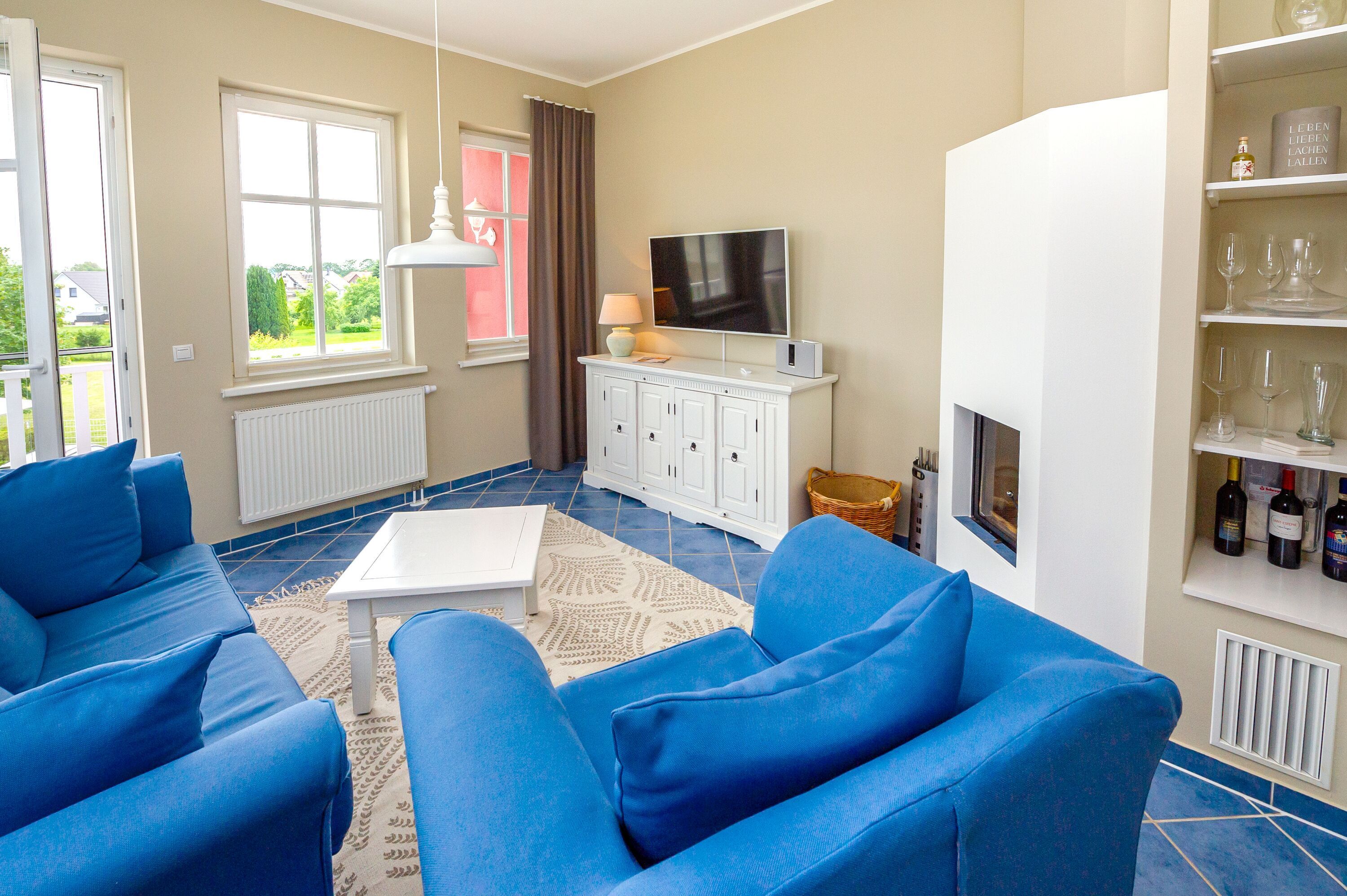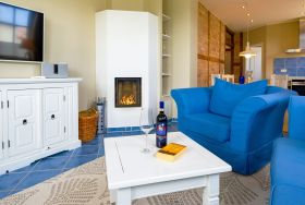 Über einen Flur gelangen Sie in den großzügigen Wohn- und Essbereich. In diesem befinden sich u.a. eine gemütliche Couch (ohne Schlaf-Funktion), ein Kamin für erholsame Stunden, ein Esstisch, ein LCD-Fernseher, eine BOSE Bluetooth-Soundanlage sowie ein schnurloses Telefon. Kostenloser Internetzugang (per Datenkabel oder per WLan) zu Ihrer Verfügung.