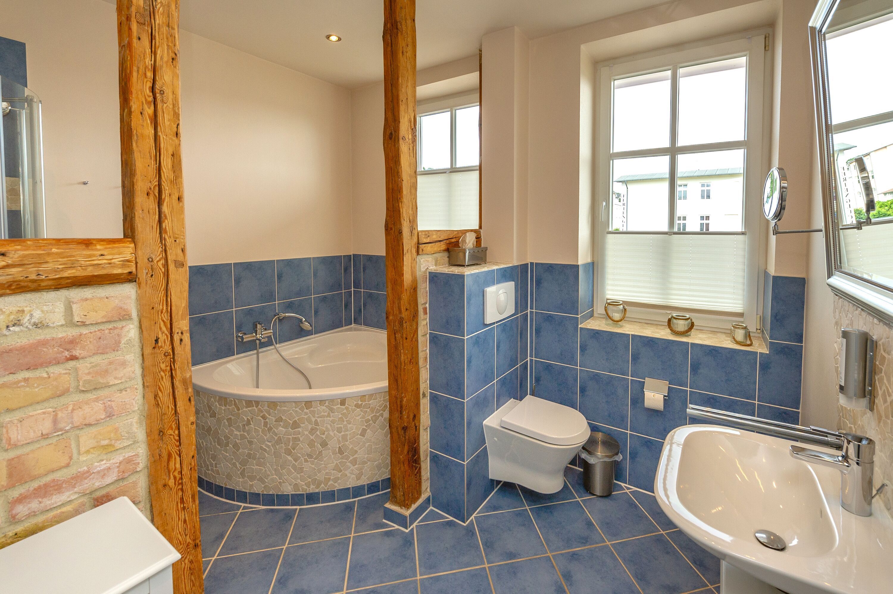Das Appartement verfügt über ein Schlafzimmer mit einem Doppelbett (1,80 x 2,00 m) und einem weiteren LCD-Fernseher, sowie ein großzügiges Duschbad mit Dusche, Badewanne, WC, Waschbecken, Handtuchheizung sowie Fußbodenheizung.