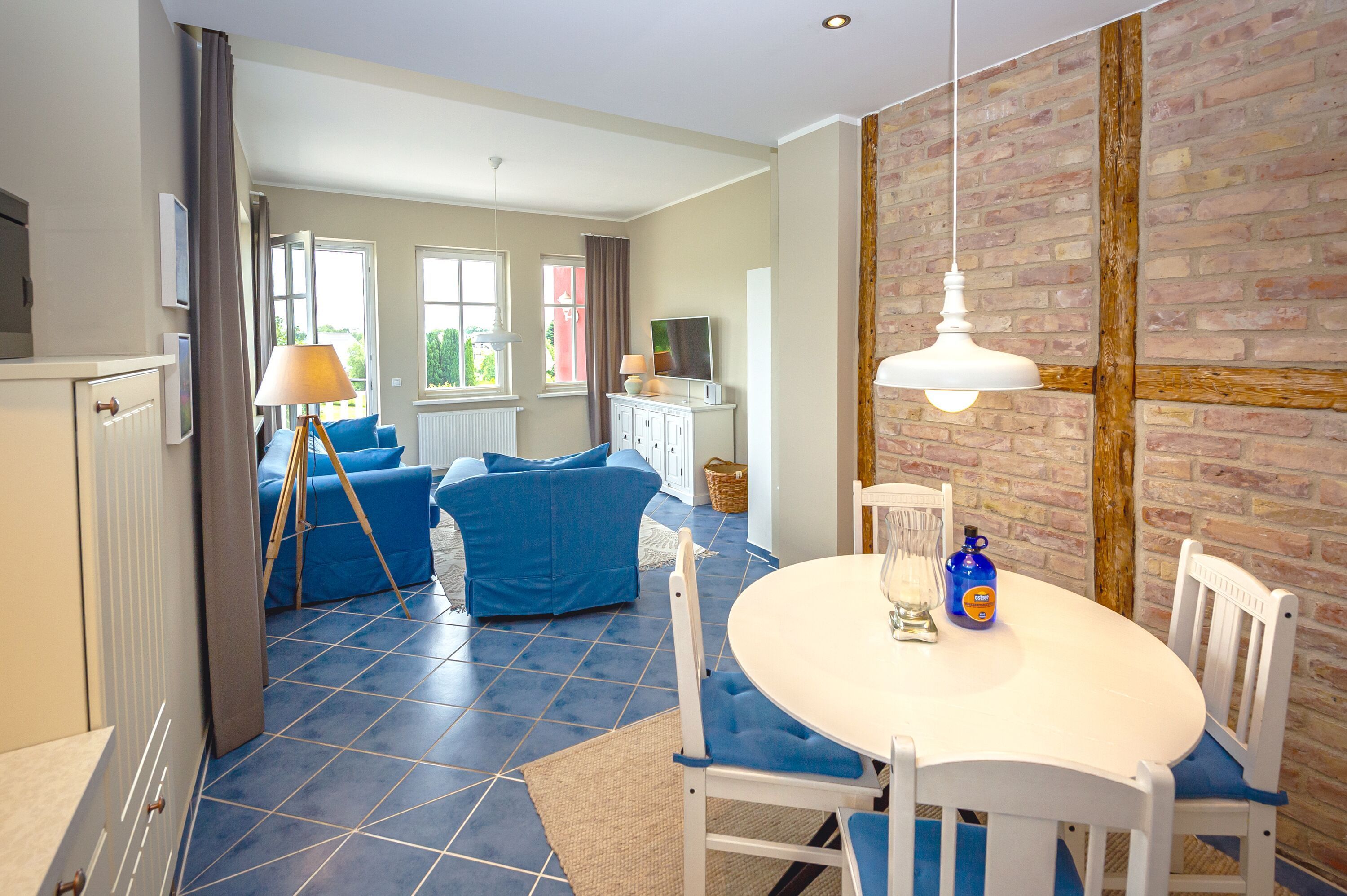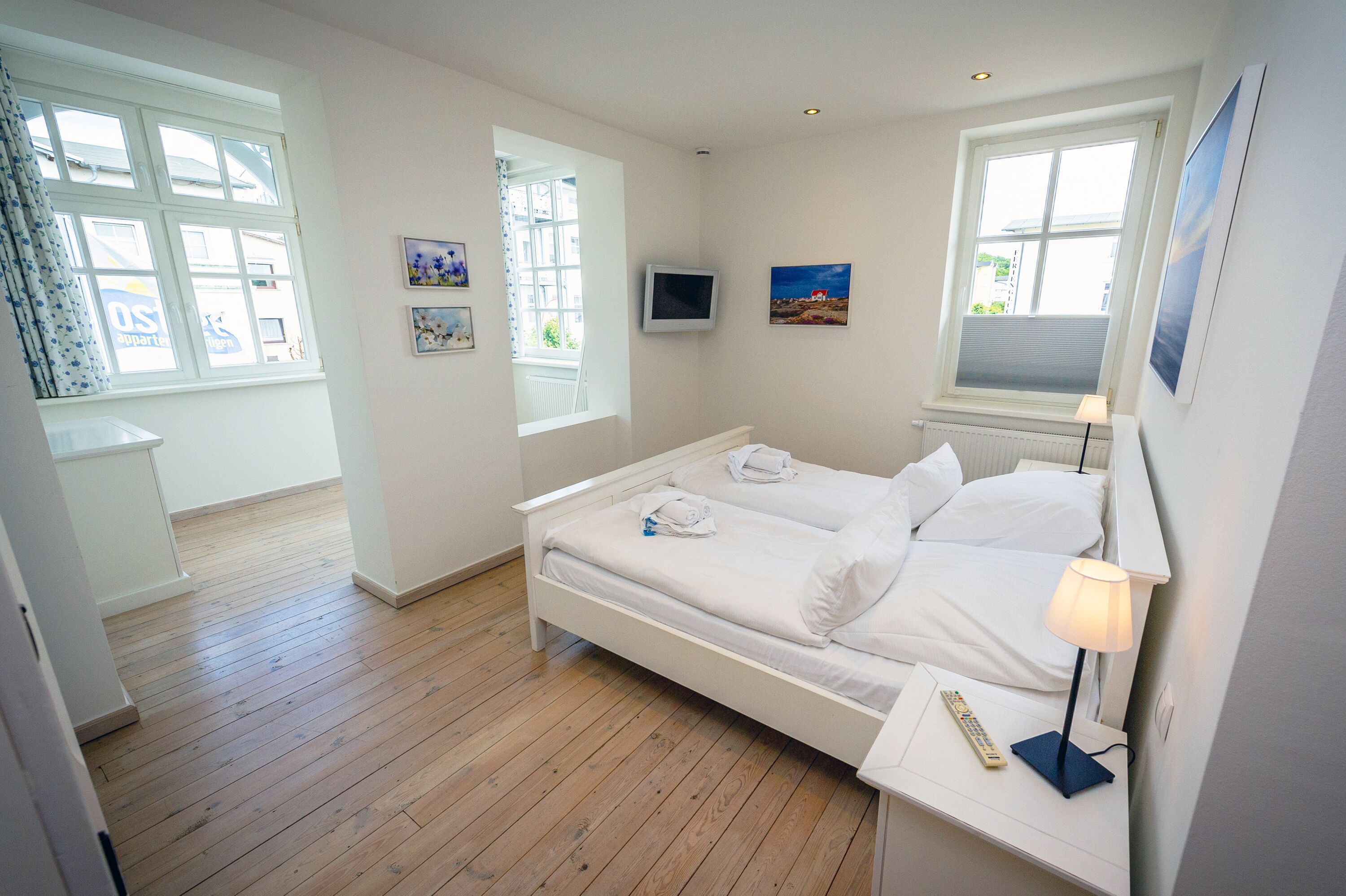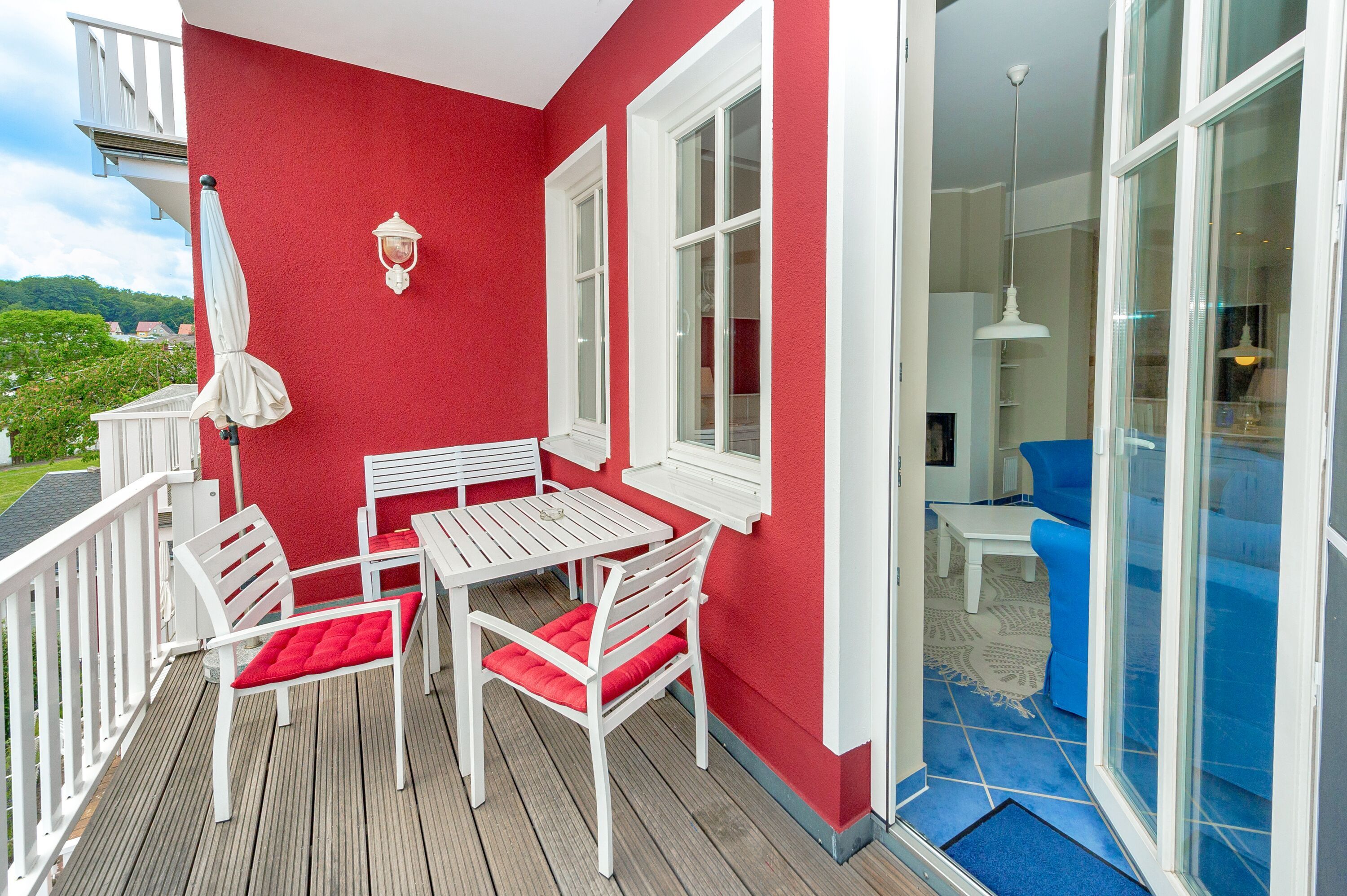 Dieses zauberhafte 2-Raum-Appartement im 1. Obergeschoss ist im weißen Landhausstil eingerichtet, hat eine Wohnfläche von ca. 68 m² und einen großen möblierten Balkon (ca. 11 m²) zur sonnigen Südseite.