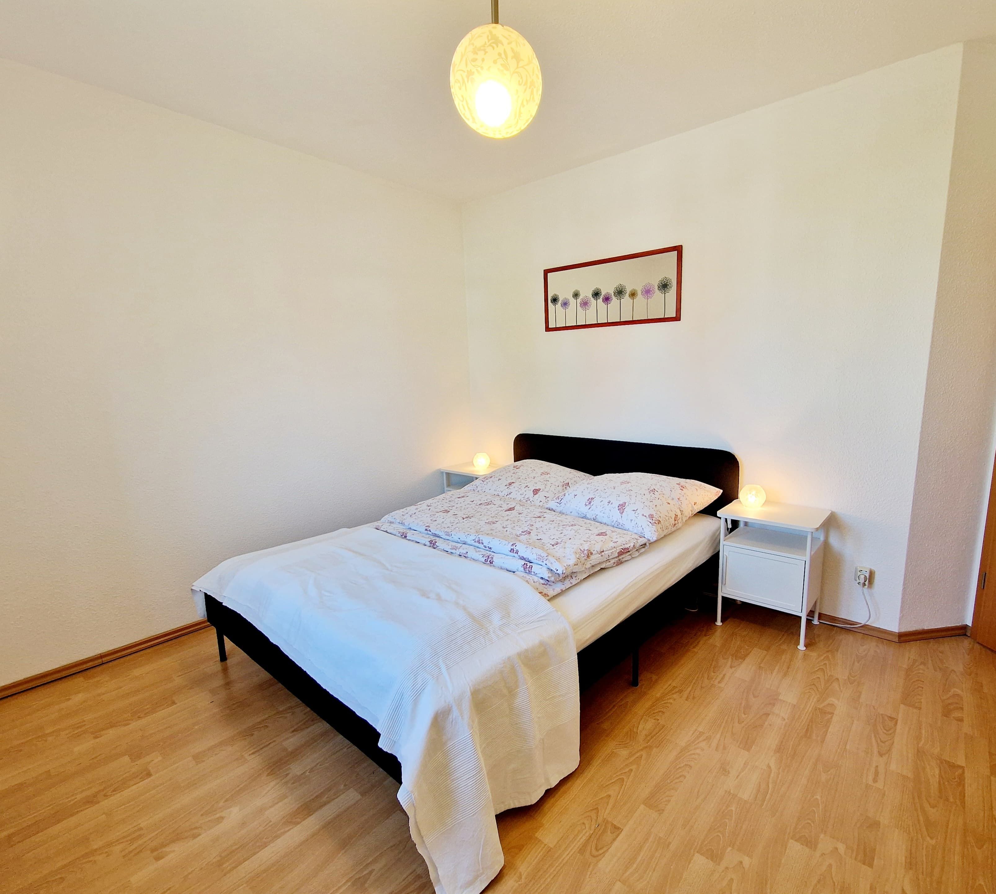 • Schlafzimmer: Doppelbett von 160x200 cm, Kleiderschrank, Nachttische