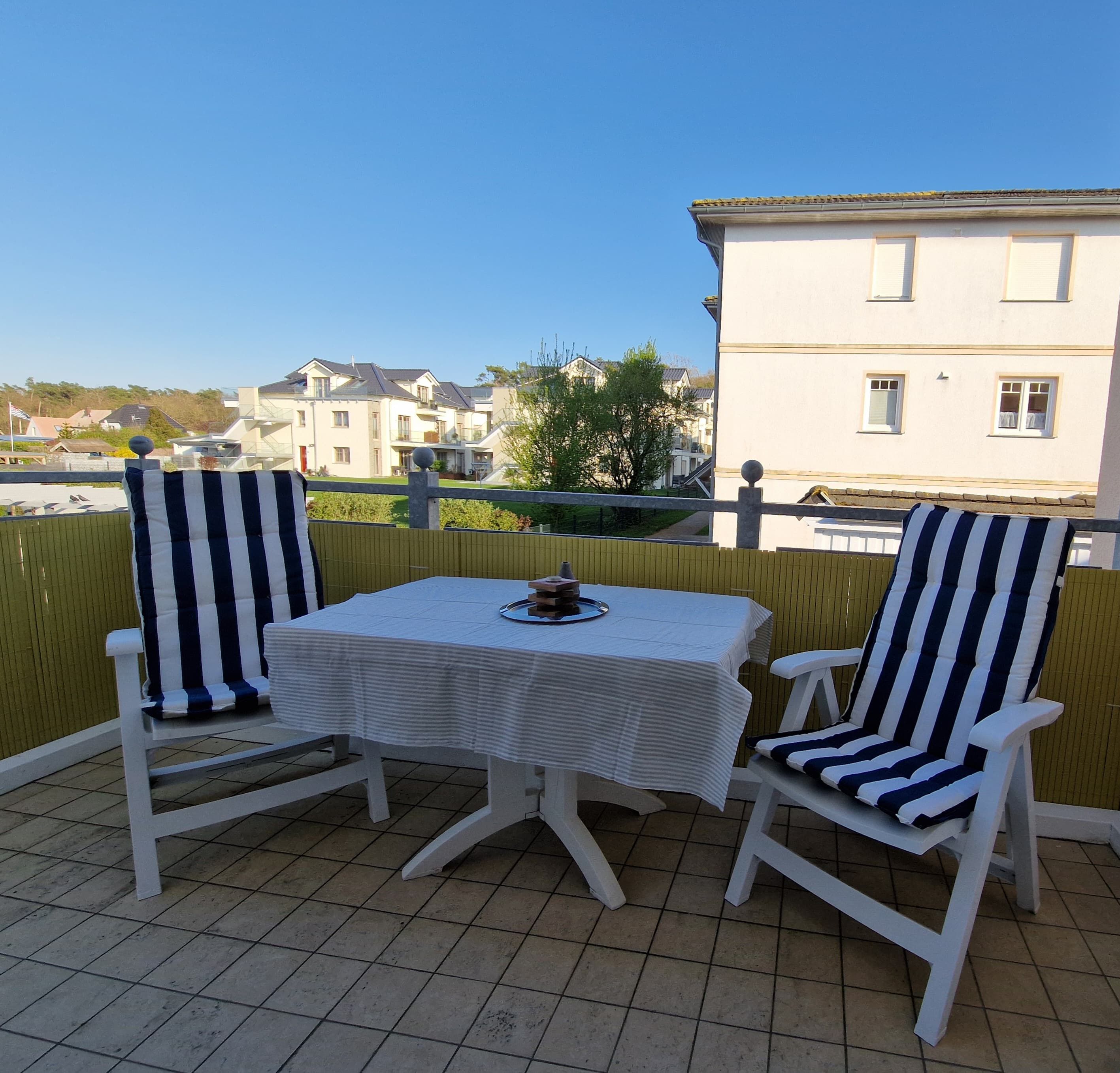 • Balkon: Südausrichtung mit Tisch, 4 Stühle mit Sitzauflagen, Sonnenschirm, Sonnenliege