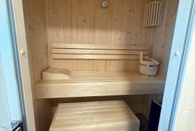 Im Bad steht eine integrierte Sauna zur Verfügung.
