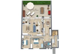 - zwei geräumige Schlafzimmer mit Boxspringbett (1,80m) und Doppelbett (1,60m)