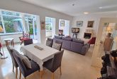 - offenes Wohnzimmer mit Kamin und Essbereich