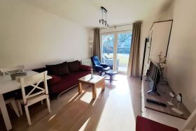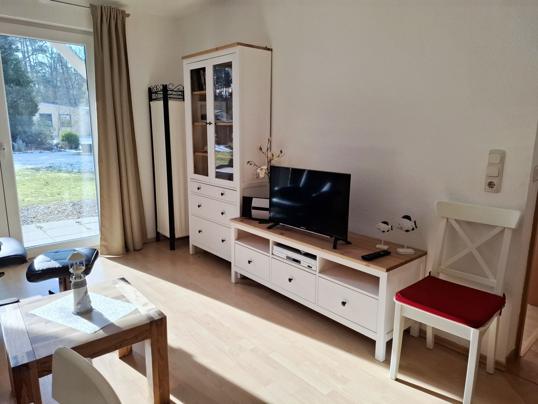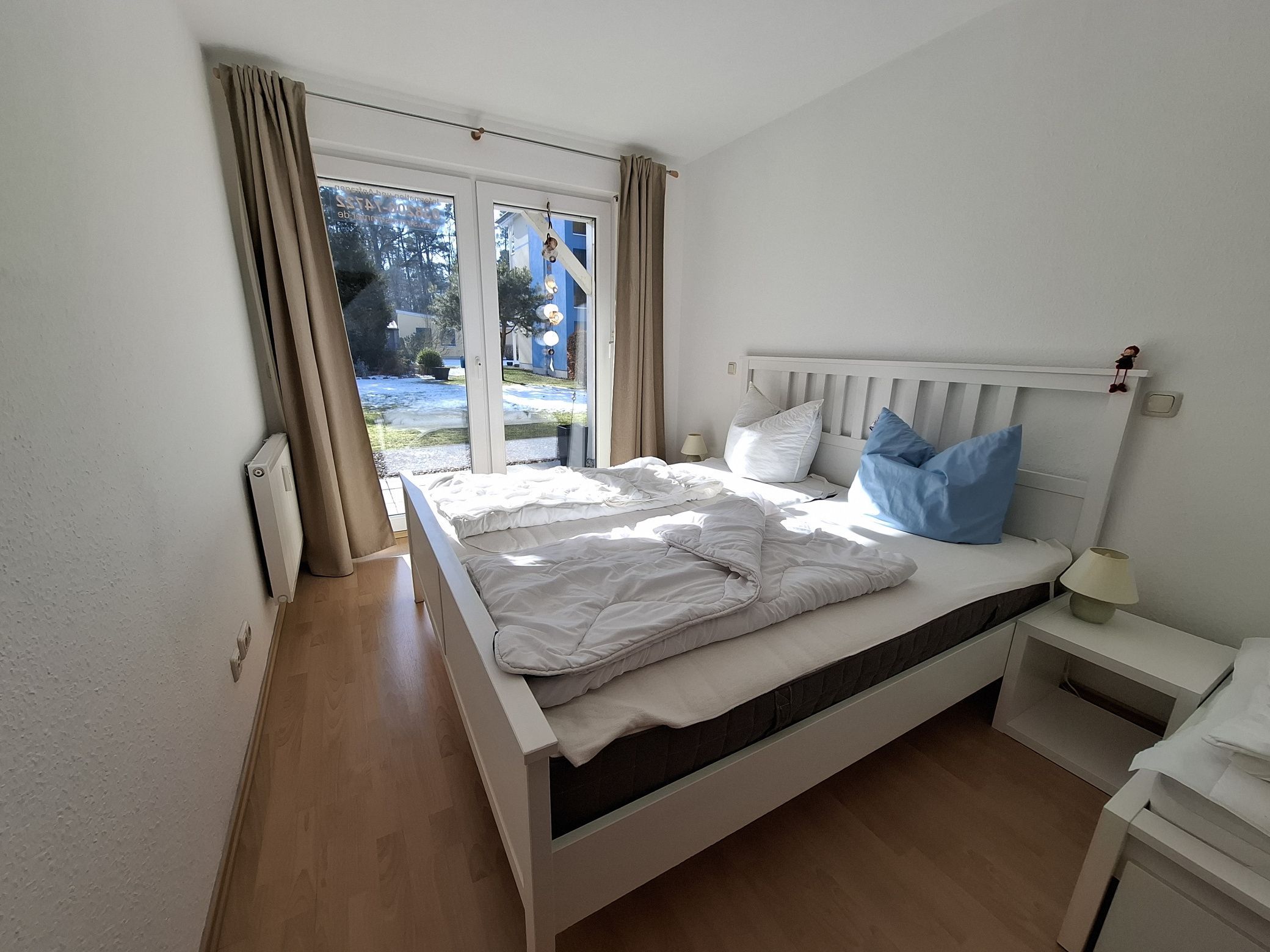 Diese 2-Zimmer-Erdgeschoss Wohnung im Haus Waldkauz lädt Sie zu einem Traum-Urlaub für bis zu 3 Personen ein. Im geräumigen Wohnzimmer befinden sich eine Couch und ein Fernseher. Die offene Küche verfügt über einen Kühlschrank mit Gefrierfach, einen Geschirrspüler, eine Mikrowelle, einen Backofen, ein Cerankochfeld (4 Platten), eine Kaffeemaschine und einen Wasserkocher. Im Schlafzimmer befinden sich ein Doppelbett mit 2 einzelnen Matratzen (je 90 cm x 200 cm), ein Einzelbett (90 cm x 200 cm) sowie ein Kleiderschrank. Im Bad befinden sich das WC, eine Waschmaschine und eine Dusche. Das Schmuckstück dieser schönen Unterkunft ist die große Sonnen-Terrasse, auf welcher Sie so manche sonnige Stunden verbringen können. Zudem können Sie eine Gemeinschafts-Münz-Sauna für noch mehr Entspannung und einen Grillplatz mit benutzen. Ihr Auto parken Sie direkt neben dem Haus.