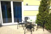 Die Terrasse ist für 4 Personen geeignet und hat einen schönen Blick ins Grüne.