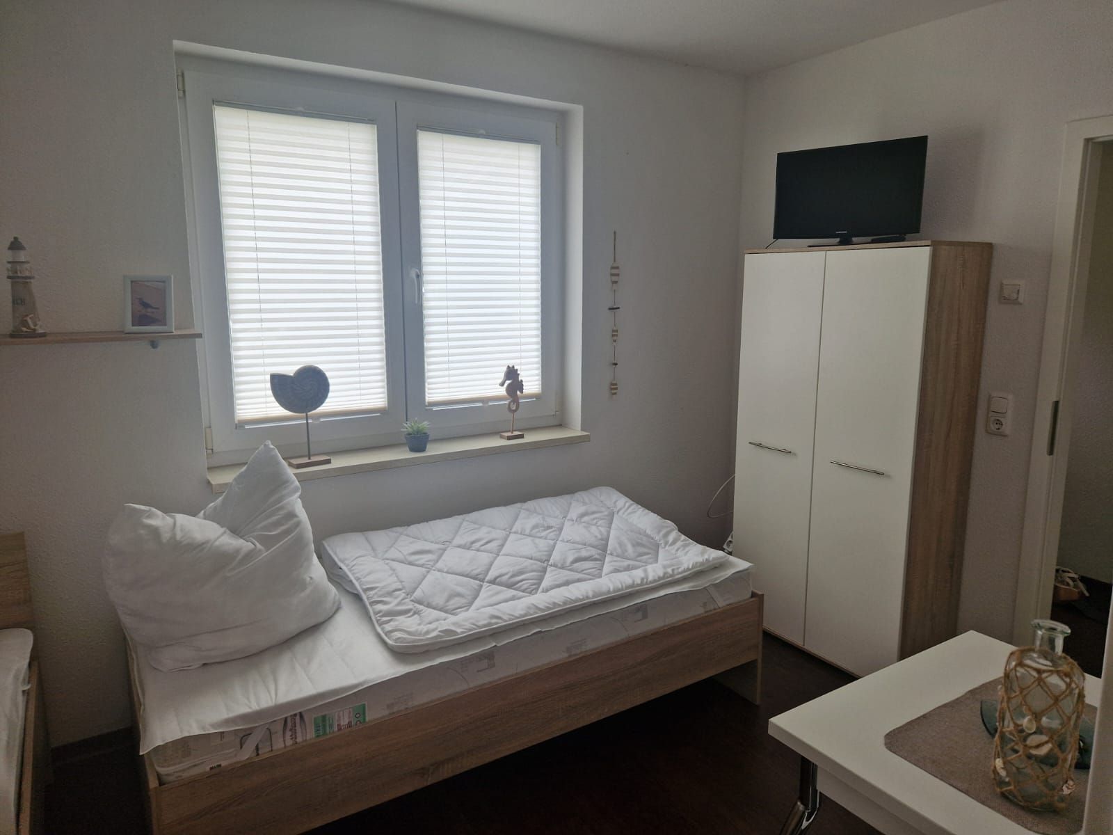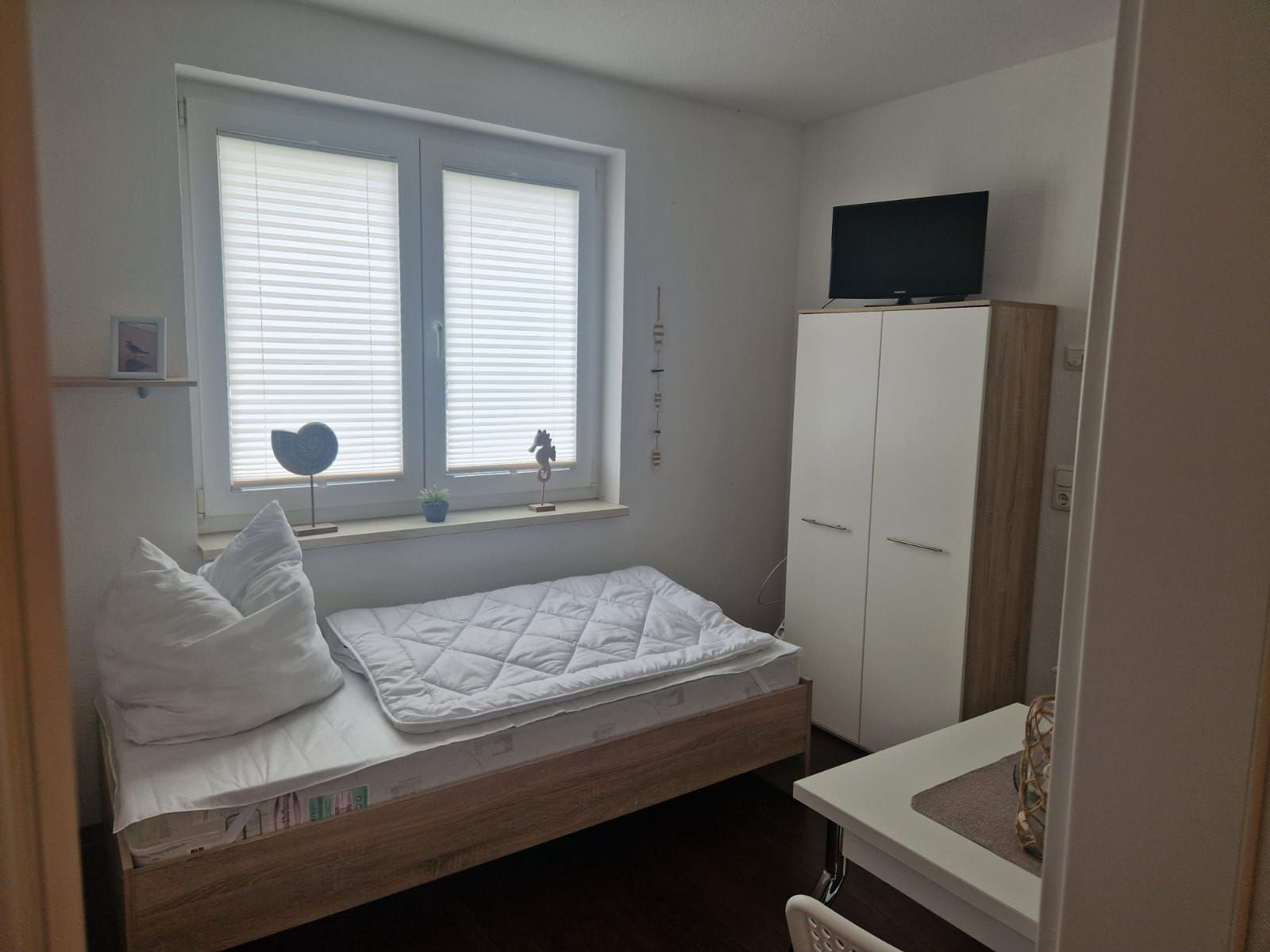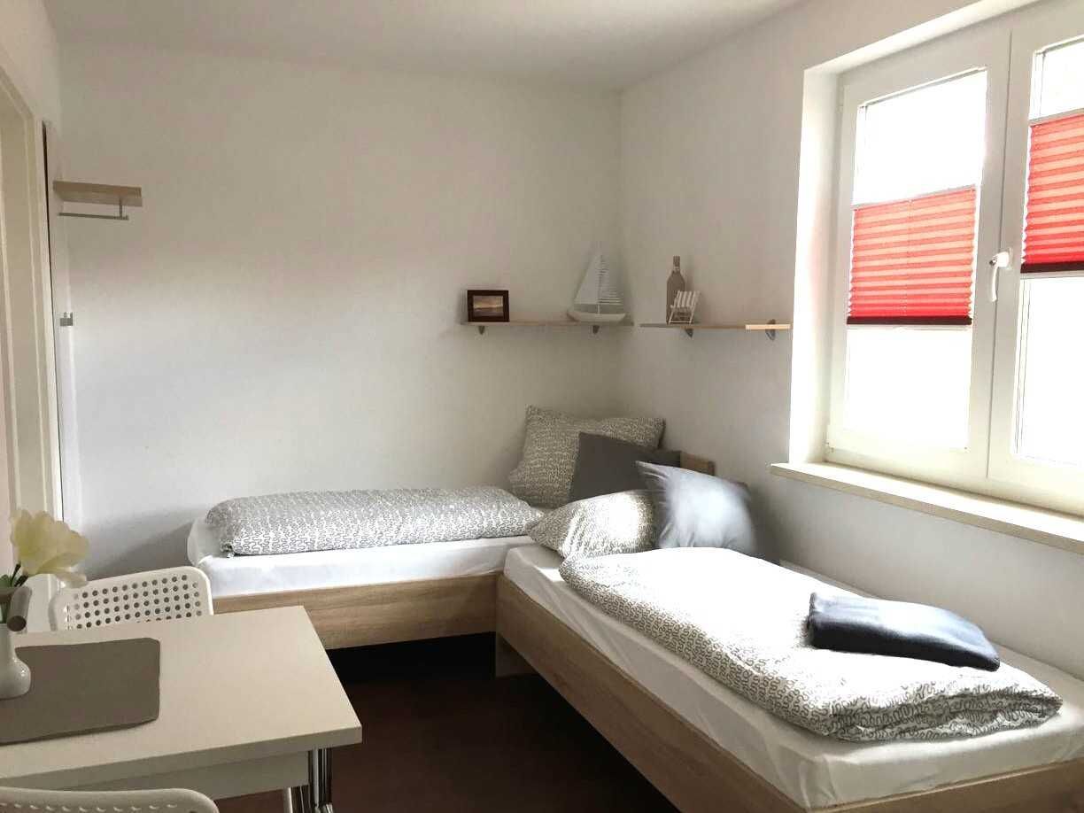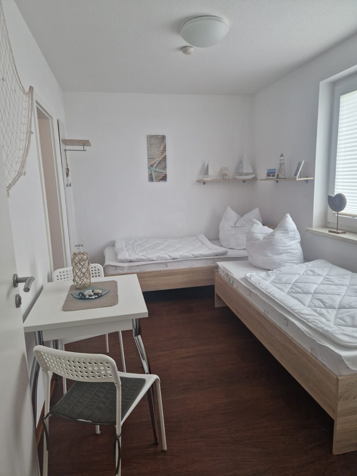 - Das kleinere Zimmer (ca. 15m²) verfügt ebenfalls über einen Fernseher und ist ausgestattet mit zwei Einzelbetten (90x200) von diesem Zimmer aus, erreichen Sie das zweite Badezimmer mit Fenster.