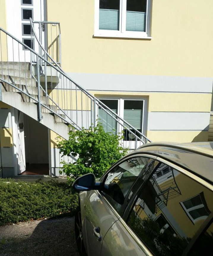 Der Parkplatz befindet sich unmittelbar vor dem Eingang der Zimmerkombination.