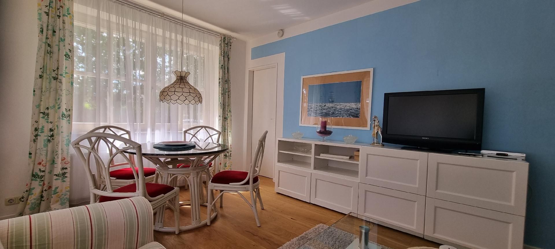 Details zur Wohneinheit: Dreizimmerwohnung W4 (ca 350 m. vom Meer entfernt), 2 Schlafzimmer,1 Wohnschlafzimmer mit Doppelschlafcouch Schlafmöglichkeiten für max.6 Personen, 1 Duschbad.Die Wohnung 4 liegt nach Südwesten im EG mit einer teilüberdachten, großen Terrasse mit Blick in den Garten, Spielwiese, Sandkasten, Schaukel, Obstbäumen und Ziersträuchern. Die Wohnung ist mit einem blau/rot gemustertem Teppichboden ausgelegt. Die Wände sind vorwiegend weiß angelegt.Vom Essplatz können Sie in den Garten schauen. Das Kinderzimmer ist mit 2 Einzelbetten ausgestattet. Im Schlafzimmer befindet sich ein 1,80 m breites Doppelbett. Das Wohnzimmer ist unter Anderem mit einer 1,60m breiten Doppelschlafcouch mör Kurort Kellenhusen, ein ehemaliger Fischerort,bietet Abwechslung und Entspannung in malerischer Lage. Er liegt in einer leichten Bucht. An den feinen Sandstrand schließt sich das Hinterland mit Feldern, Wildrosen, und dem Kellenhusener Forst an. Dort bietet der Mischwald mit, vorherrschend Eichen- und Buchenbestand (1000-jährige Kroneiche), dem Lehrpfad, Rad -und Wanderwegen vielfältige Möglichkeiten. Auf der neuen, sandfarbenen Promenade lässt es sich entspannt bummeln, mit Blick aufs Meer. Sie garantiert gute Laune mit ihren Erlebniszonen (Wasserspielen, dem 'Aussichtsdampfer', den Grill -und Kinderspielmöglichkeiten... und den malerischen Pflanzeninseln. In gepflegten kleinen Restaurants, Cafes und Geschäften direkt am Strand, können Sie sich verwöhnen lassen oder auch ein wenig shoppen. Auf der neuen Seebrücke mit ihren 3 Erlebnisinseln können Sie sich vergnügen, 300 m ins Meer wandern und am Ende mit einem Ausflugsdampfer in See stechen.KurzbeschreibungSonstiges : NichtraucherhausGarten und AussenanlagenGartenausstattung : Grill
