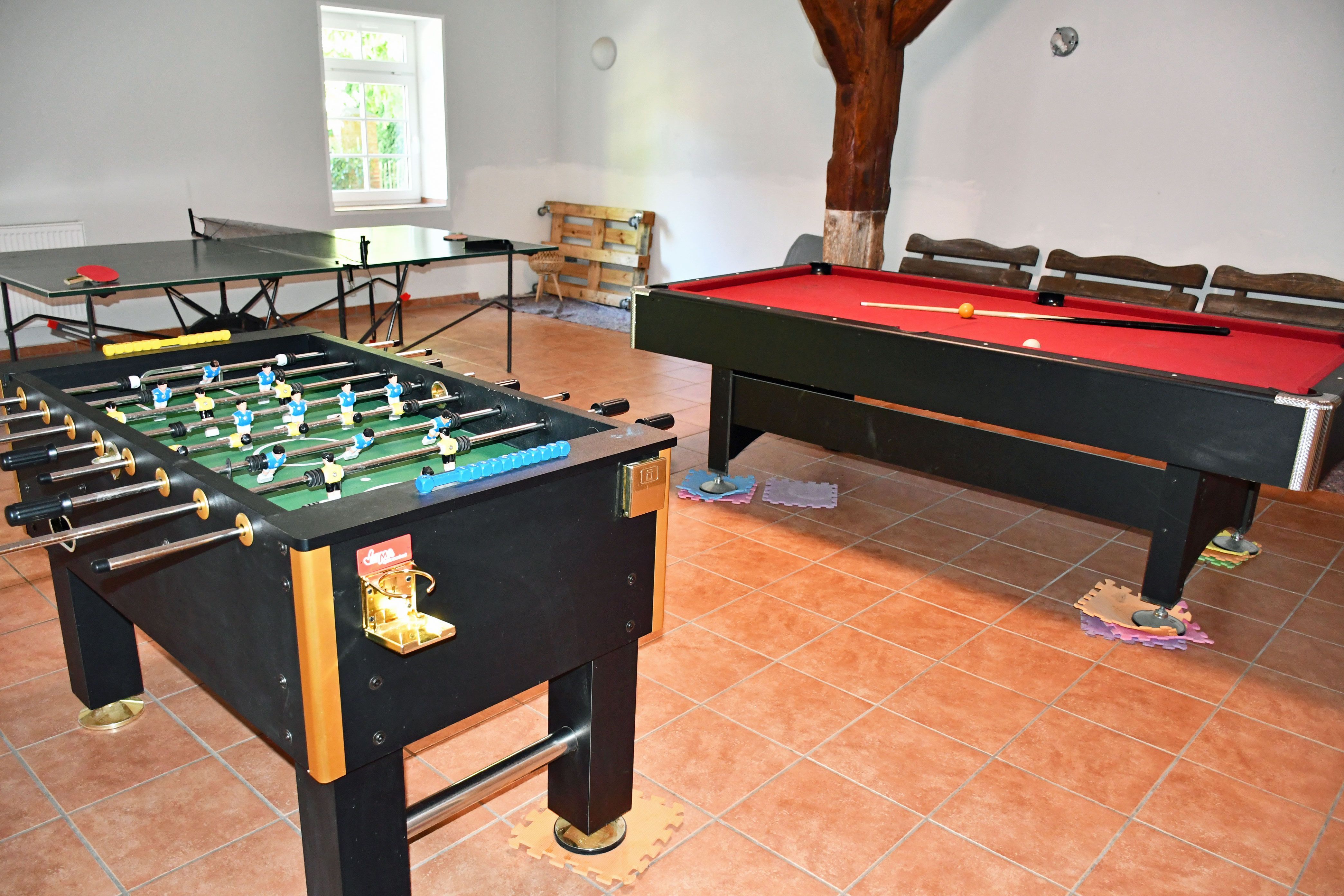 Der riesige Garten mit Klettergerüst und Grillplatz darf selbstverständlich auch mitgenutzt werden. Der große Aufenthaltsraum mit Billard, Tischtennis, Kicker und Kinderecke lädt zum Spielen und Verweilen ein. An der Unterkunft liegen genügend PKW-Stellplätze.