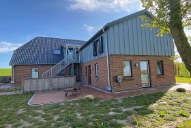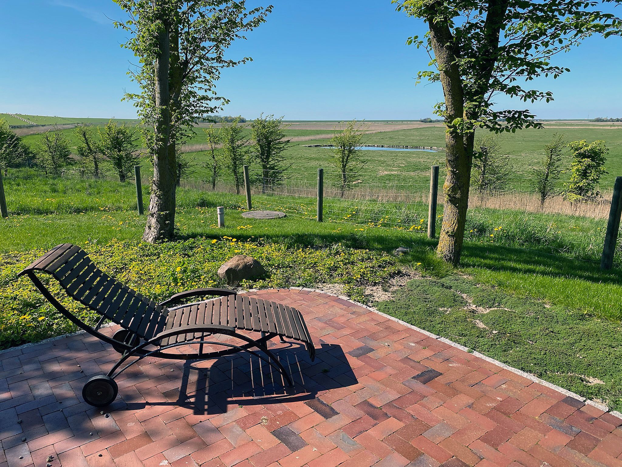 Die drei Terrassen, verteilt in drei Himmelsrichtungen, eine davon voll möbliert, runden diese wunderschöne Wohnung ab - bieten sie doch freien Blick auf die Marschen- und Tierwelt der (Halb-) Insel Nordstrand.