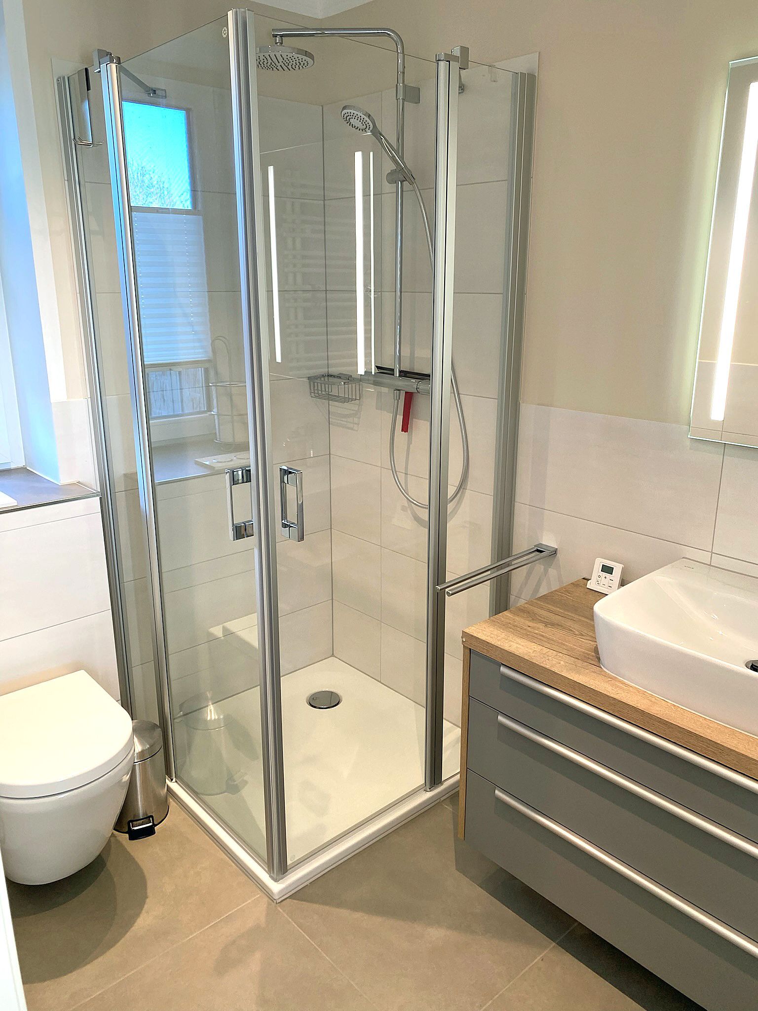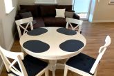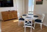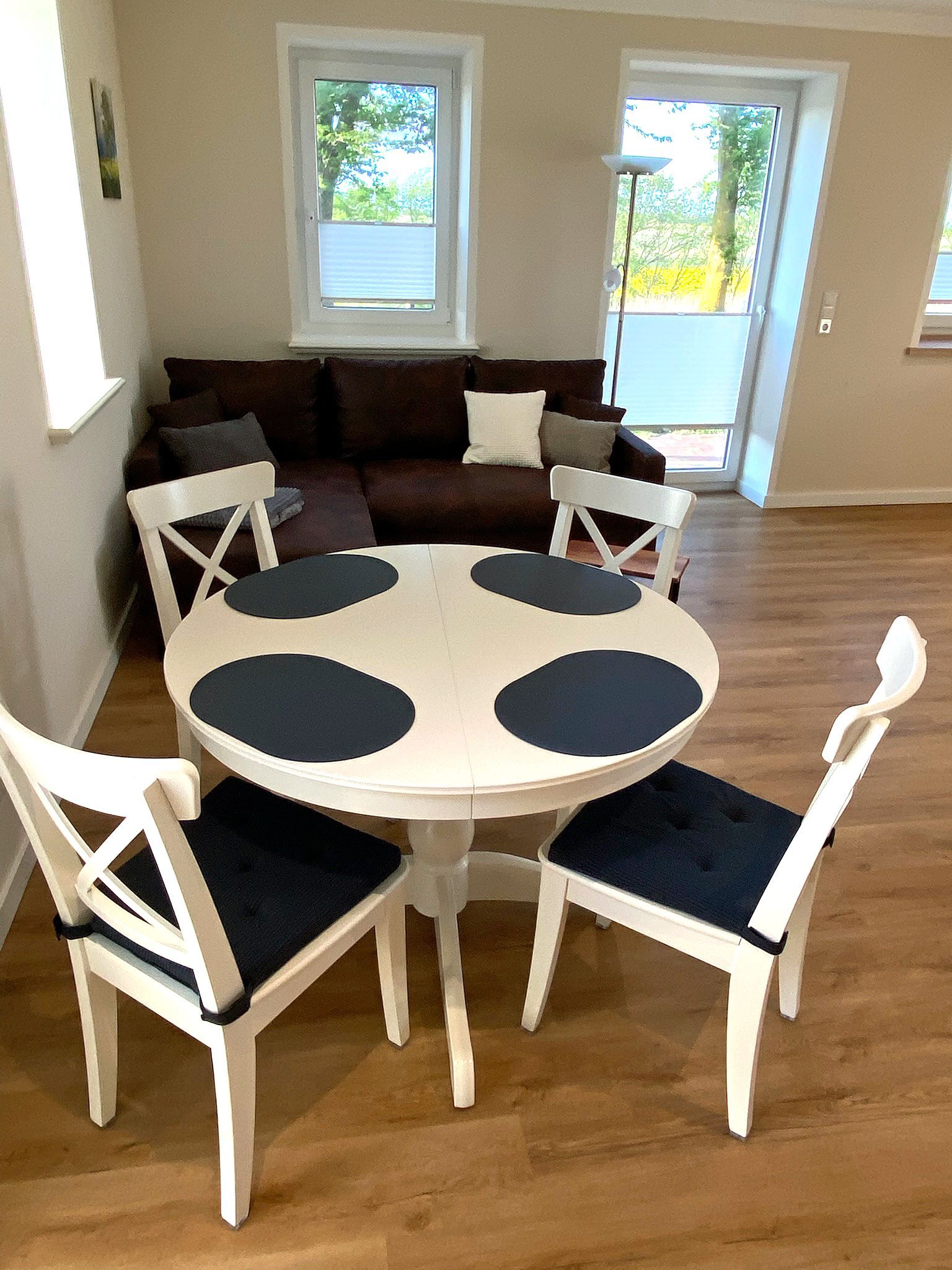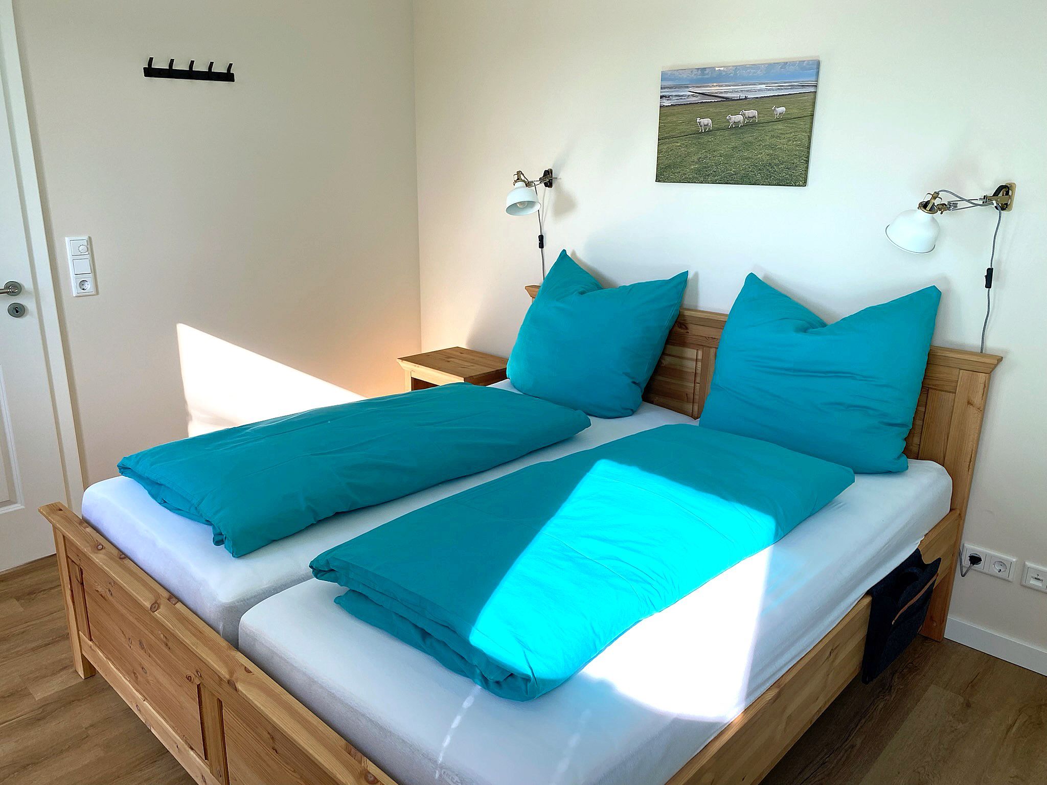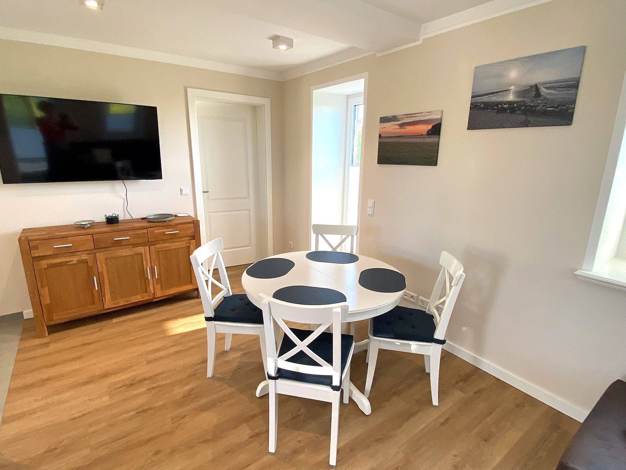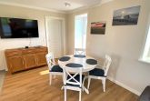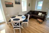 Ebenerdig gelegen besteht die Wohnung aus einem Schlafzimmer mit Doppelbett (180cm x 200cm) und einer voll ausgestatteten, hochwertigen Wohnküche, inkl. Geschirrspüler und Waschmaschine, Esstisch, Schlafcouch und Smart-TV. Das moderne Bad bietet eine Dusche mit niedrigem Einstieg.