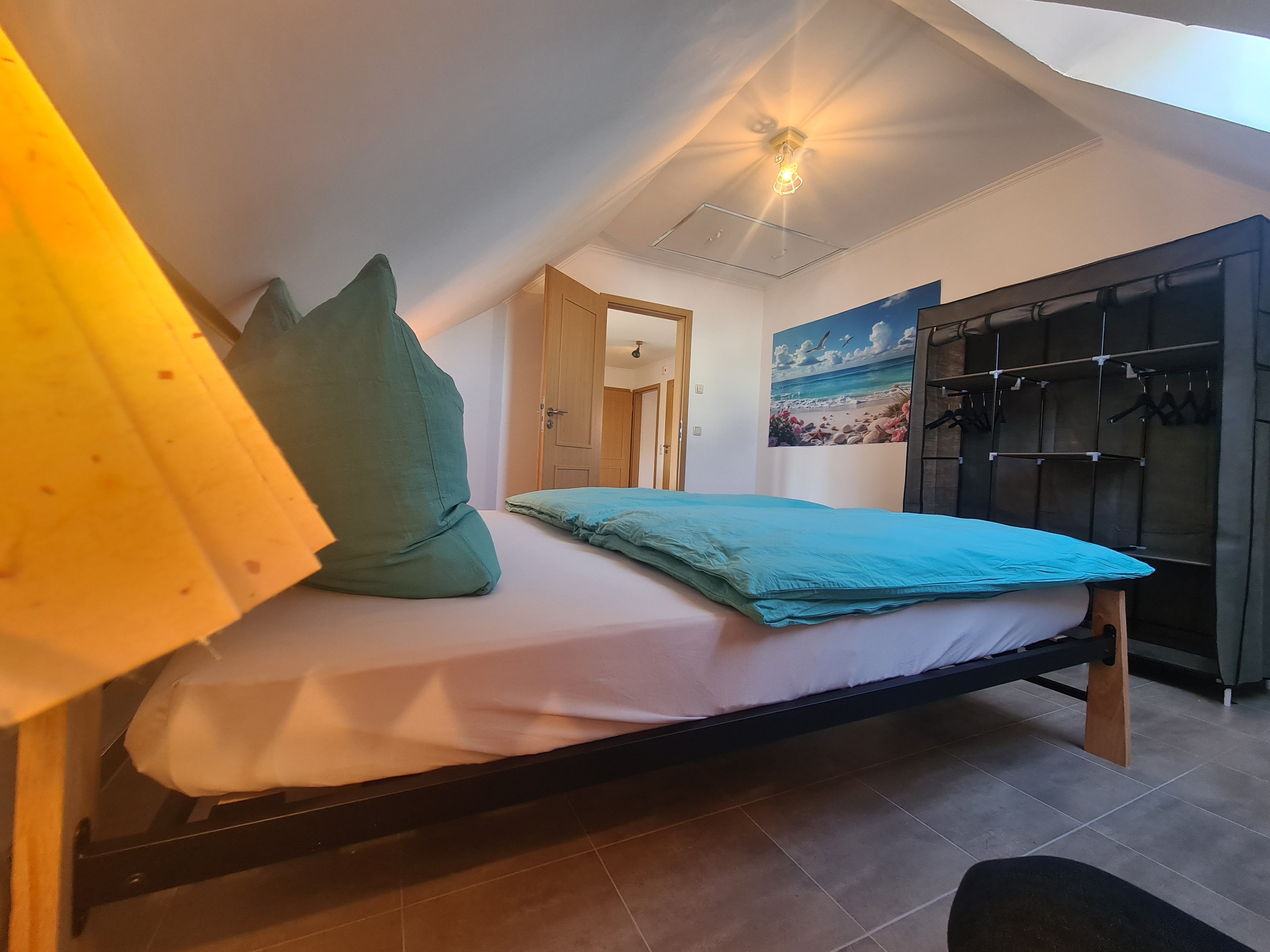 Schlafraum 1: Doppelbett (1.80x2m), Babybett stellbar