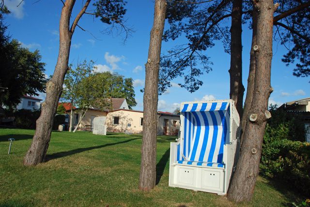 Zu jeder Ferienwohnung gehört eine schöne Terrasse mit Gartenmöbeln und Grill, im Garten gibt es eine Liegewiese mit Strandkörben.