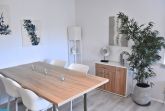 • 1 Wohnzimmer mit Esstisch, grossem Sofa, Schaukelstuhl, Sidebord und TV
