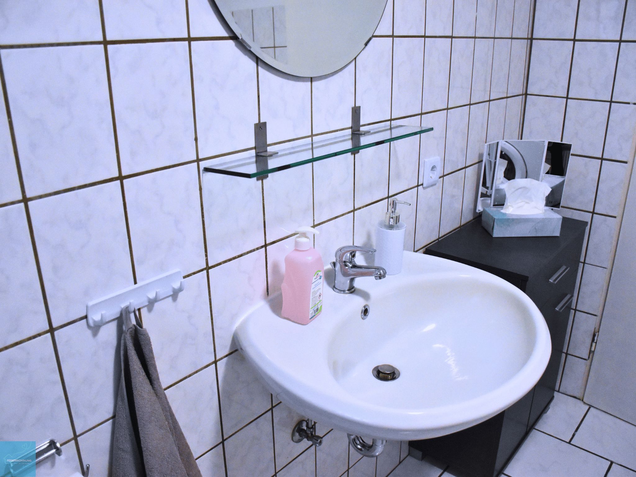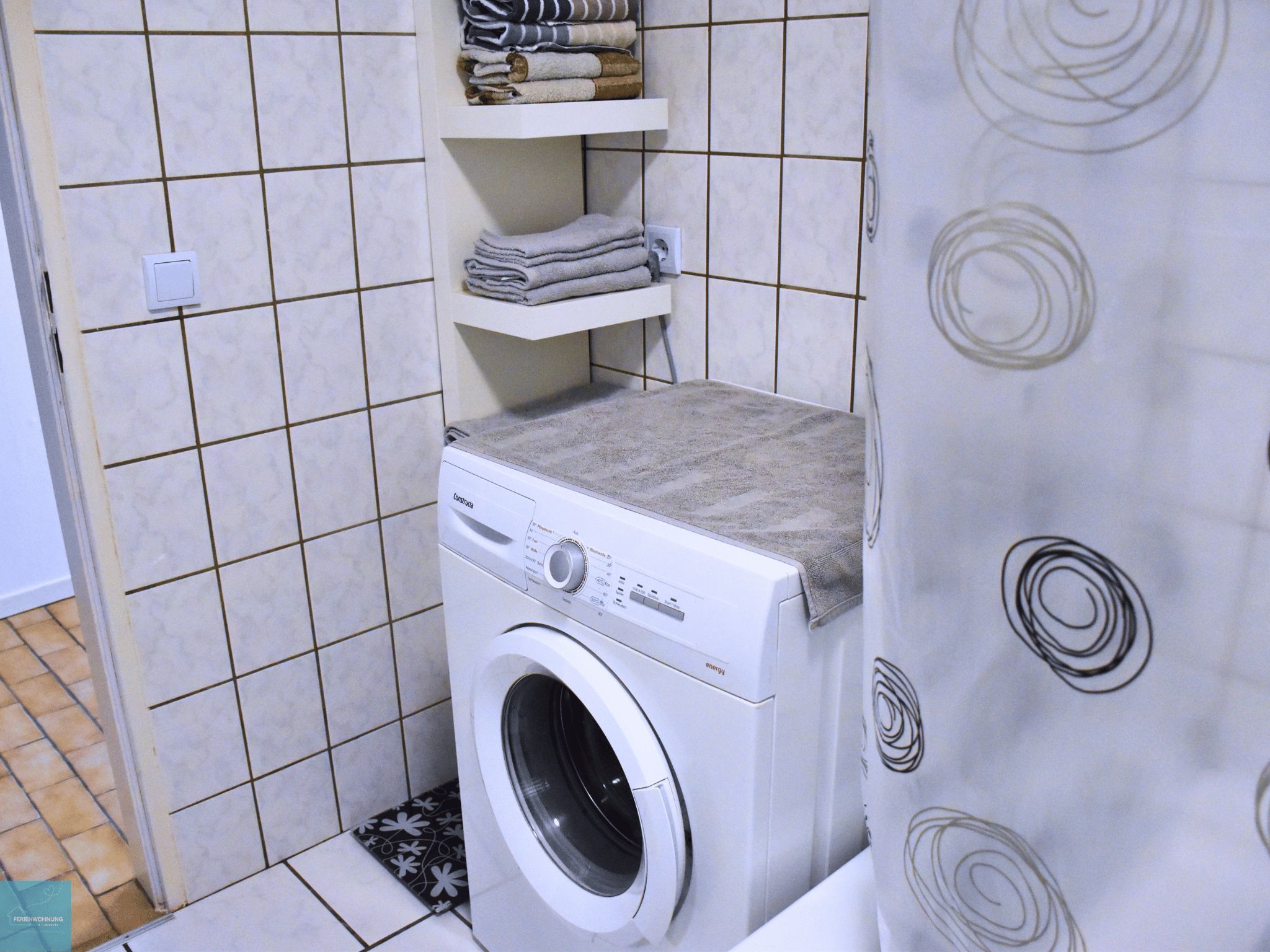 • 1 Badezimmer mit Badewanne, Dusche, WC und Waschmaschine