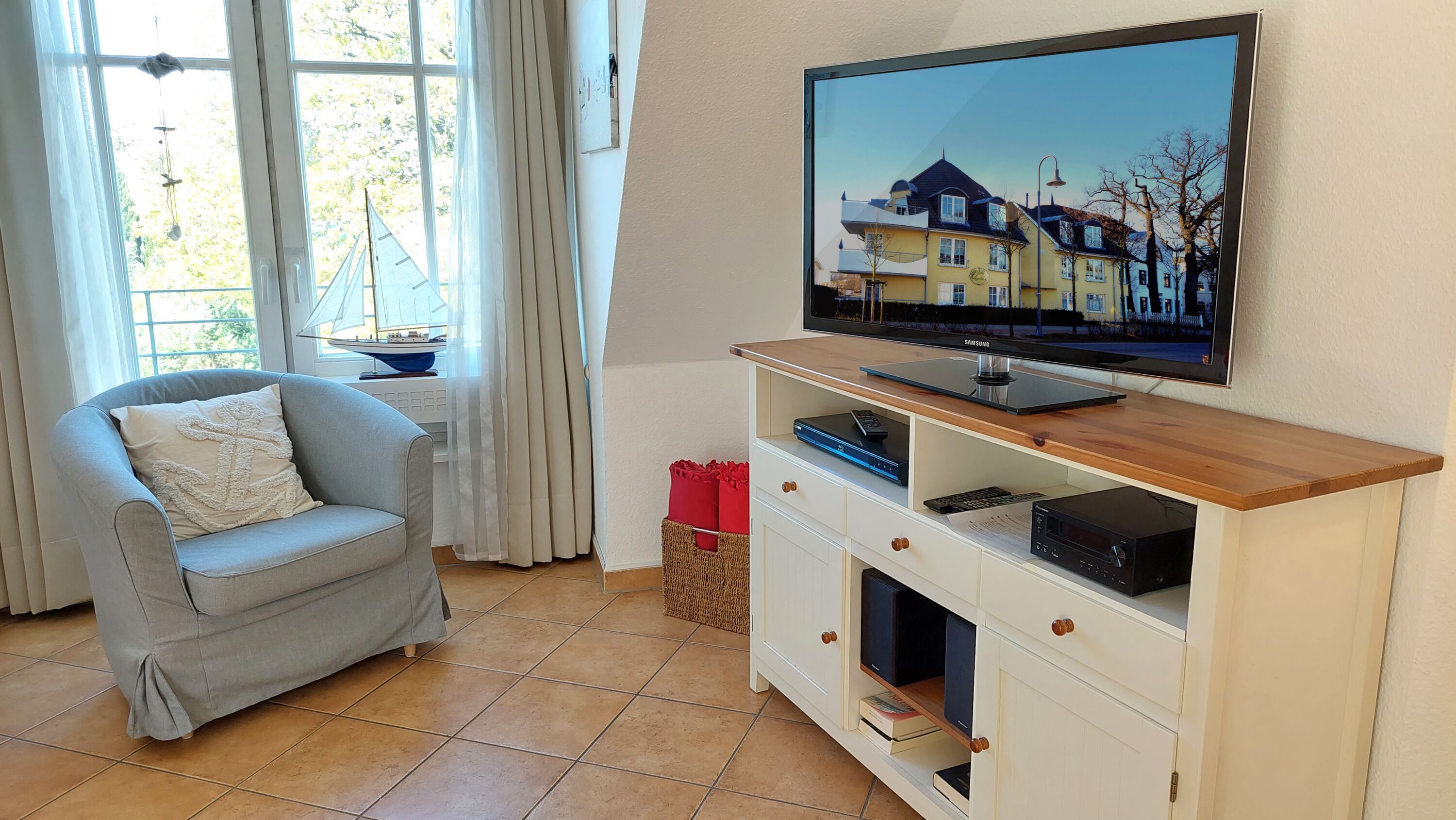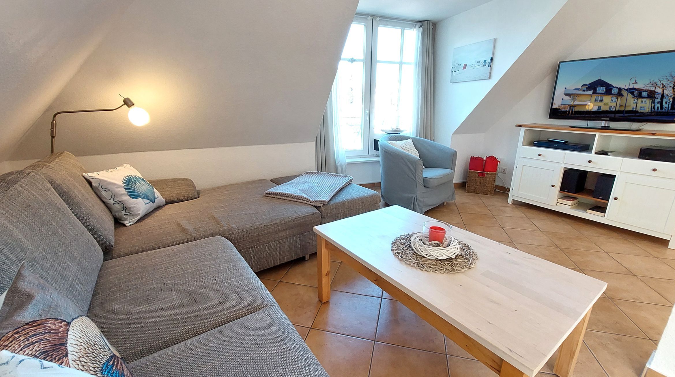 Die gemütliche Sitzlandschaft bietet bei Bedarf auch eine Schlaffunktion für zwei weitere Personen. Zudem garantieren Smart-TV (samt stabilem WLAN), Blu-Ray-Player und Musikanlage gute Unterhaltung für jeder Wetterlage.