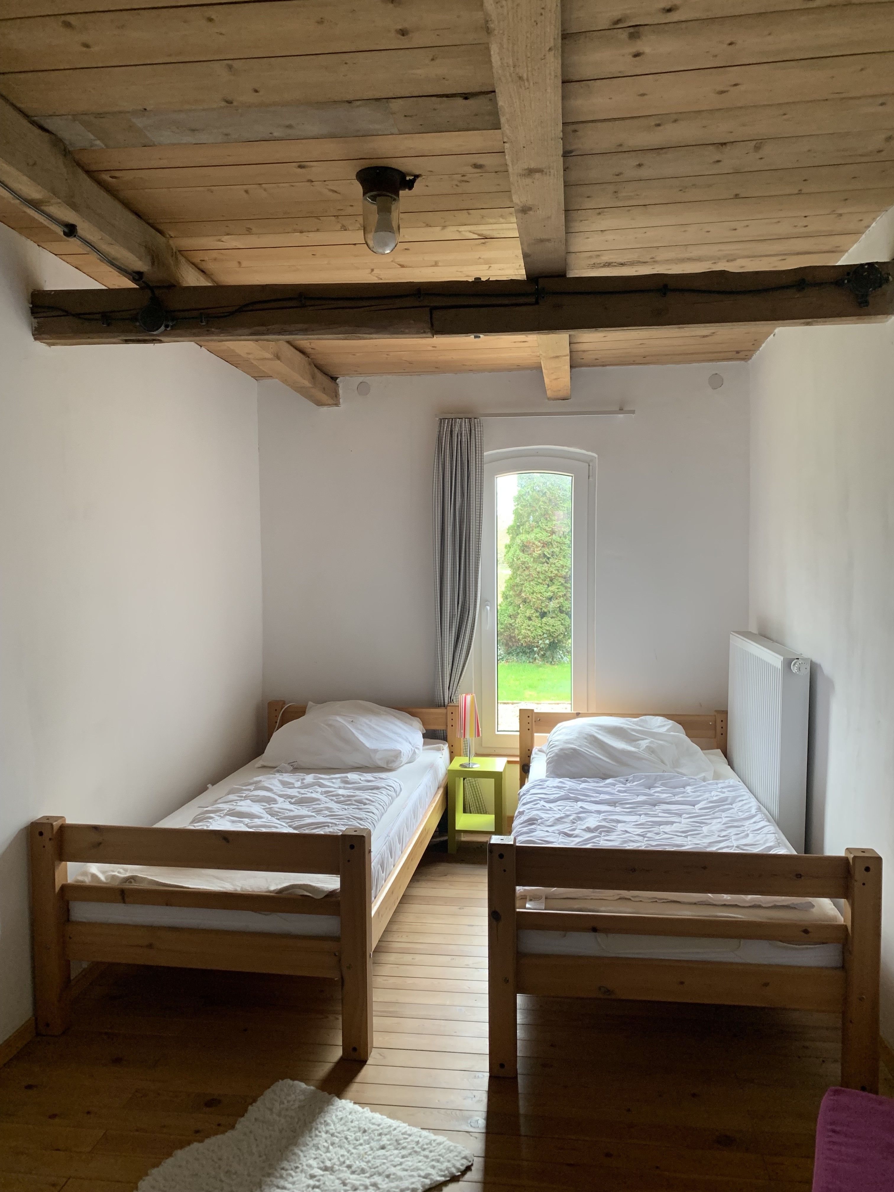 Die Ferienwohnung Tichelmeister bietet Ihnen zwei Schlafzimmer: eines mit Doppelbett (1,80 m x 2,00 m) und eines mit zwei Einzelbetten (je 0,90 m x 2,00 m). Von der separaten Küche haben Sie Zugang zum Wohnzimmer sowie zum Esszimmer. Vom Esszimmer aus gelangen Sie außerdem auf die Terrasse und in den Garten. Die Badewanne im Bad bietet eine weitere Möglichkeit zur Entspannung (sie ist aber auch als Duschwanne zu nutzen). Darüber hinaus steht ein Gäste-WC zur Verfügung.