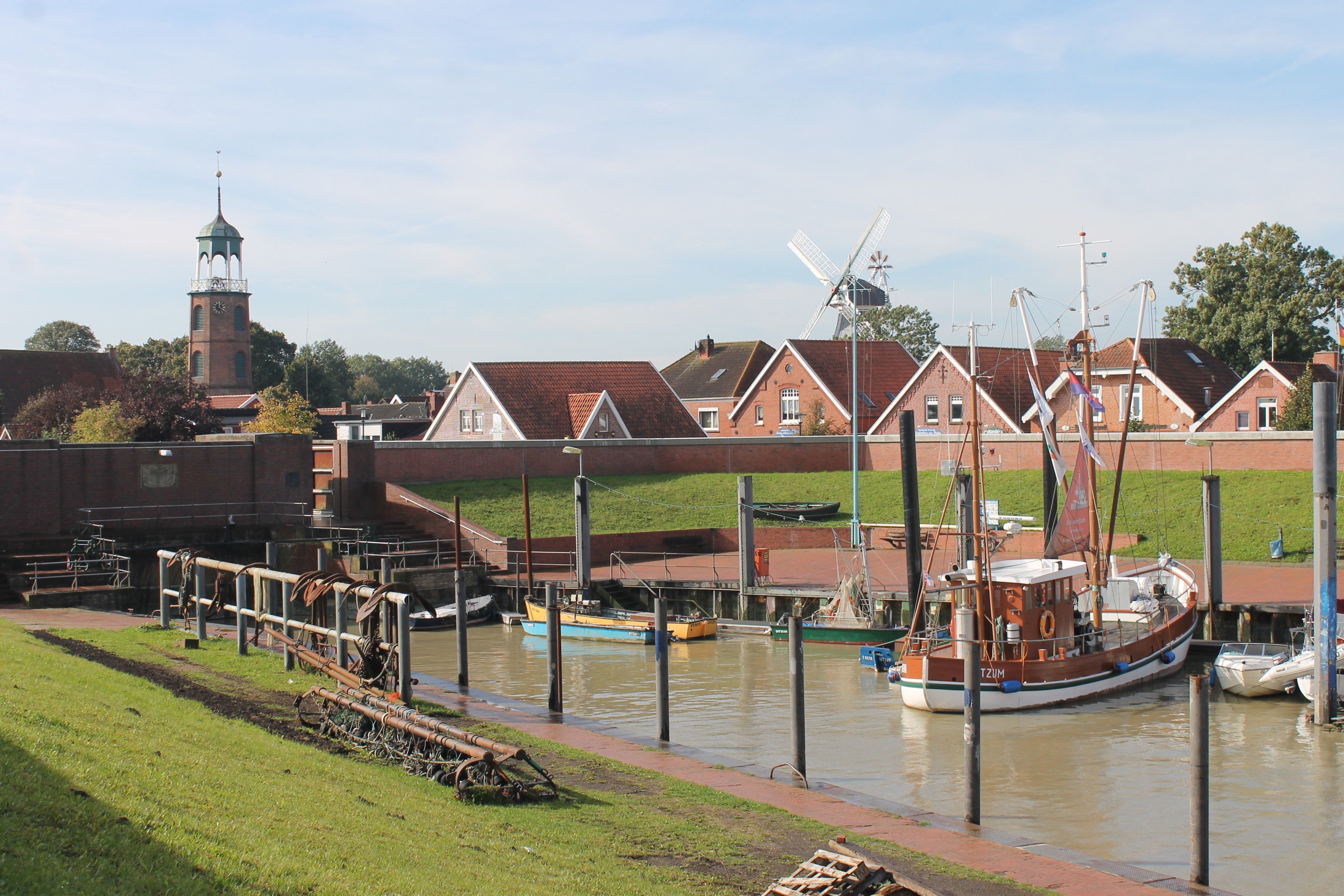 Die Wohnung liegt in Ditzum, 5 Minuten Fußweg zum Ortskern mit Restaurants und Cafés und dem Fischerhafen.