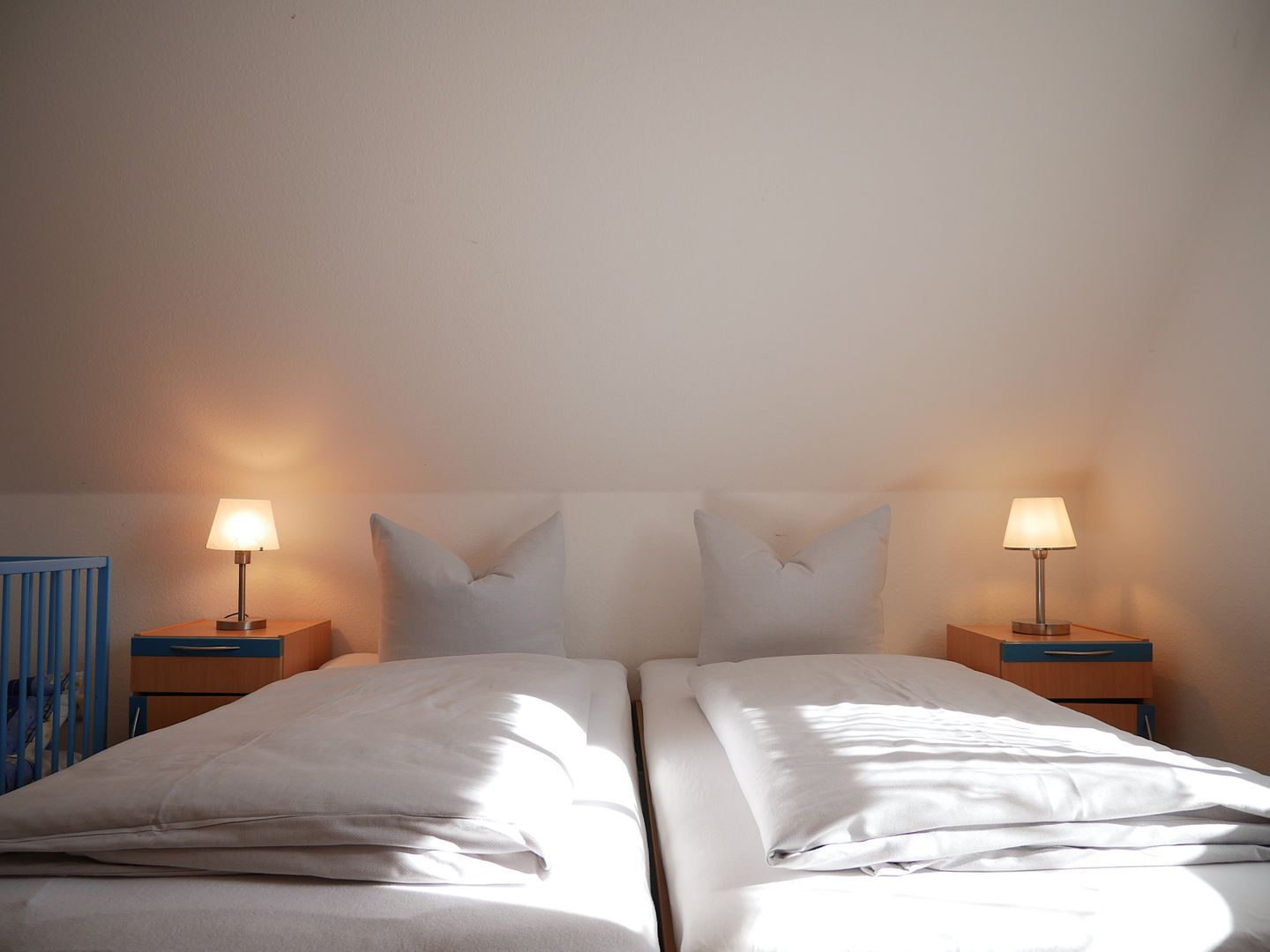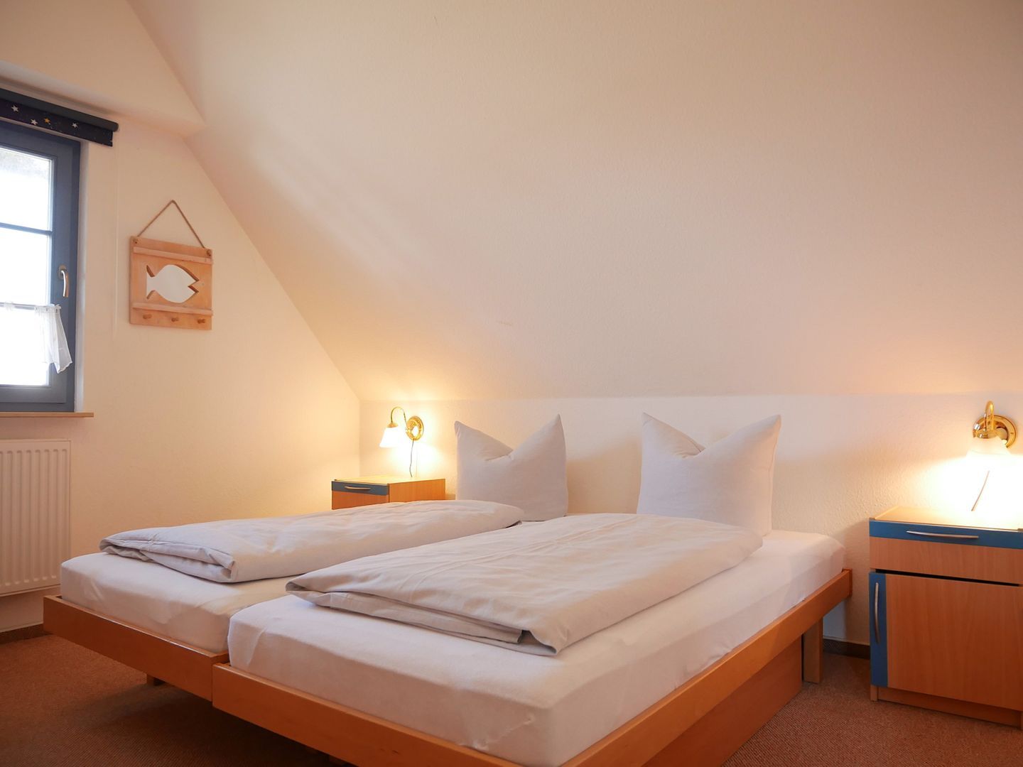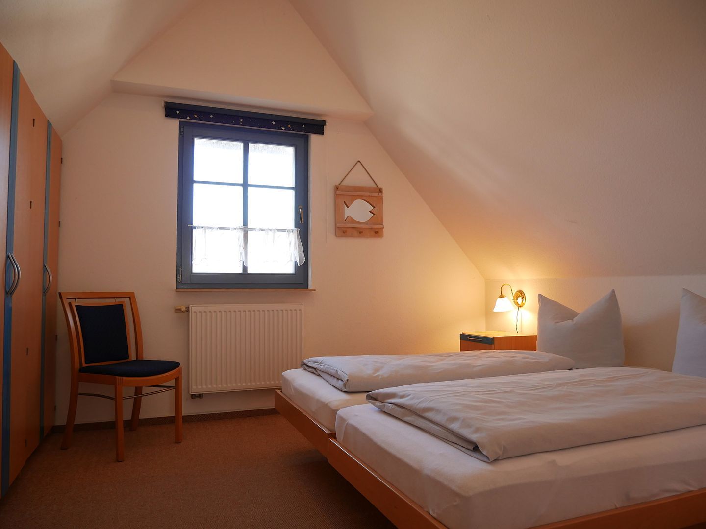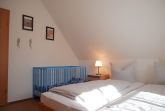 Über eine Treppe gelangen Sie in das Obergeschoss des Hauses. Hier befinden sich zwei separate Schlafzimmer, die jeweils über ein Doppelbett und einen großzügigen Kleiderschrank verfügen. Zwei weitere Personen finden auf der Couch im Wohnzimmer, die zu einem Schlafsofa umfunktioniert werden kann, bequeme Schlafplätze.