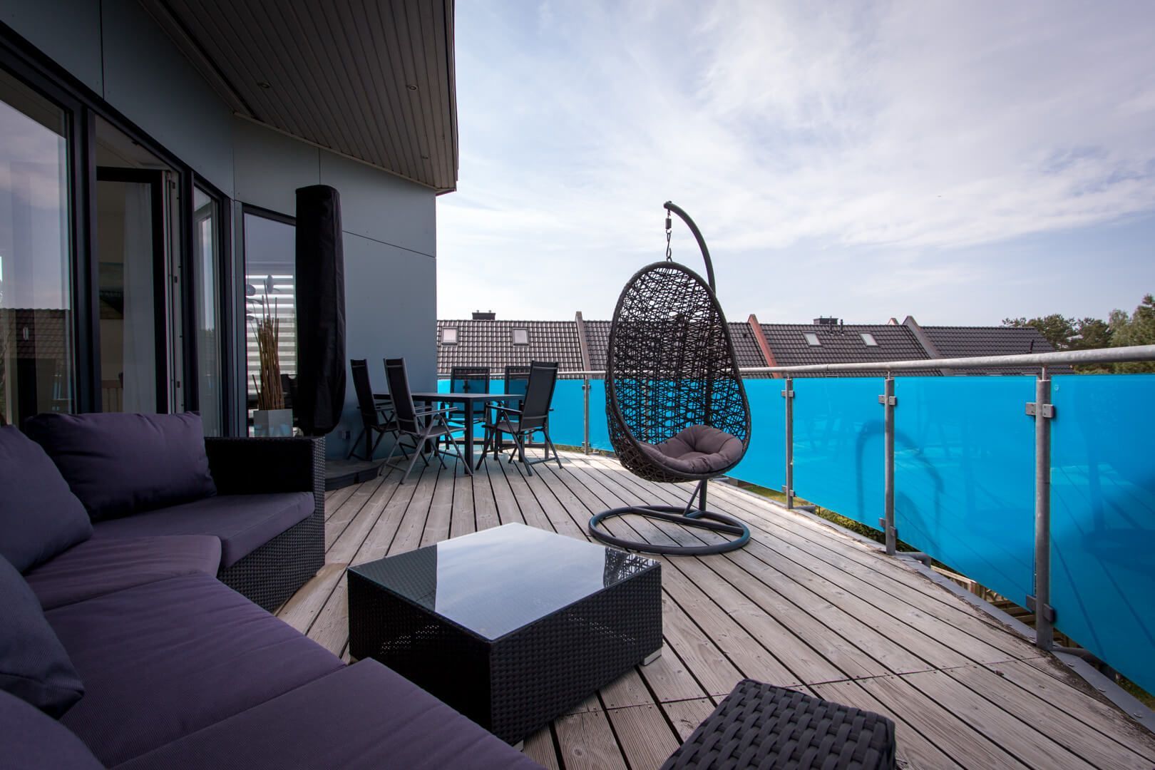 Die Balkone des Wasserturms bieten Ihnen die Möglichkeit, die Sonne zu jeder Tageszeit zu genießen. Sie können im Hängekorb schaukeln und den Blick auf den Wald genießen oder sich entspannt zurücklehnen und den Blick über die Wiese schweifen lassen. Im Herbst und Winter sorgt der Kamin für gemütliche Stunden und im Sommer können Sie auf den Balkonen lauschige Grillabende verbringen. Für noch mehr Entspannung steht Ihnen im Erdgeschoss eine Sauna zur Verfügung. Im Garten finden Sie eine überdachte Sitzecke und eine große Liegewiese, auf der Sie Ballspiele oder Federball spielen können.