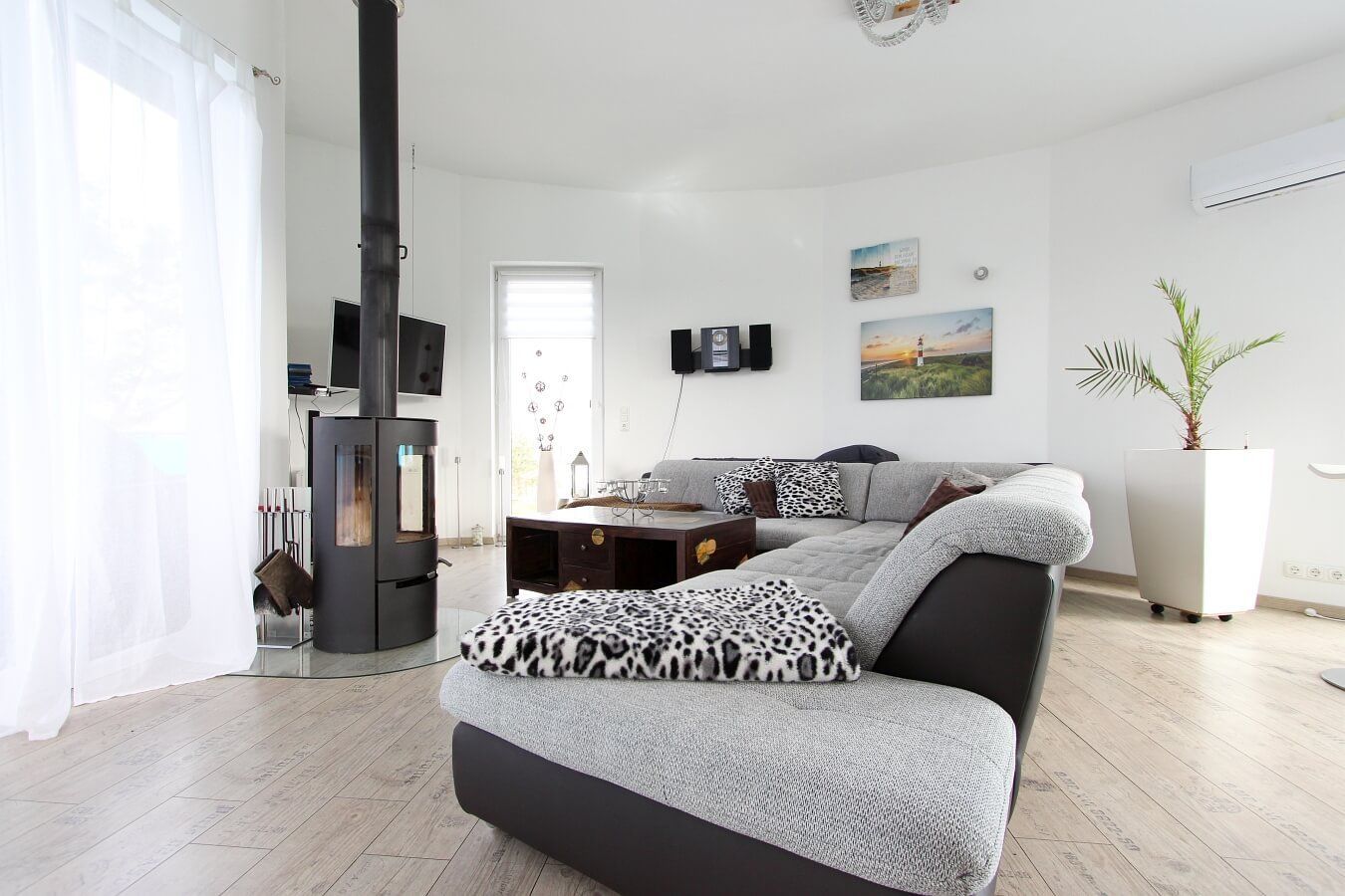 Beim Betreten des Ferienhauses werden Sie von einem einzigartigen Ambiente umgeben sein. Die Bauherren mussten sich in der Gestaltung einiges einfallen lassen, da ein Turm bekanntermaßen keine Ecken hat. Trotz dieser Herausforderungen wurde der Wasserturm zu einem wunderschönen Ferienhaus umgebaut. Das Haus bietet Platz für bis zu fünf Personen. Zwei super bequeme Doppelbetten und eine gemütliche Schlafcouch sorgen dafür, dass Sie hier gut schlafen werden. Die Schlafzimmer und das Badezimmer befinden sich im Erdgeschoss, was das Ferienhaus auch für Senioren perfekt geeignet macht. Über eine Treppe gelangen Sie ins Obergeschoss, wo ein wunderschöner Wohn-Essbereich mit Küchenecke auf Sie wartet. Die großen Fensterfronten lassen viel Tageslicht in den Gemeinschaftsraum und bieten einen atemberaubenden Blick auf die Umgebung.