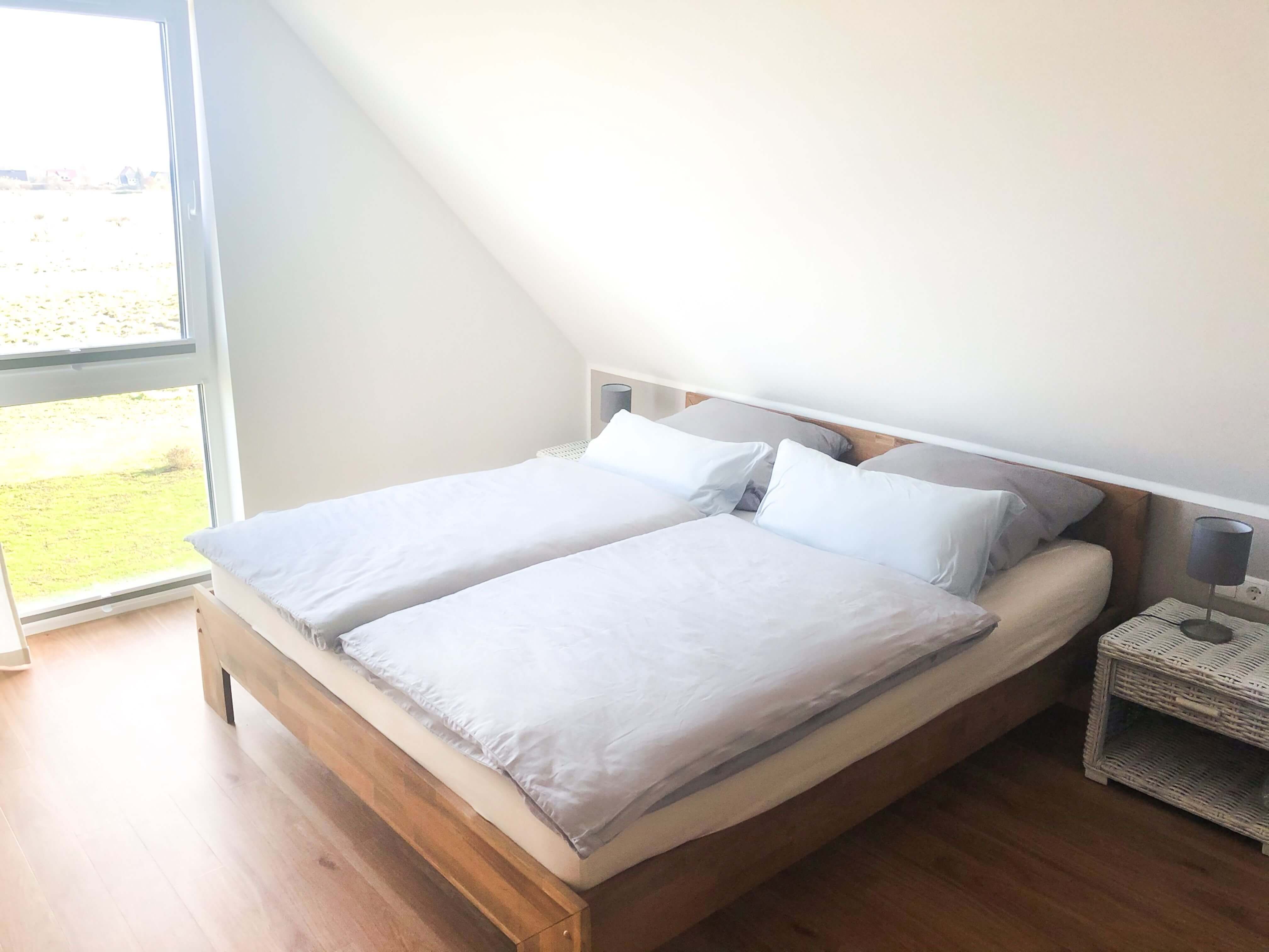 Die beiden Schlafzimmer sind mit großzügigen Doppelbetten (180x200 cm) ausgestattet, die für erholsame Nächte sorgen. Ein geräumiger Kleiderschrank bietet ausreichend Platz für Ihre Garderobe. Auch hier sorgen Fußbodenheizung und Fliegengitter für Komfort.