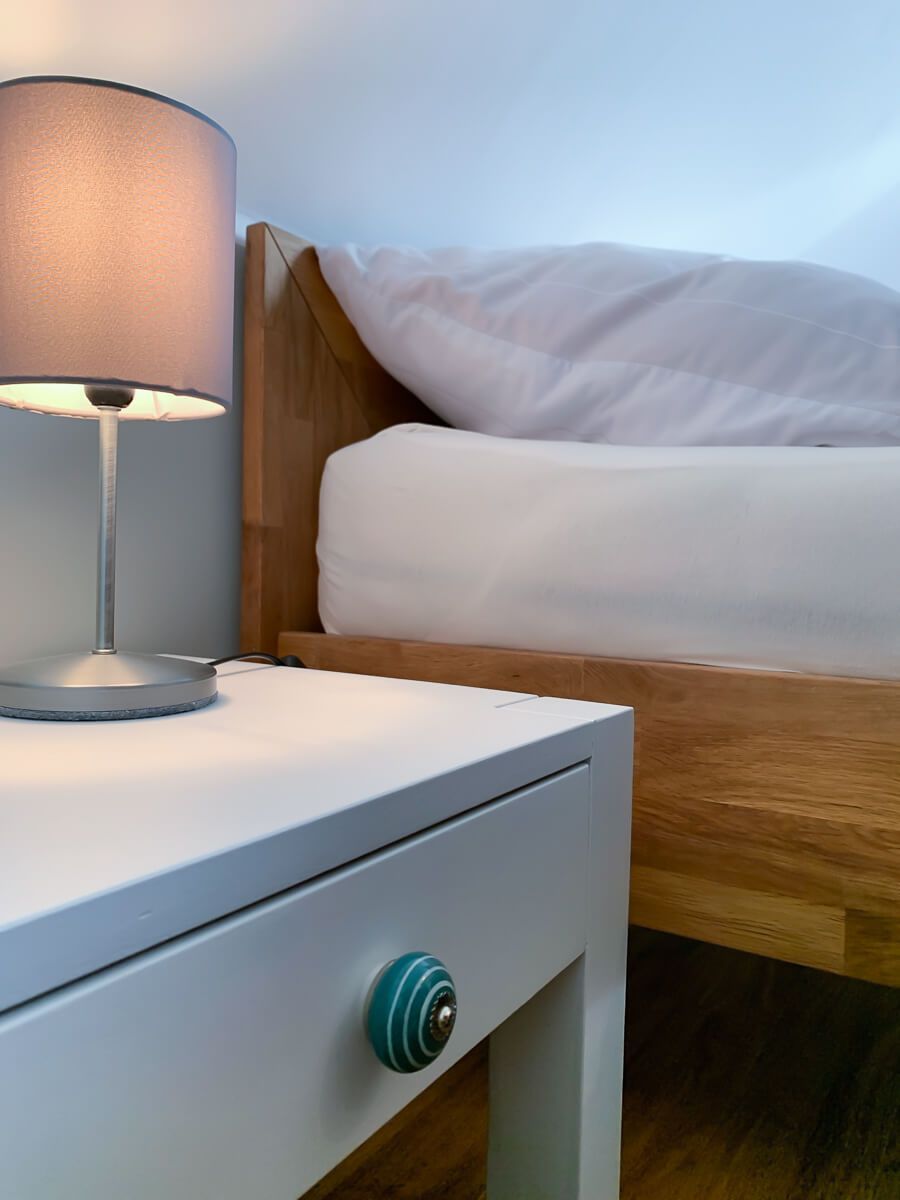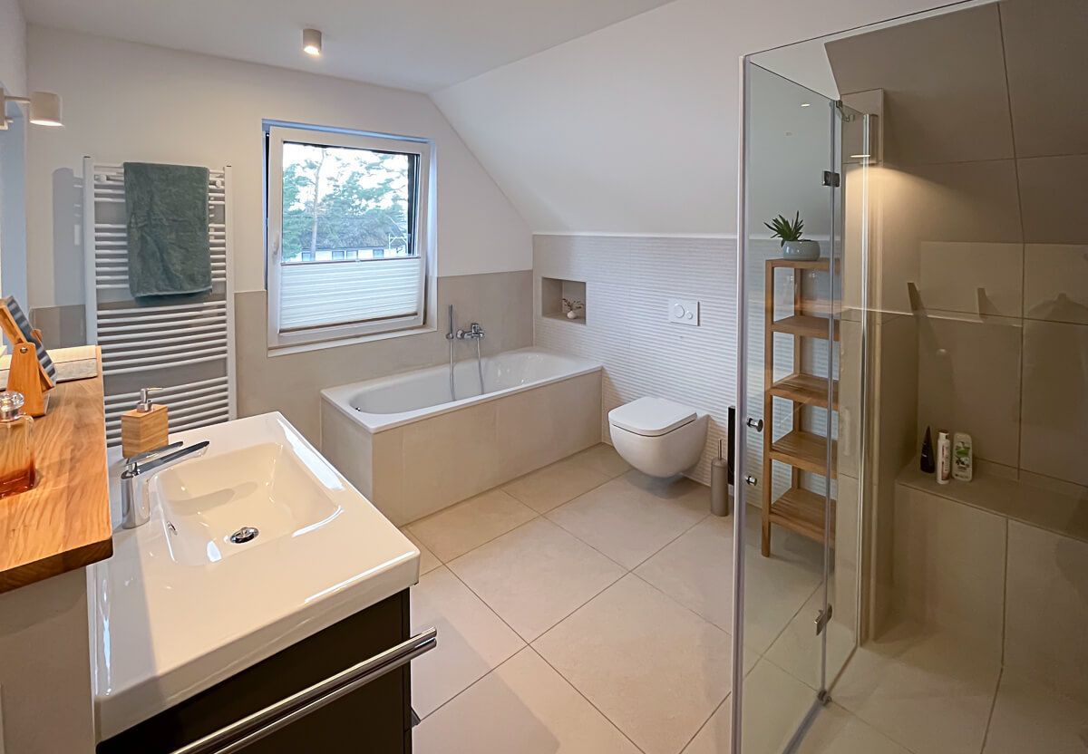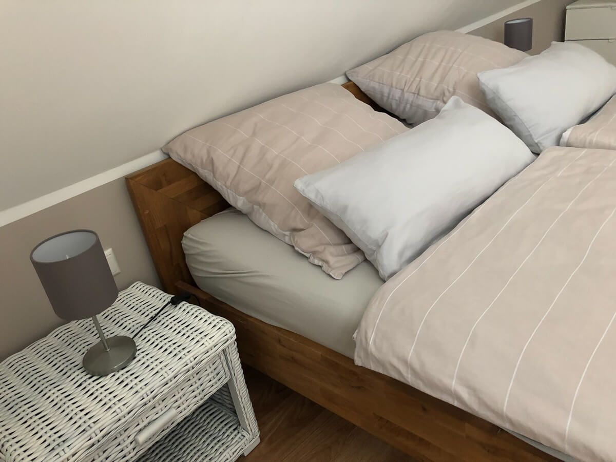 Im Obergeschoss des Ferienhauses Redensee befinden sich 2 Schlafzimmer mit je einem Doppelbett (1,80m), Kleiderschrank und zusätzlichen Ablagemöglichkeiten. Die Fenster sind mit Mückengittern und Verdunklungsplissees ausgestattet, damit Sie ungestört und erholsam schlafen können. Das großzügige Badezimmer mit Dusche und Badewanne rundet das Angebot ab und sorgt für den nötigen Komfort im Urlaub.