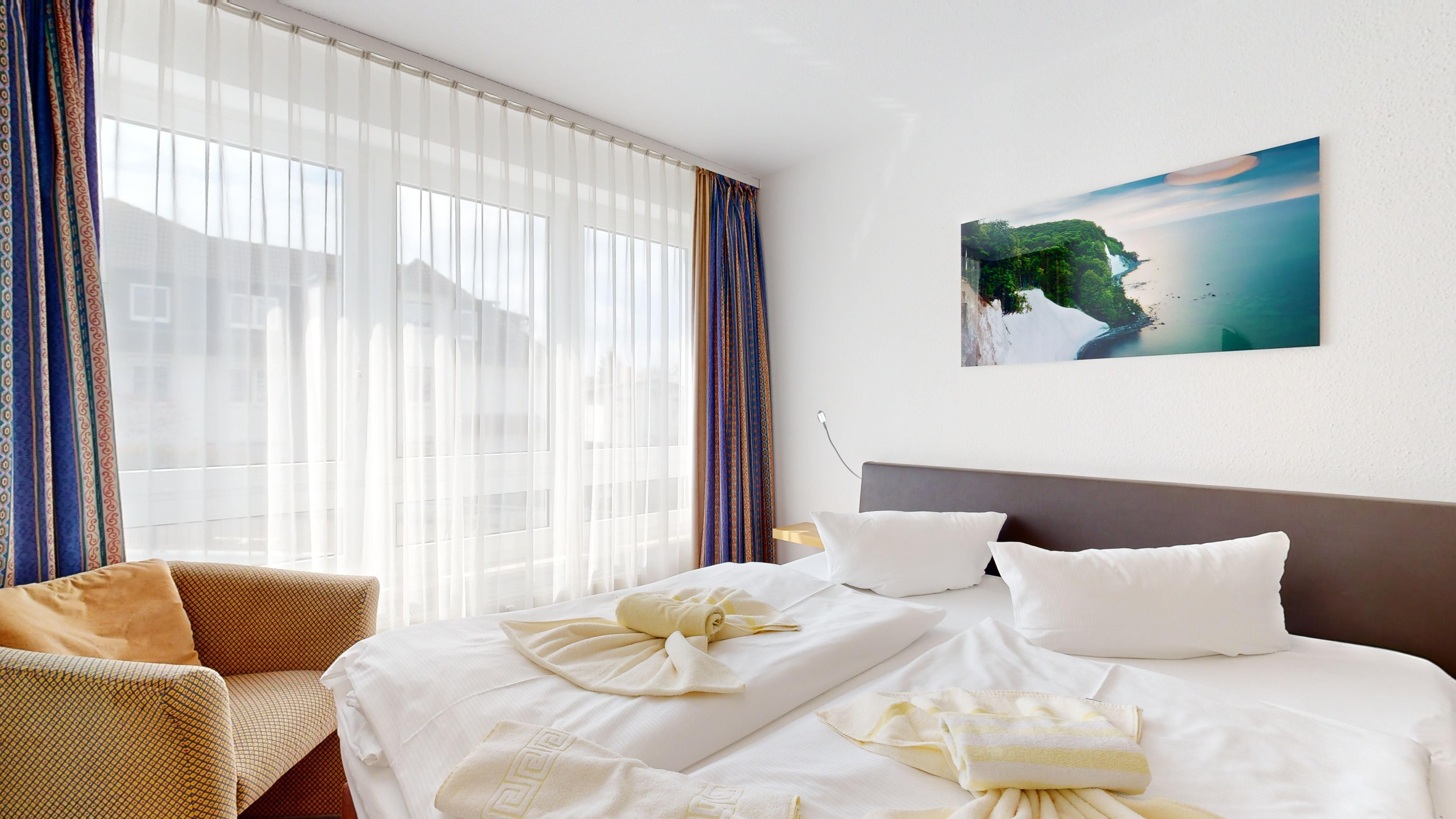 Ferienwohnung Binzer Sterne 03 für bis zu 4 Personen im Erdgeschoss (2 Zimmer / 45 m²) des Appartementhauses Binzer Sterne, 1 Schlafzimmer, Parkplatz (gegen Gebühr) und freies WLAN.