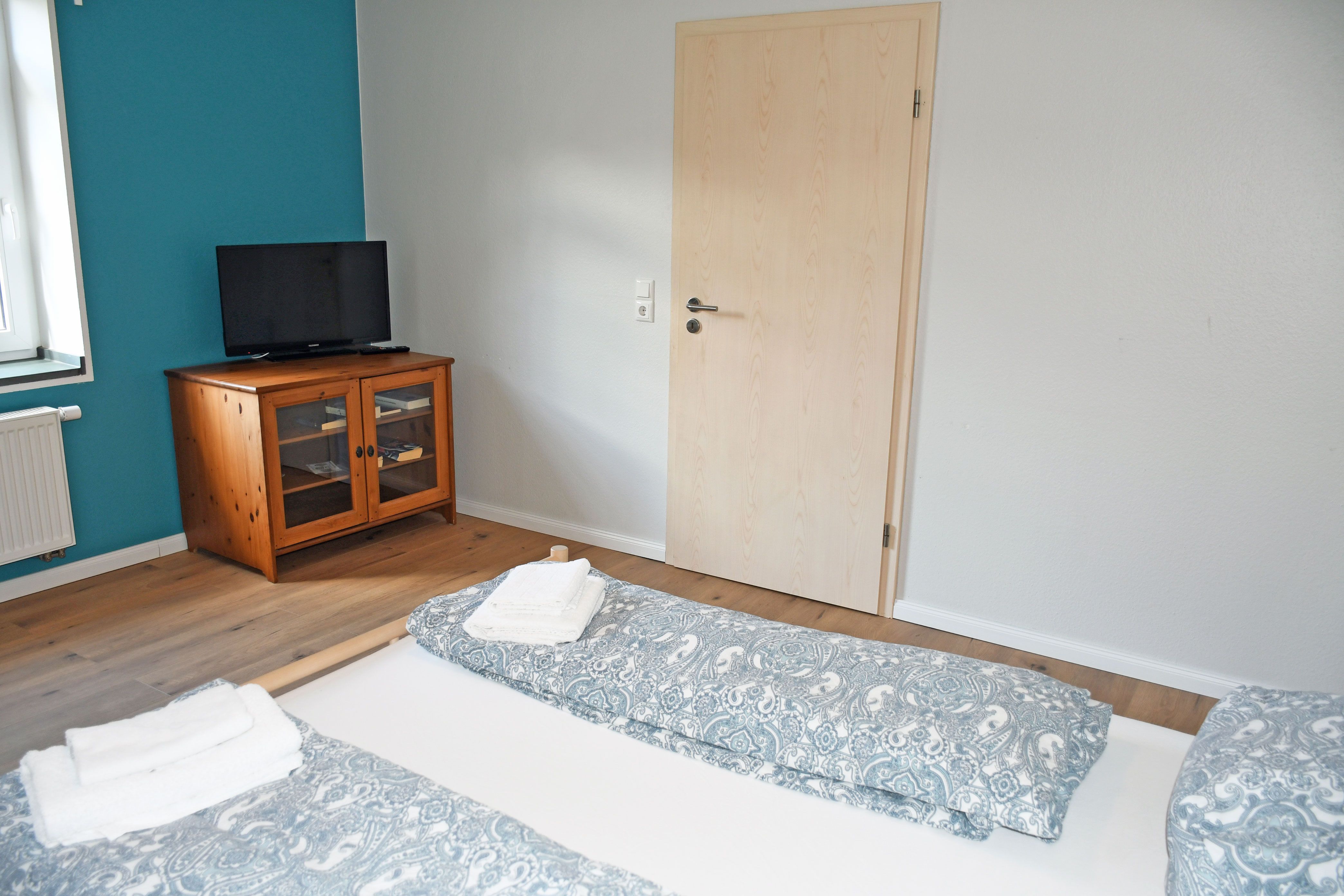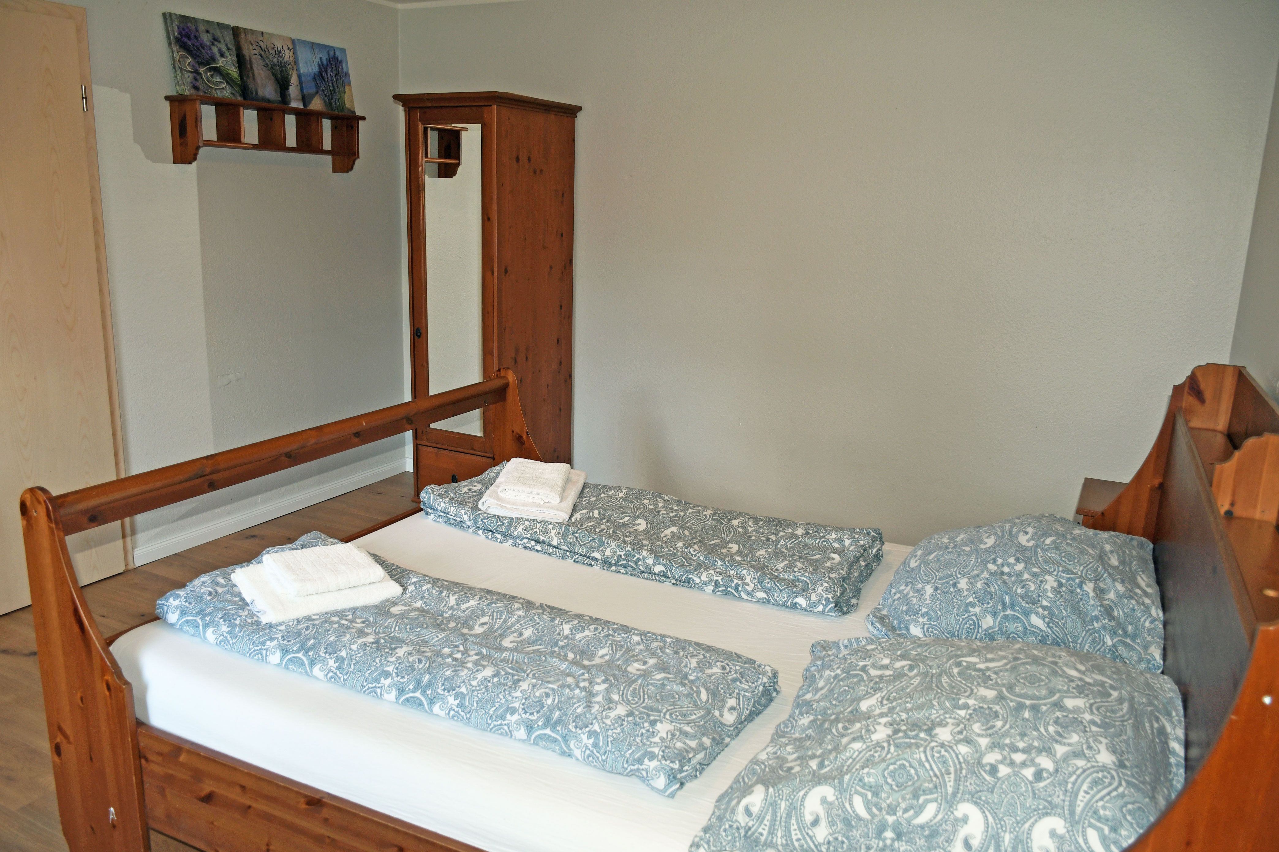 Die Wohnung verfügt in 3 Schlafzimmern über ein Doppelbett und im vierten Schlafzimmer über zwei Einzelbetten. 2 weitere Gäste können eine Aufbettung auf dem Schlafsofa im Wohnzimmer nutzen. Die Unterkunft ist schallisoliert und bietet Ihnen Ruhe und Komfort.