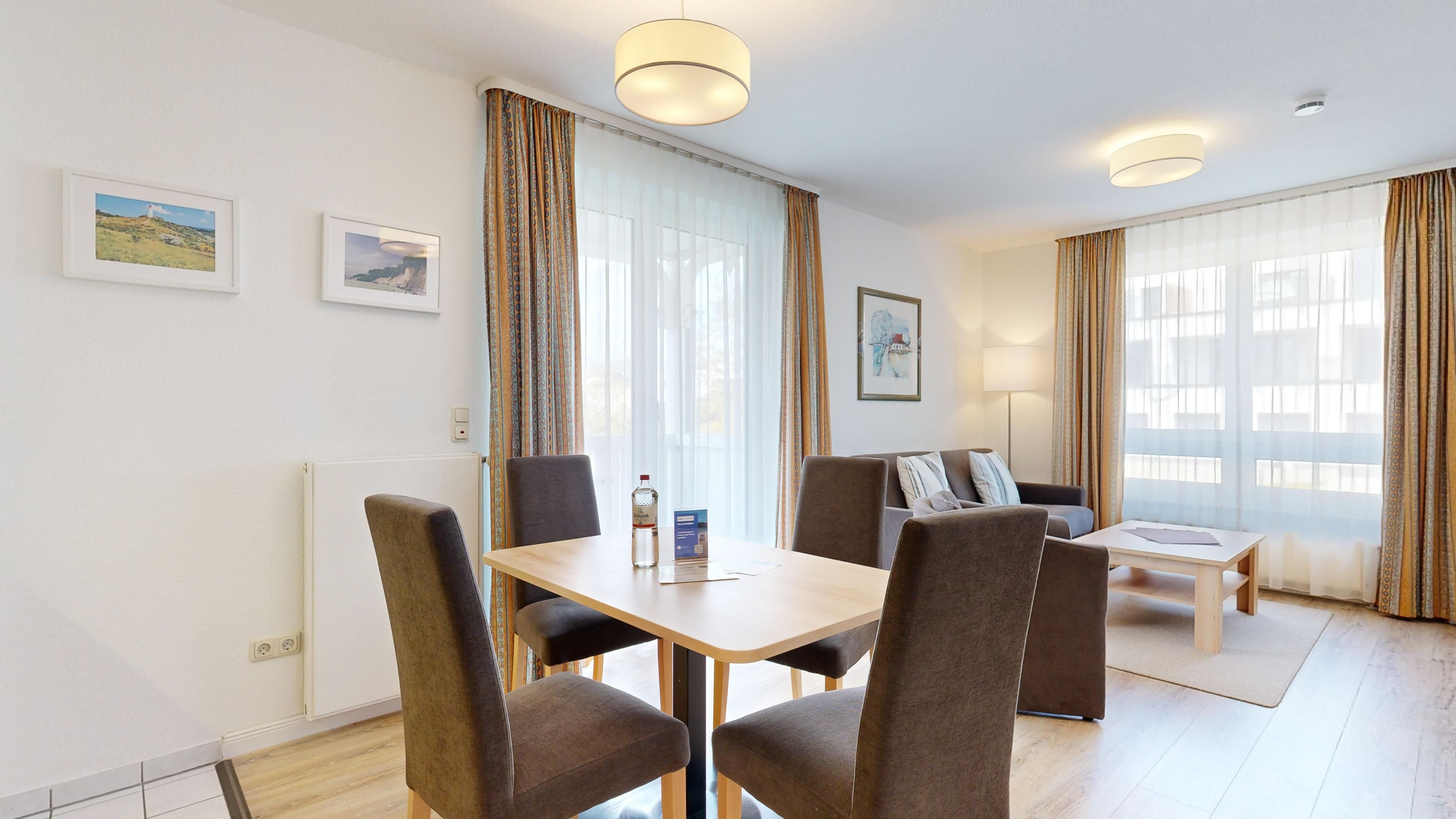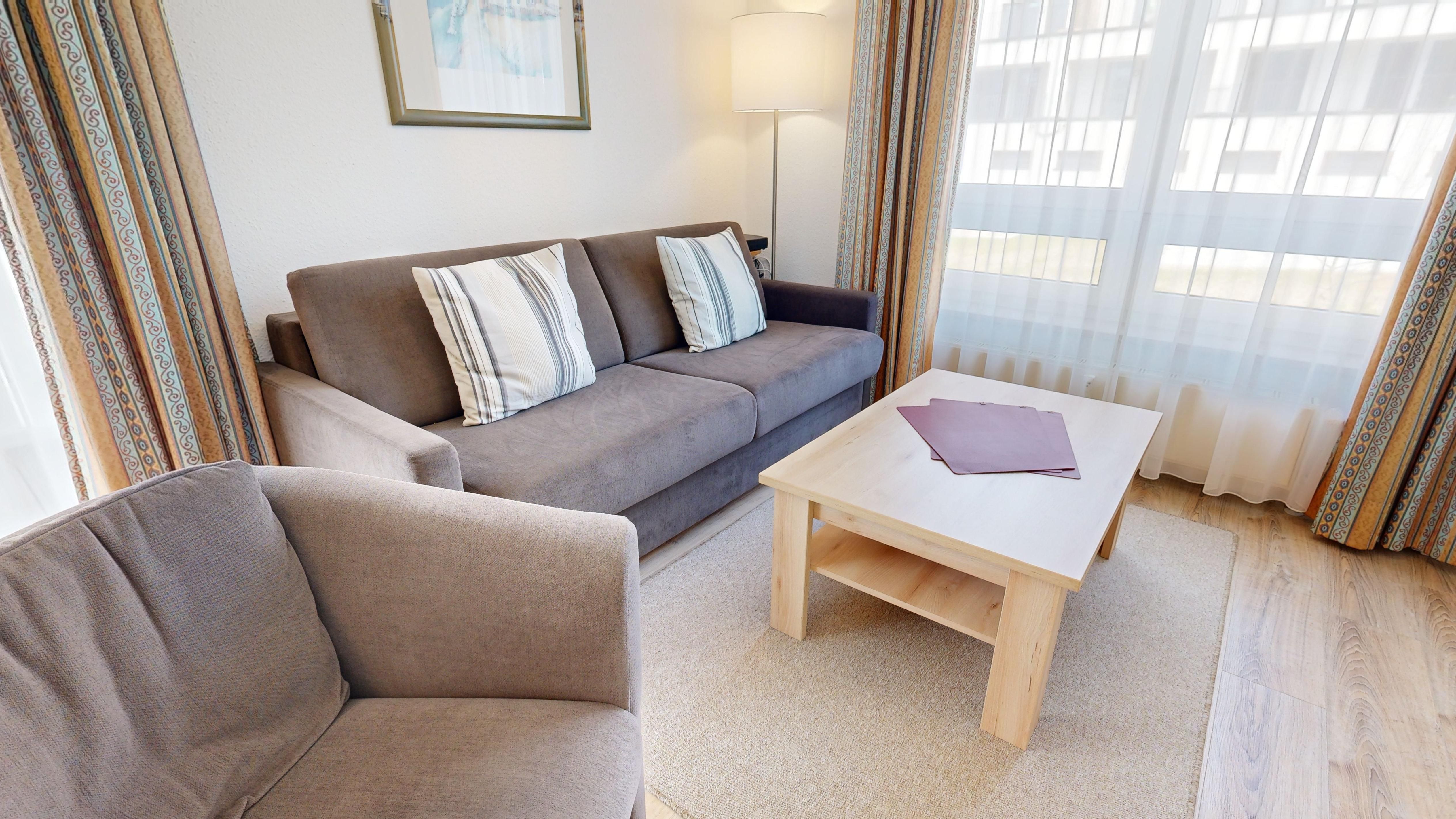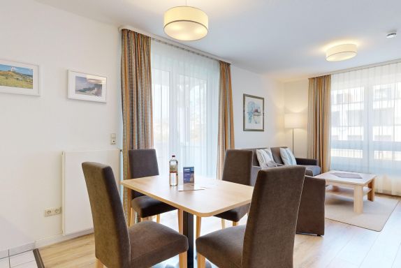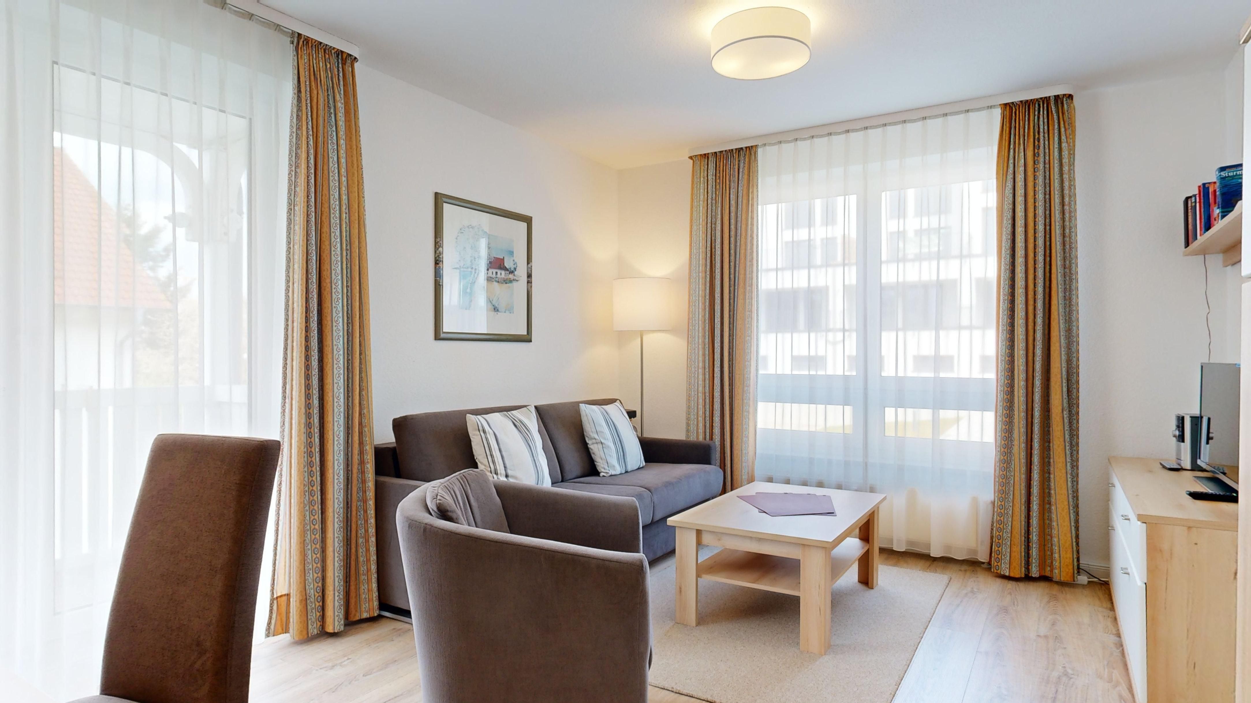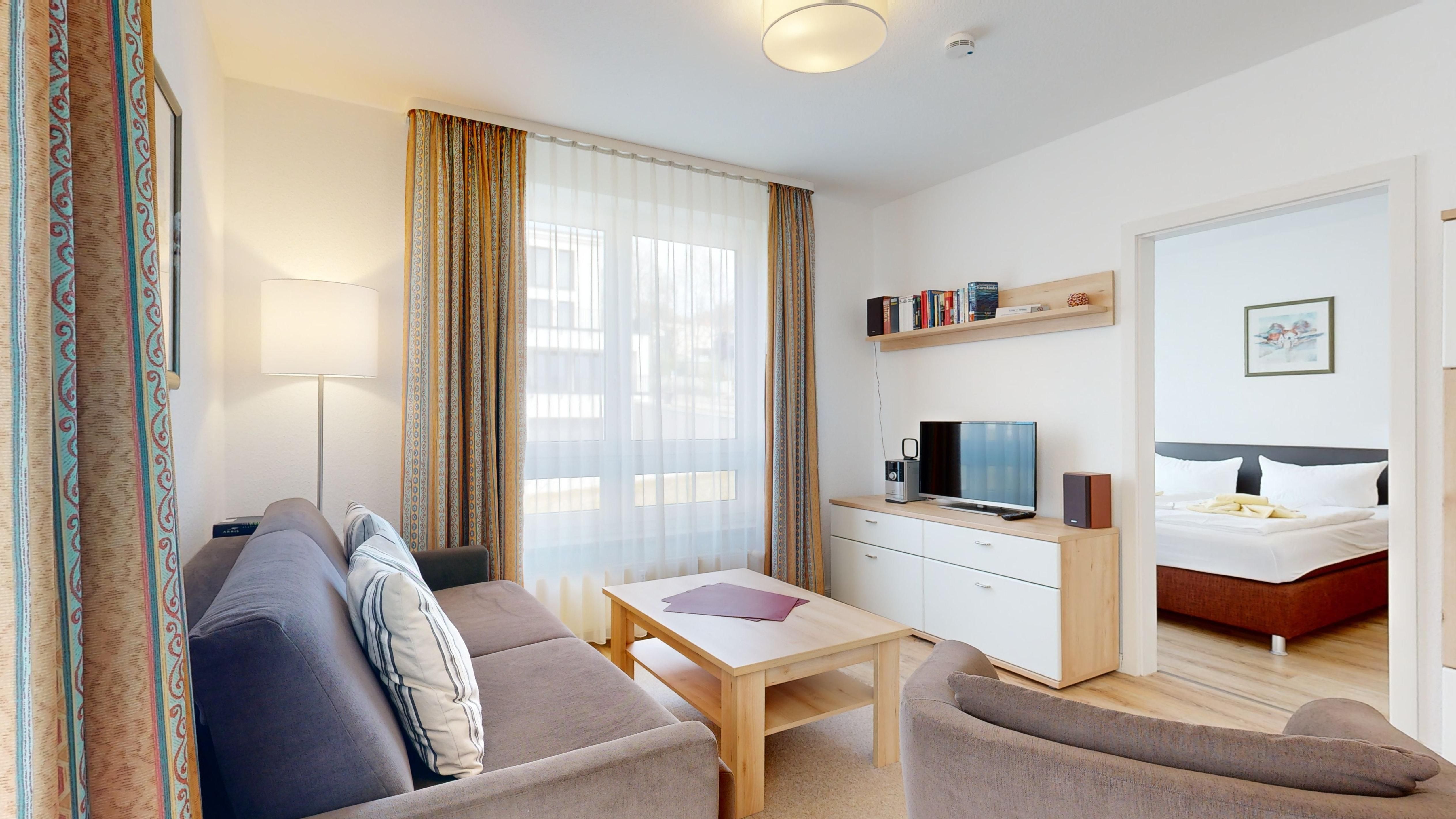 Ferienwohnung Binzer Sterne 15 für bis zu 4 Personen im 1. Obergeschoss (2 Zimmer / 45 m²) des Appartementhauses Binzer Sterne, 1 Schlafzimmer, Parkplatz (gegen Gebühr) und freies WLAN.